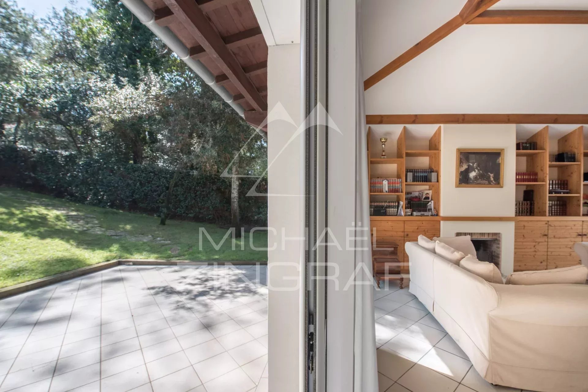Charaktervolle Villa zum Verkauf in Pyla-sur-Mer im prestigeträchtigen Viertel Moulleau. Diese wunderschöne Gaume-Villa ist ideal in der Nähe des Strandes und der Einkaufsmöglichkeiten gelegen und bietet dennoch eine friedliche und ruhige Atmosphäre.