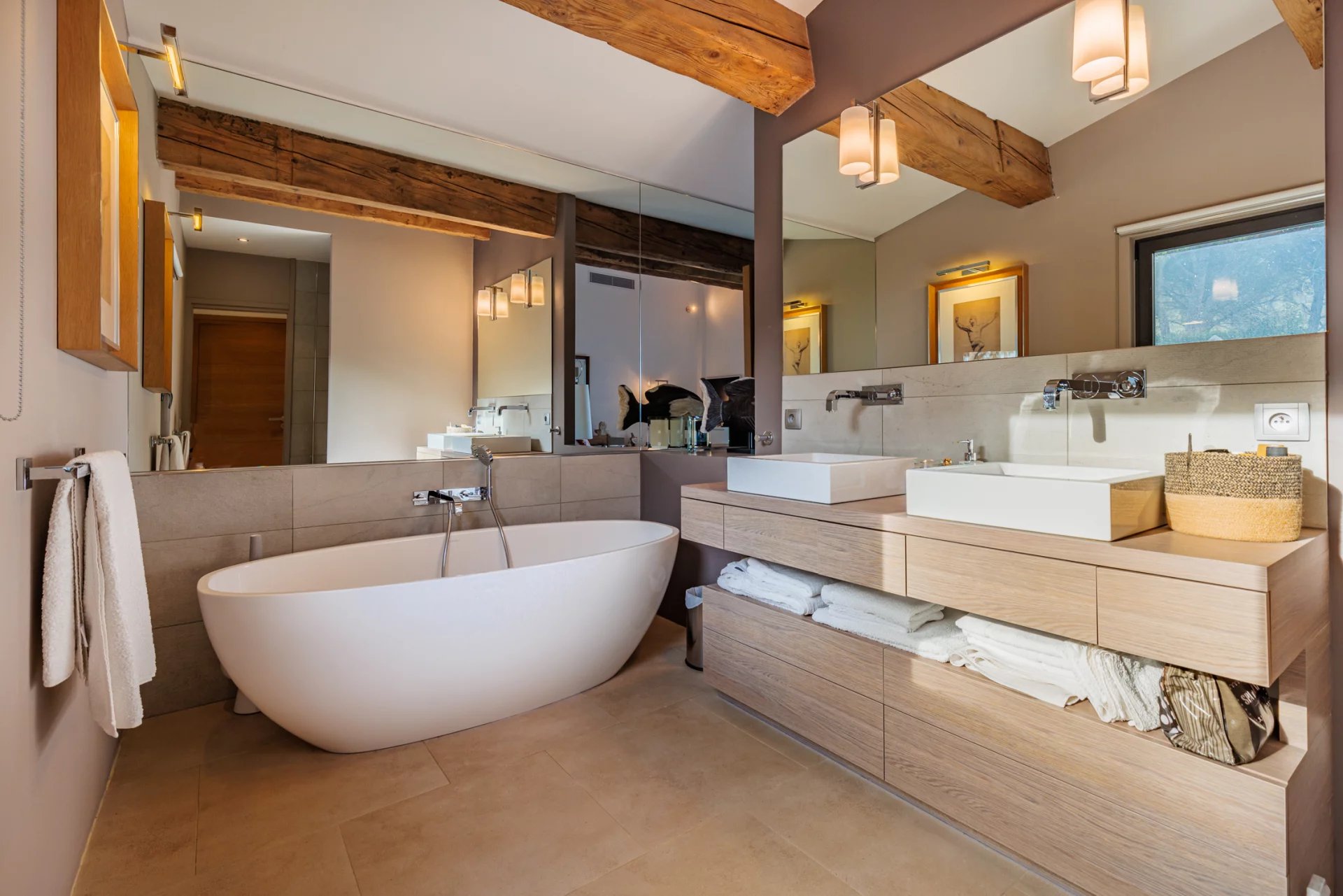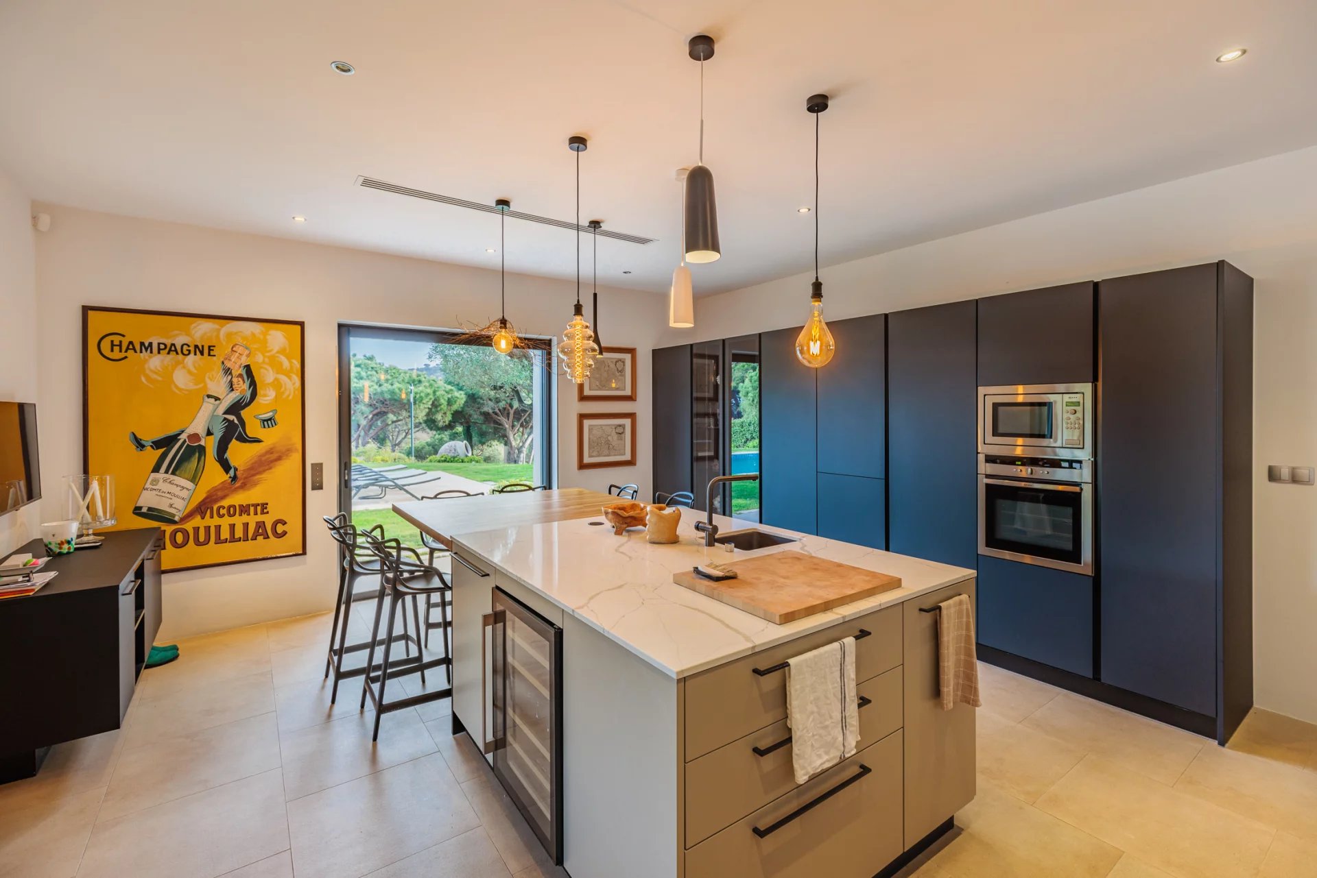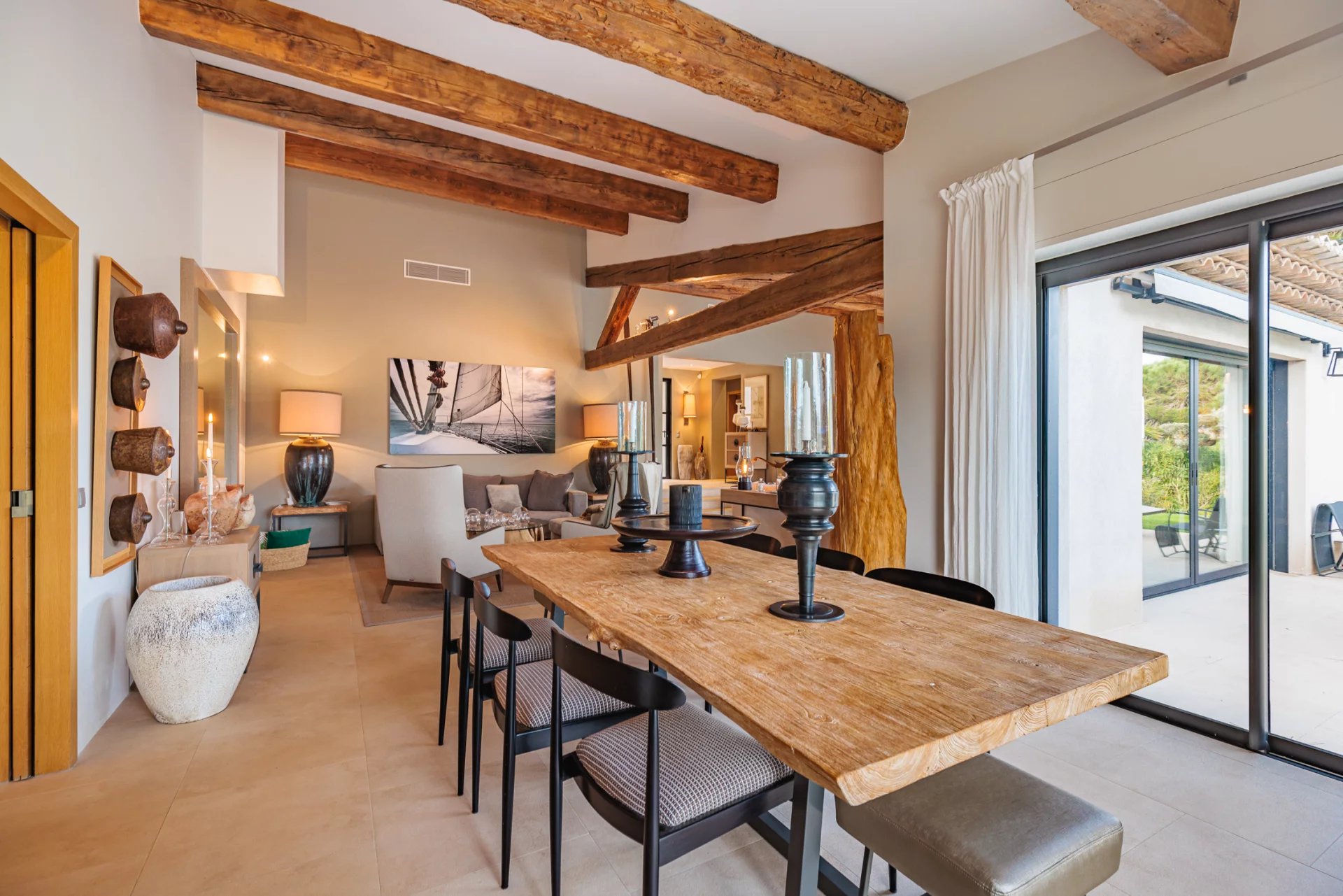 Das Interieur vereint provenzalischen Charme mit einem modernen, klaren Stil. Helle und großzügige Wohnbereiche, eine voll ausgestattete Küche, fünf stilvolle Schlafzimmer mit Bad en suite, darunter eine luxuriöse Master-Suite, sowie ein unabhängiges Studio vervollständigen dieses Anwesen.
