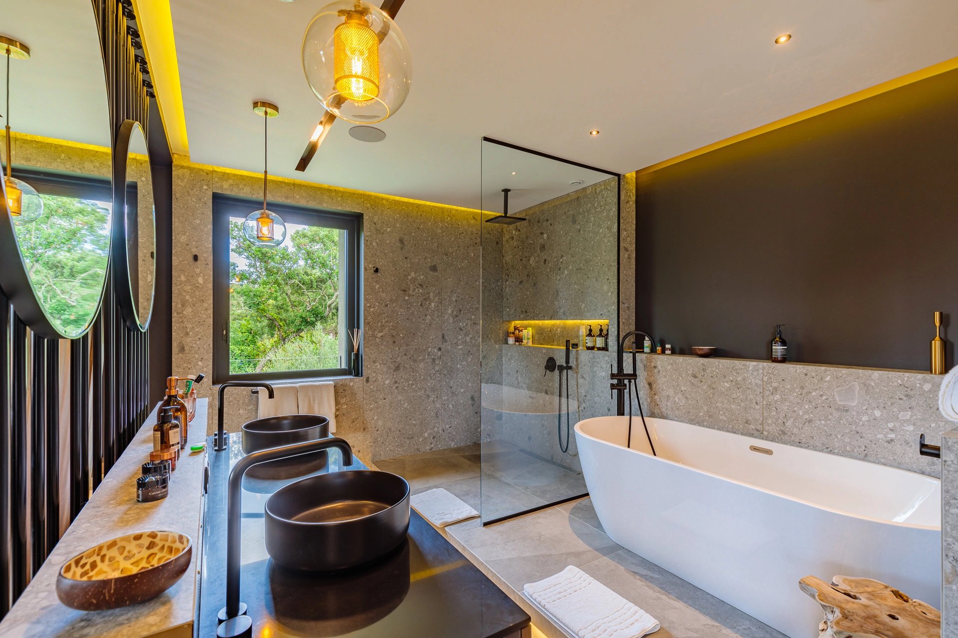 Die 6 Schlafzimmer verfügen jeweils über ein eigenes Dusch- oder Badezimmer und einen Safe.