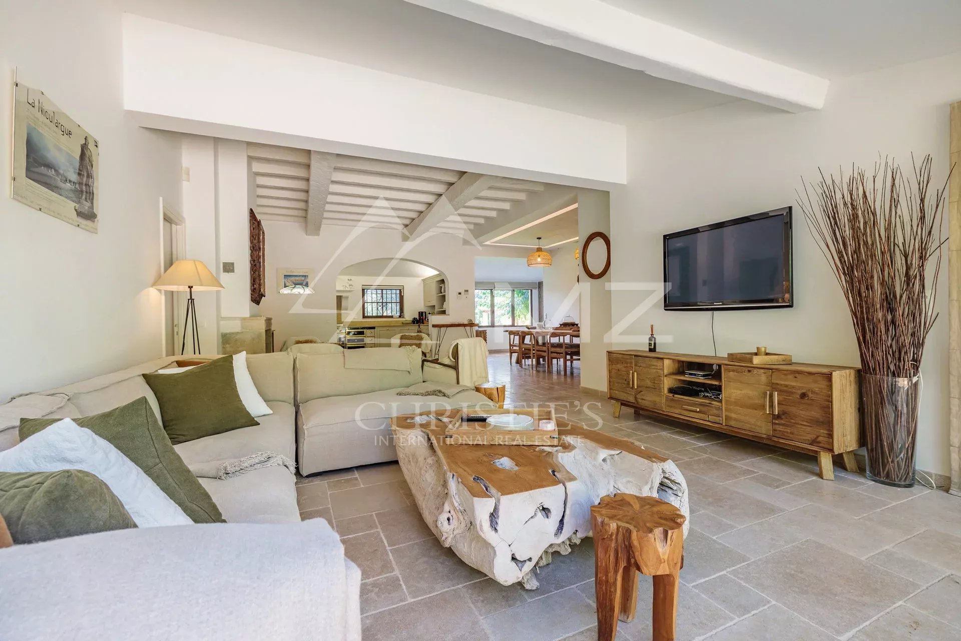 Diese wunderschöne, komplett renovierte Villa liegt in einem 6500m² großen Park mit Bäumen in der Nähe des Strandes und besteht aus 5 Schlafzimmern mit eigenem Bad und Terrassen, die alle klimatisiert sind. Die Villa ist eine Oase der Ruhe und bietet einen wunderschönen Swimmingpool, der von einem angelegten Grundstück umgeben ist, ideal für einen Aufenthalt zwischen Meer und Weinbergen.