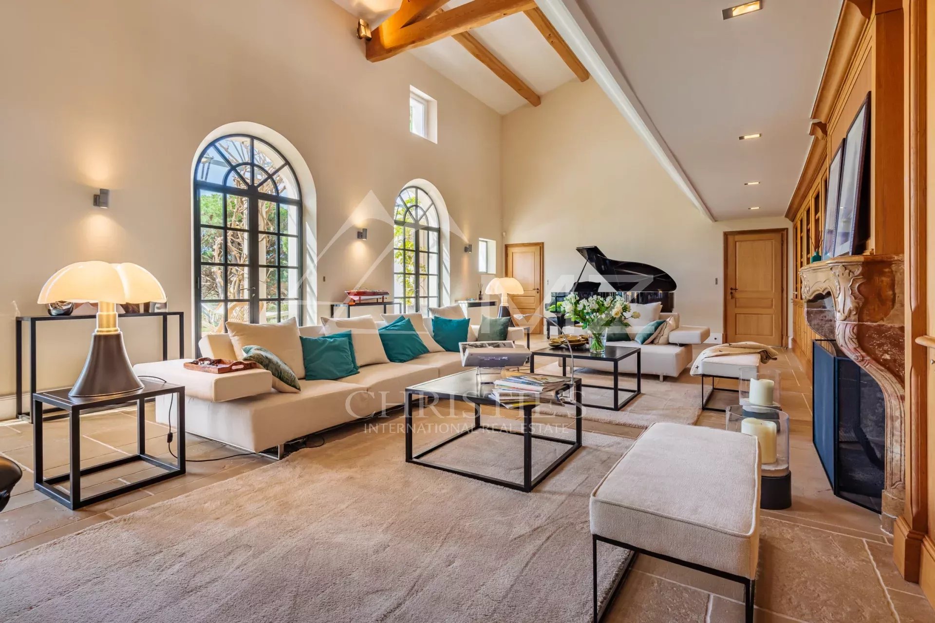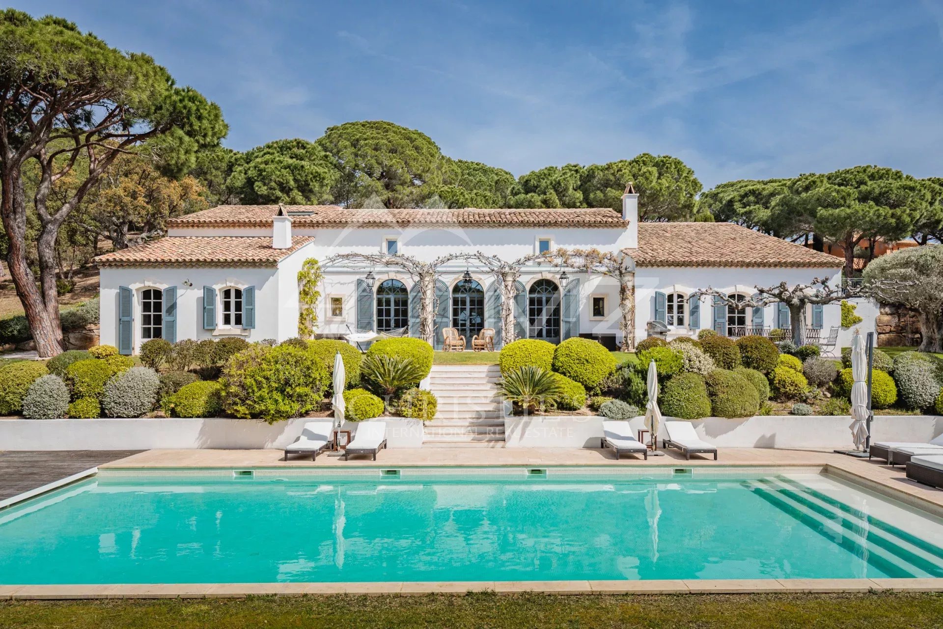 Die Strände von Pampelonne sind zu Fuß erreichbar. Dieses charmante, moderne Landhaus mit sichtbaren Holzbalken ist eine Oase der Ruhe.