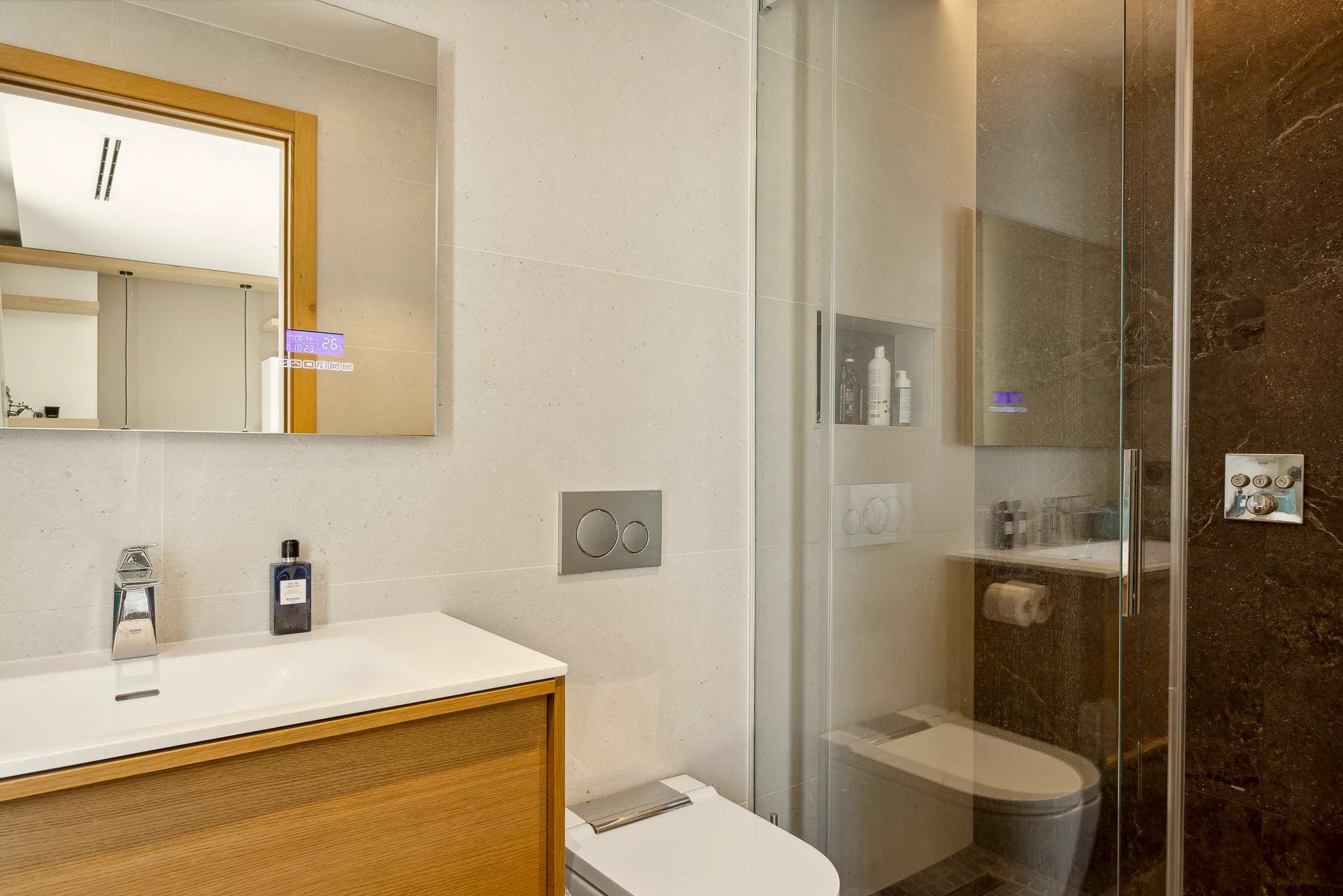 Auf einer Fläche von ca. 600m², die sich auf drei Ebenen verteilt, verfügt sie über große, sehr helle Wohnräume, die sich zur Terrasse und zum Pool hin öffnen. Die 5 Schlafzimmer in Suite mit Badezimmern/Duschen bieten den Bewohnern optimalen Komfort.