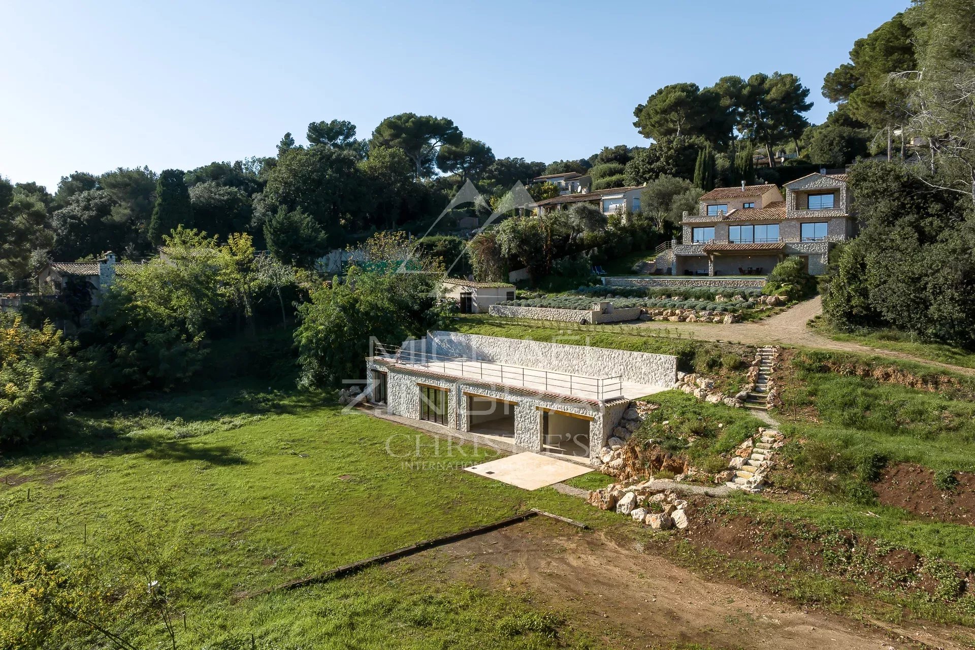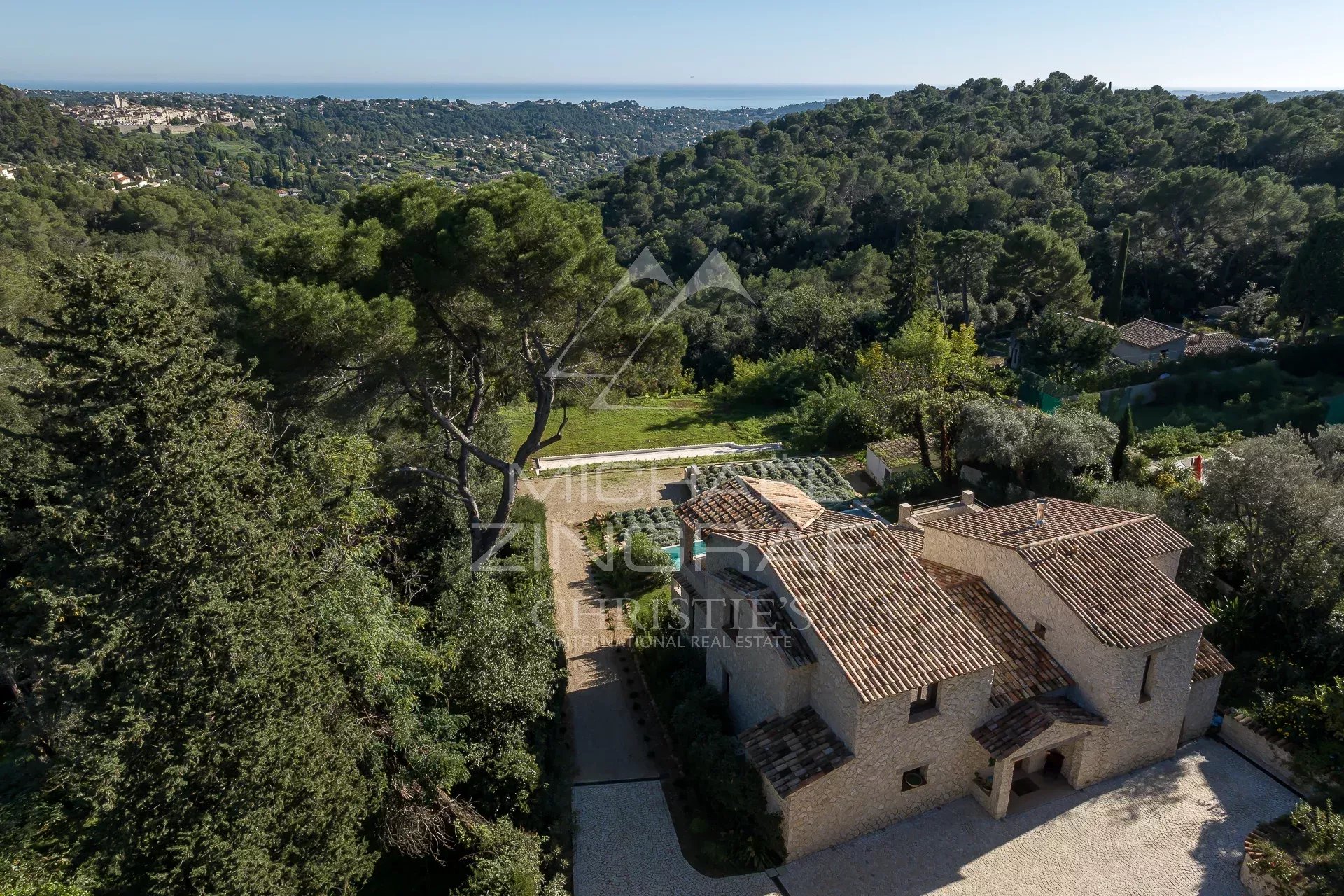 Inmitten einer grünen Oase liegt dieses wunderschöne, komplett renovierte und erweiterte Anwesen, das den Charme des provenzalischen Stils mit einem Hauch von Modernität vereint und im Jahr 2022 fertiggestellt wurde. Auf einem großzügigen Grundstück von etwa 11.000 m² bietet es einen atemberaubenden Panoramablick auf das Mittelmeer und das malerische Dorf Saint-Paul-de-Vence.