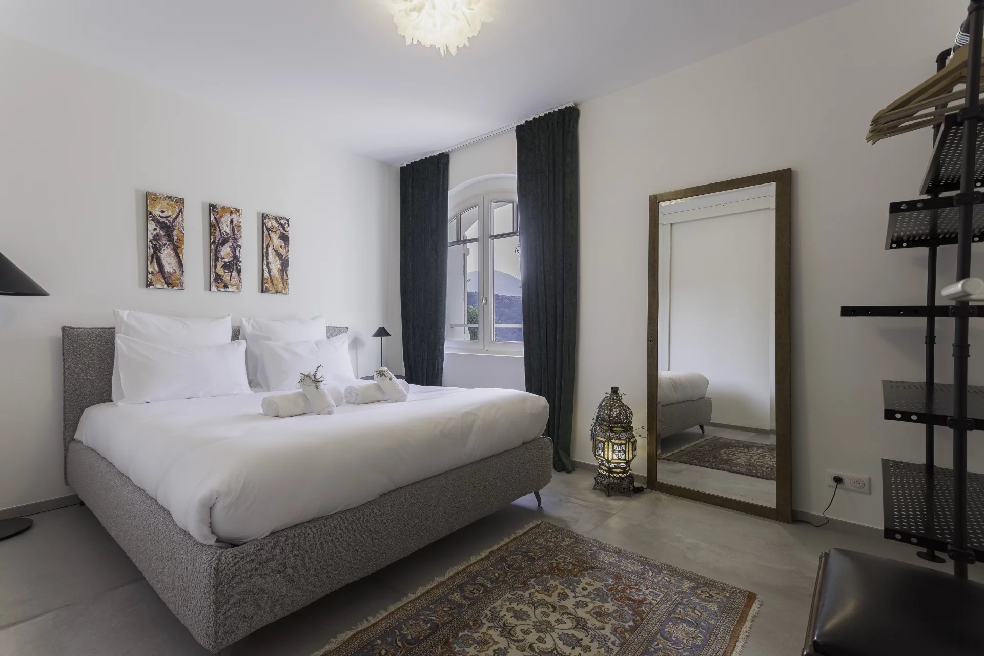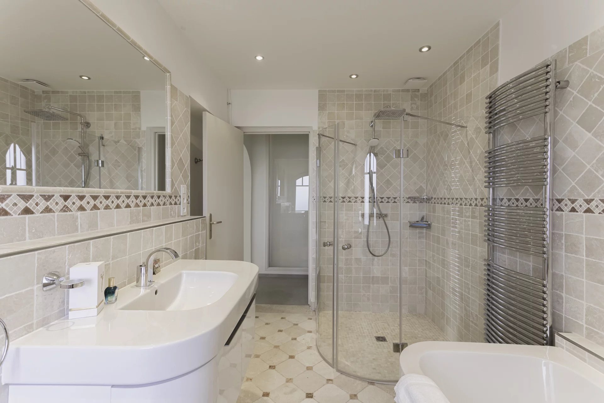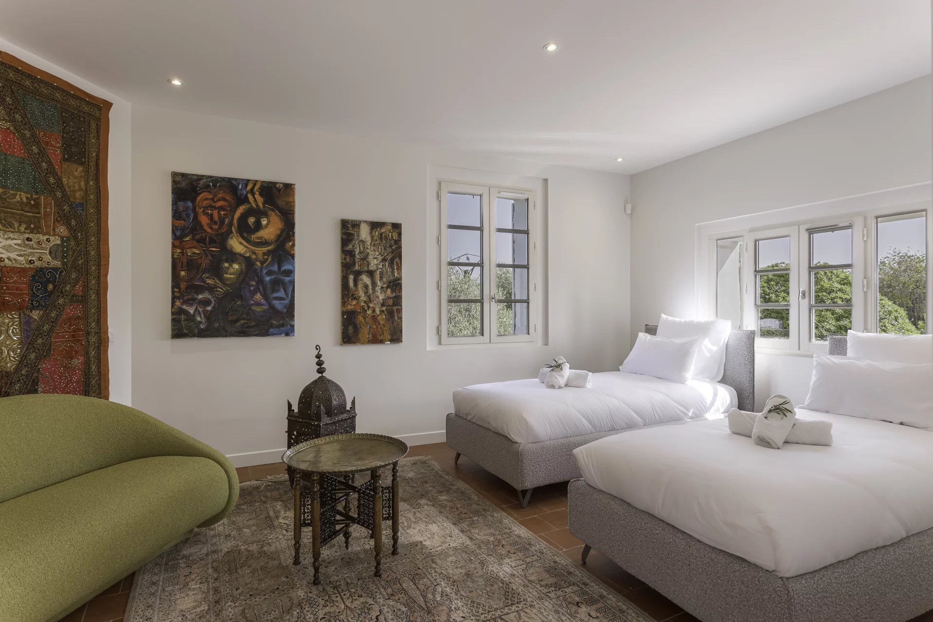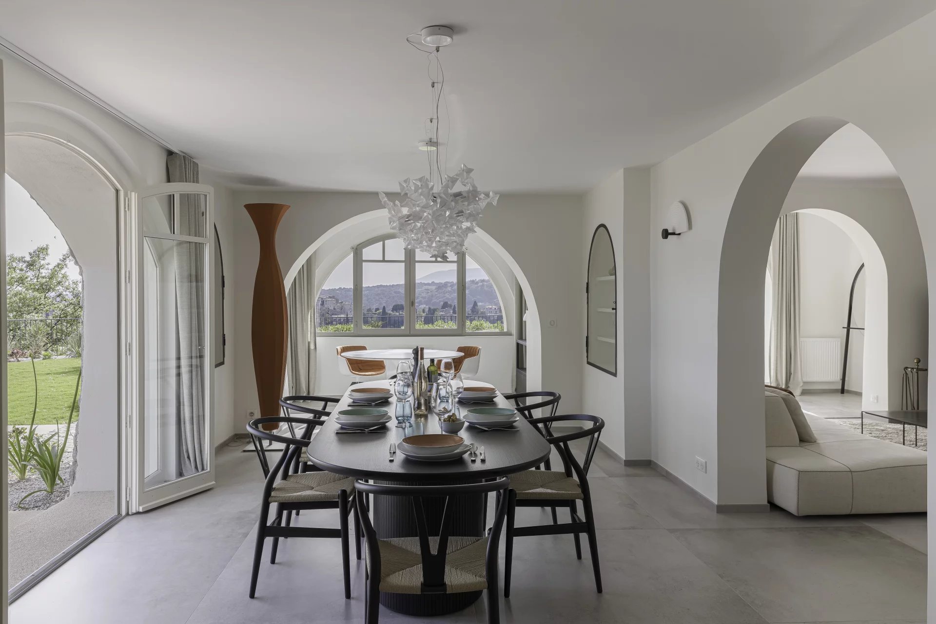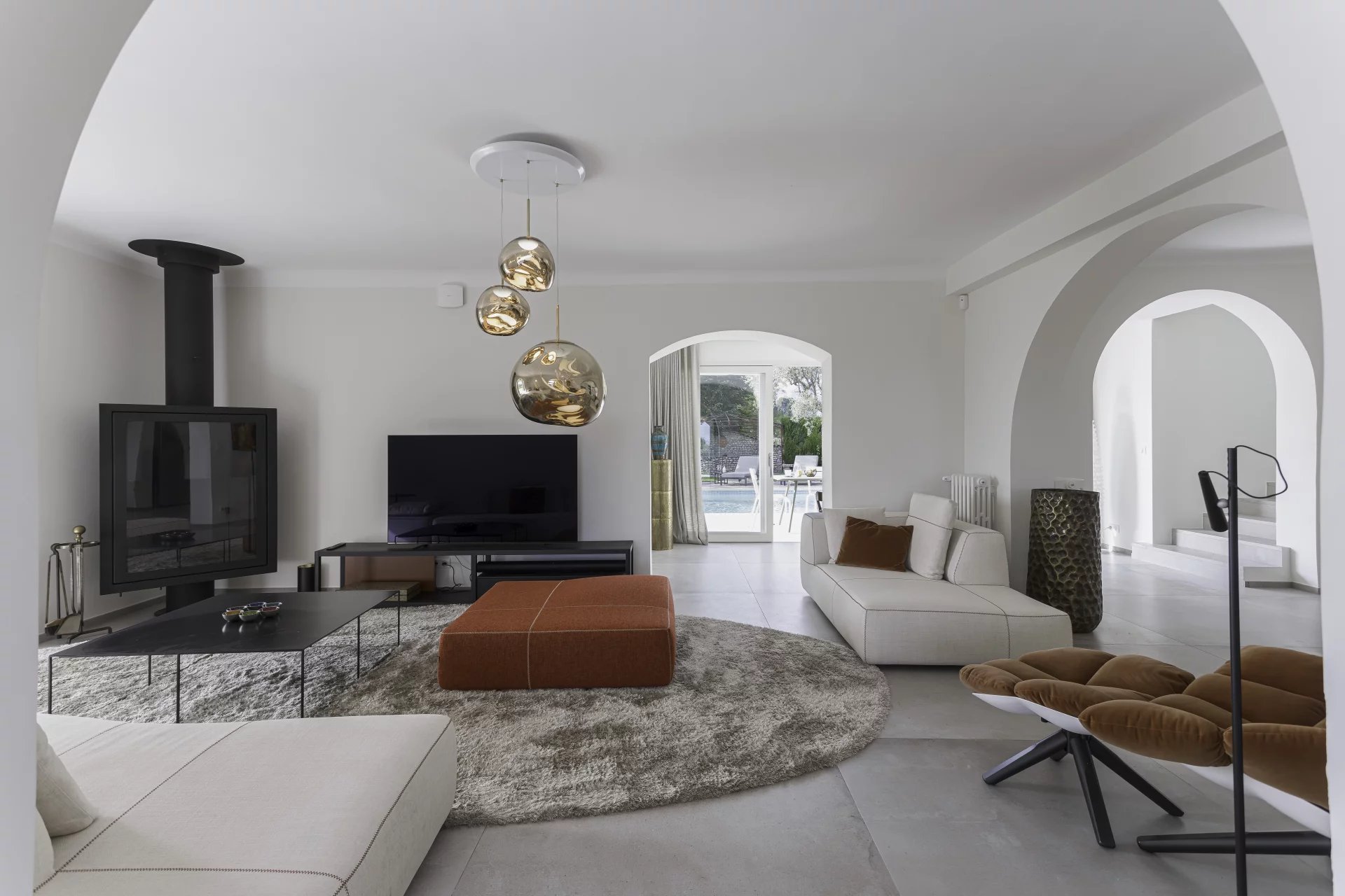 Die Hauptvilla umfasst einen Eingangsbereich, ein Fernsehzimmer mit Kamin, ein Esszimmer, das auf eine Terrasse mit Sommeresszimmer führt, eine ausgestattete Küche, ein Schlafzimmer mit Zugang zum Pool und ein Duschbad. Im ersten Stock befinden sich ein Büro, eine Waschküche, 4 Schlafzimmer und 2 Bäder.