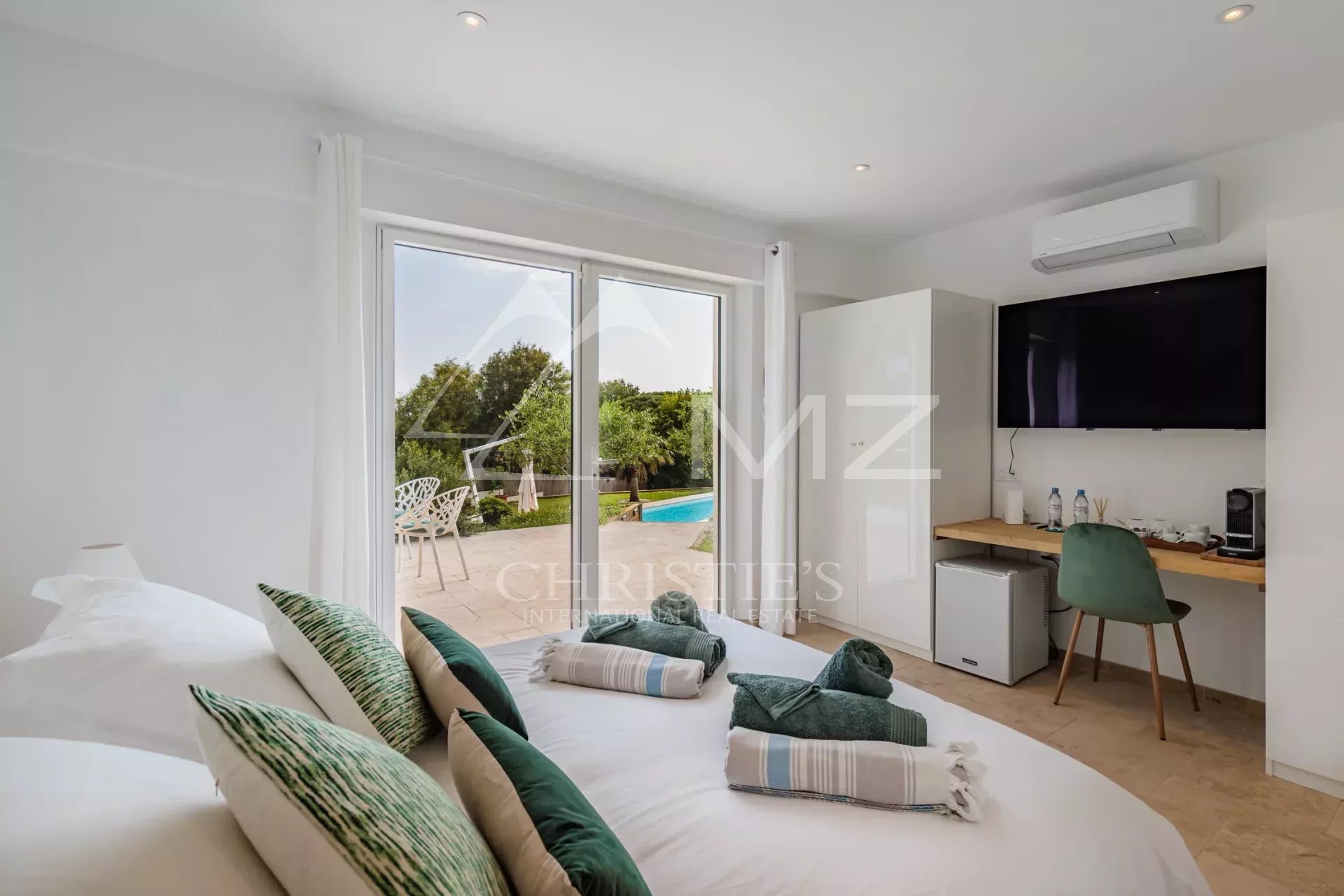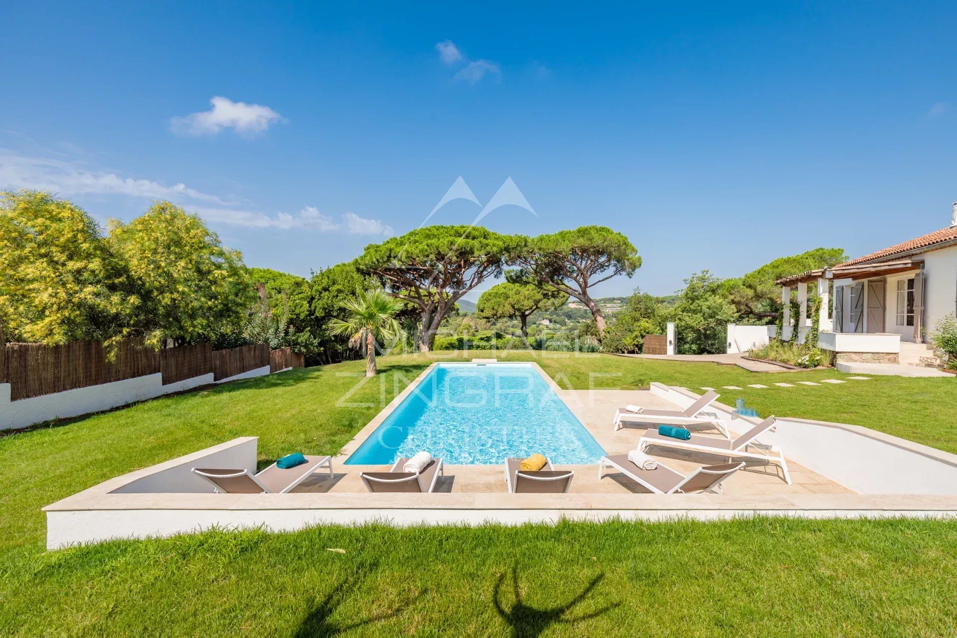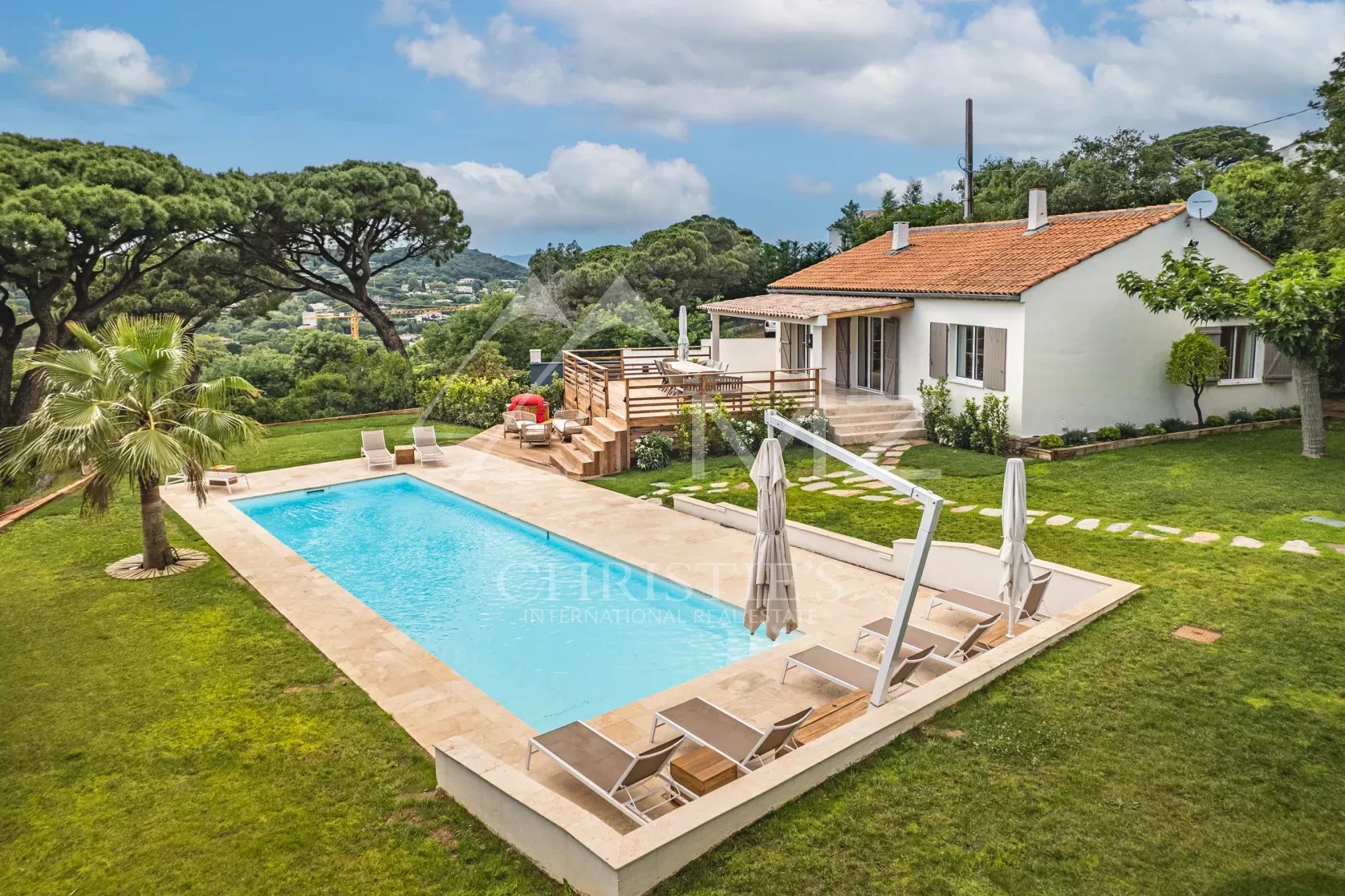 Dieses charmante Haus ist ideal gelegen, nur wenige Minuten vom Stadtzentrum und den Stränden von Pampelonne entfernt, und bietet einen herrlichen Blick auf die Hügel und das Chateau de la Messardière.