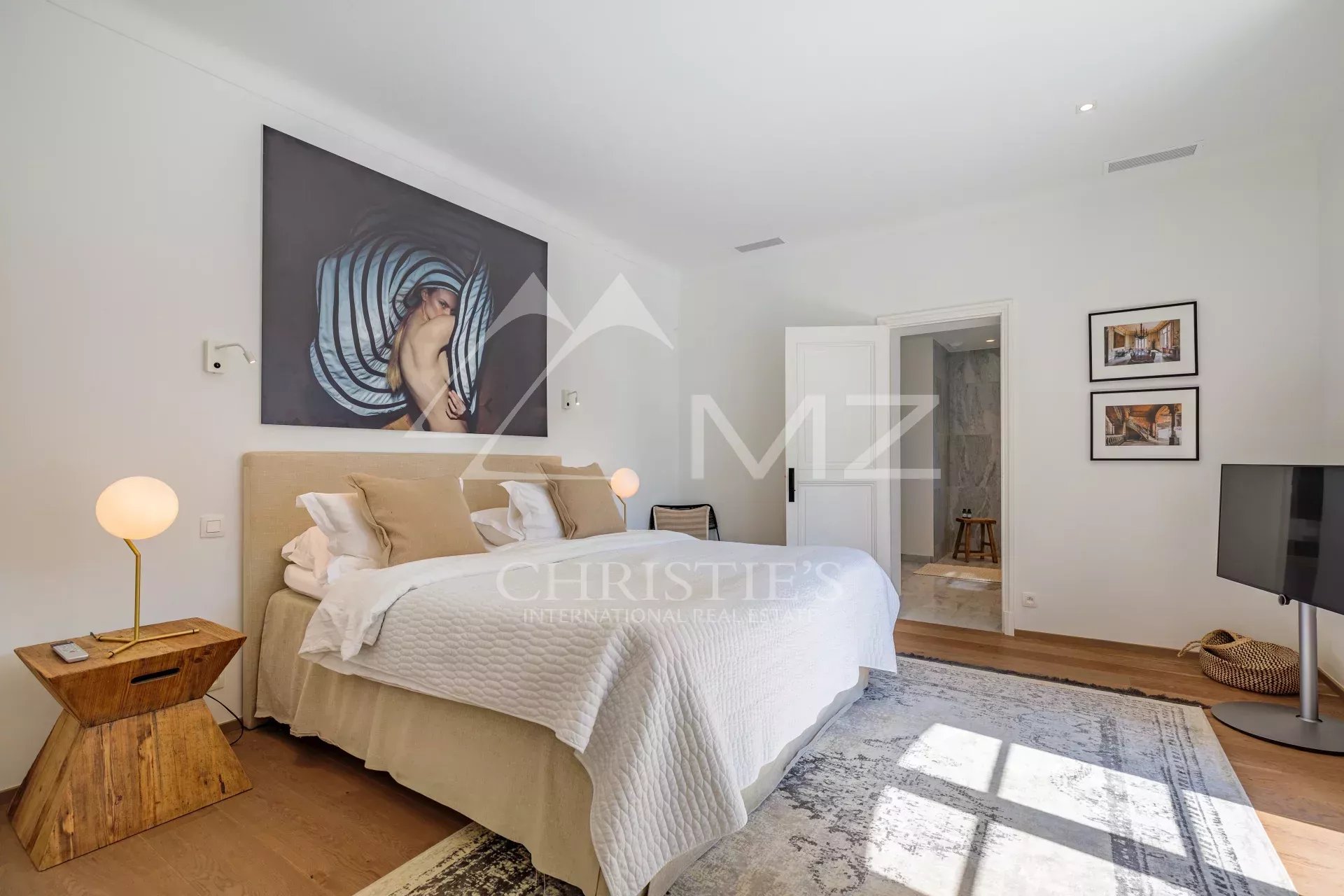 Es verfügt über 5 Schlafzimmer mit jeweils eigenem Duschbad/WC/TV, darunter ein Hauptschlafzimmer mit Badewanne, separater Toilette und Ankleidezimmer, sowie ein Zimmer im Untergeschoss, das sich ideal als Dienstzimmer eignet.