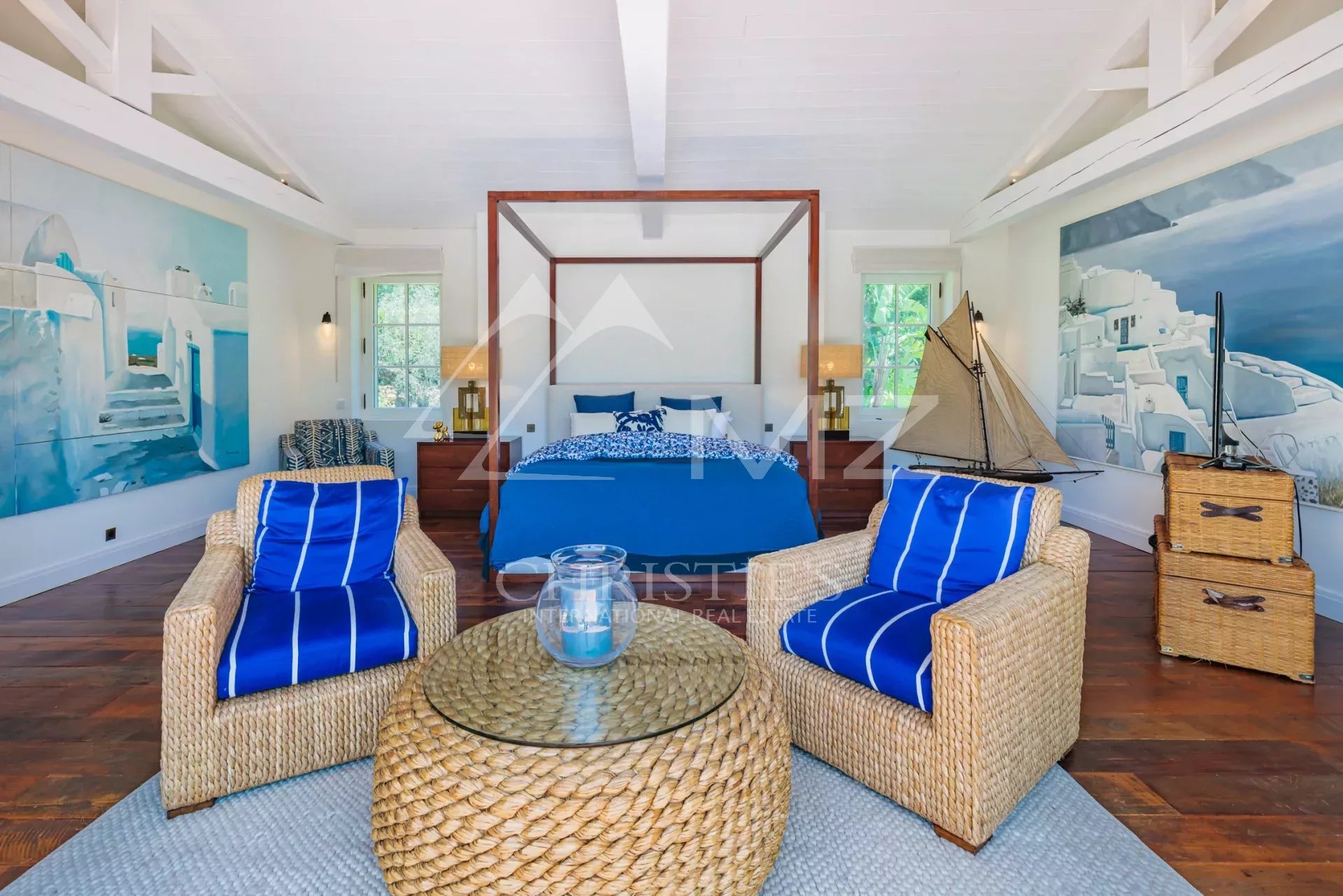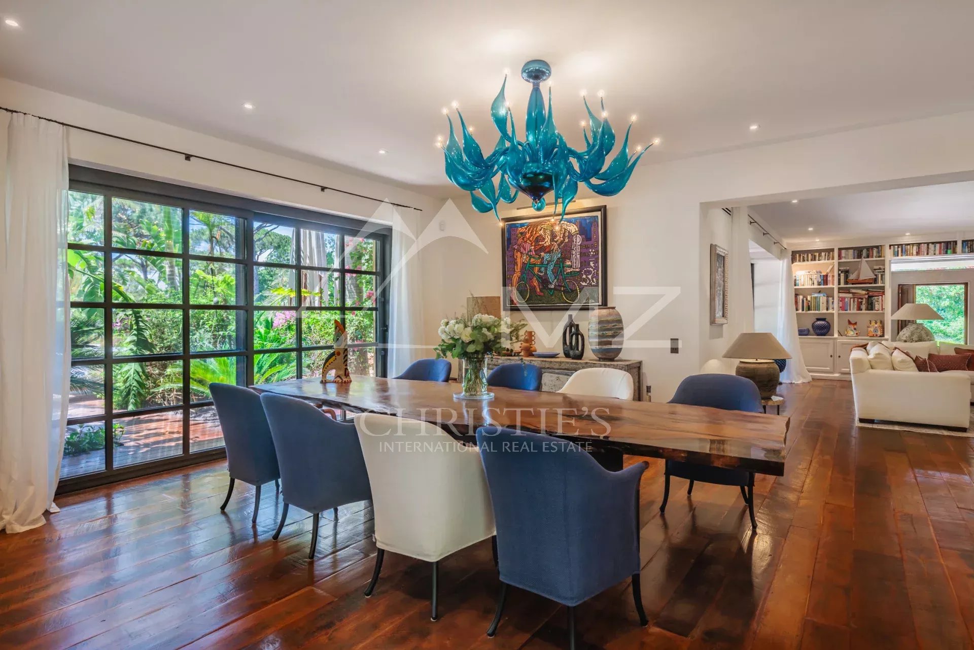 In einer paradiesischen Umgebung bietet dieses wunderschöne Anwesen mit Meerblick und einem üppigen Garten mit exotischen Bäumen einen direkten Zugang zum Strand von Canoubiers.