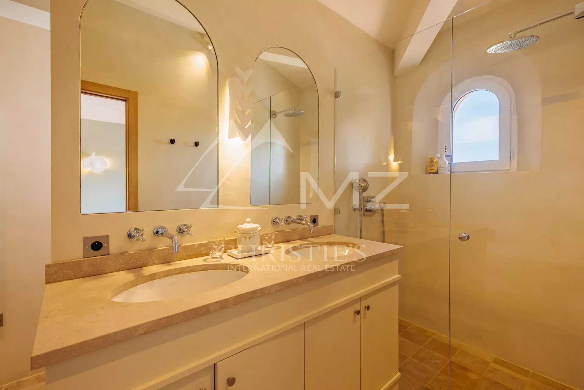Die Villa verfügt über einen wunderschönen Garten mit Bäumen, einen beheizten Pool, ein Poolhaus mit einer Sommerküche und einen Duschraum.