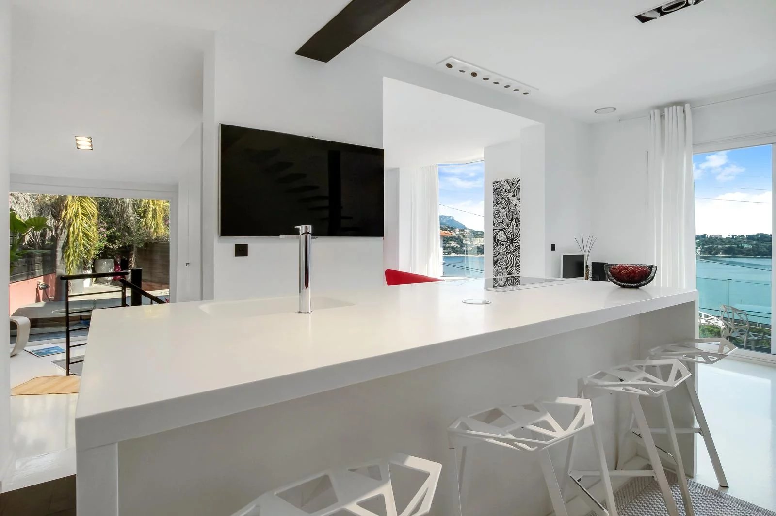 Diese angenehme, sorgfältig renovierte Villa in modernem Stil befindet sich in einer privilegierten Umgebung und bietet von ihren drei großen Terrassen einen freien Blick auf das Meer.