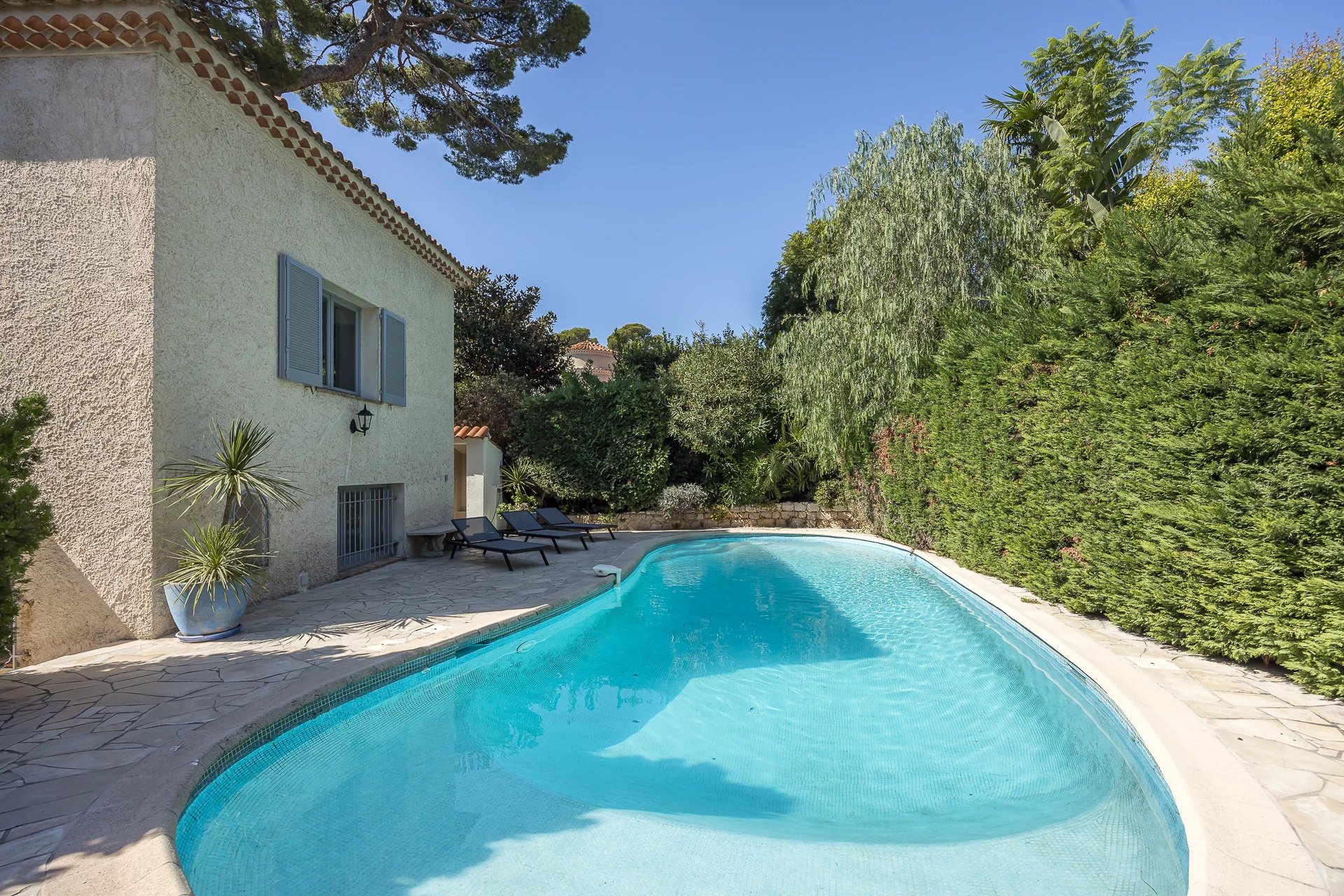 Im Außenbereich ergänzt ein Swimmingpool perfekt den Garten und bietet eine idyllische Umgebung zum Entspannen und Genießen der sonnigen Tage an der Côte d'Azur. Die Villa sorgt mit einer Klimaanlage in allen Räumen und einer Gasheizungsanlage für optimalen Komfort, der ganzjährig angenehme Temperaturen gewährleistet.