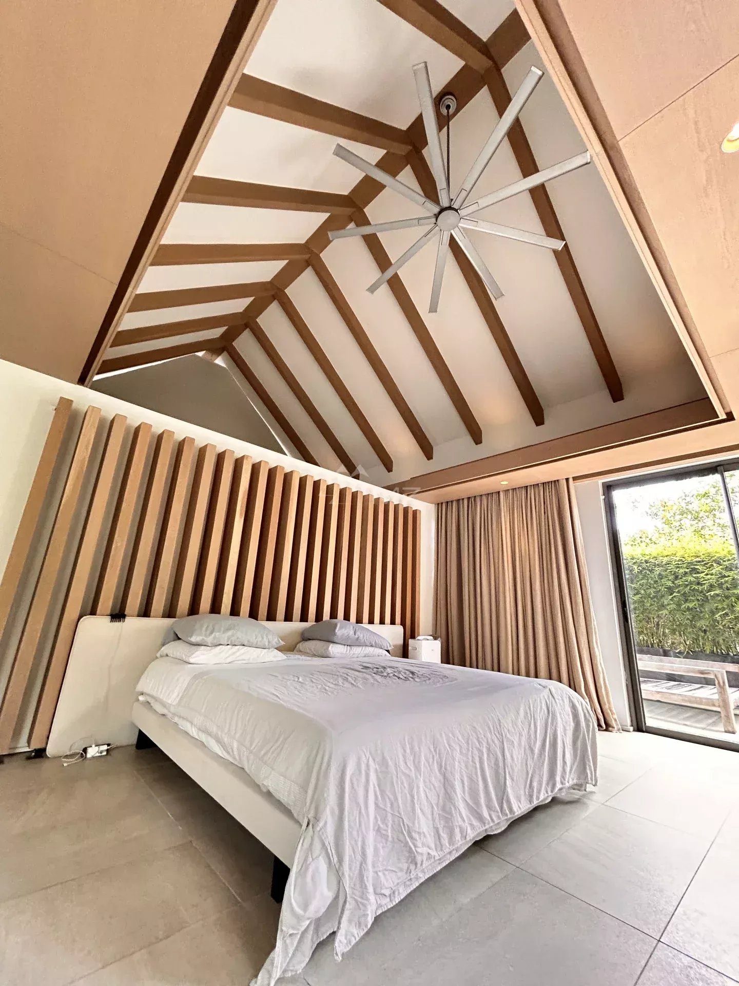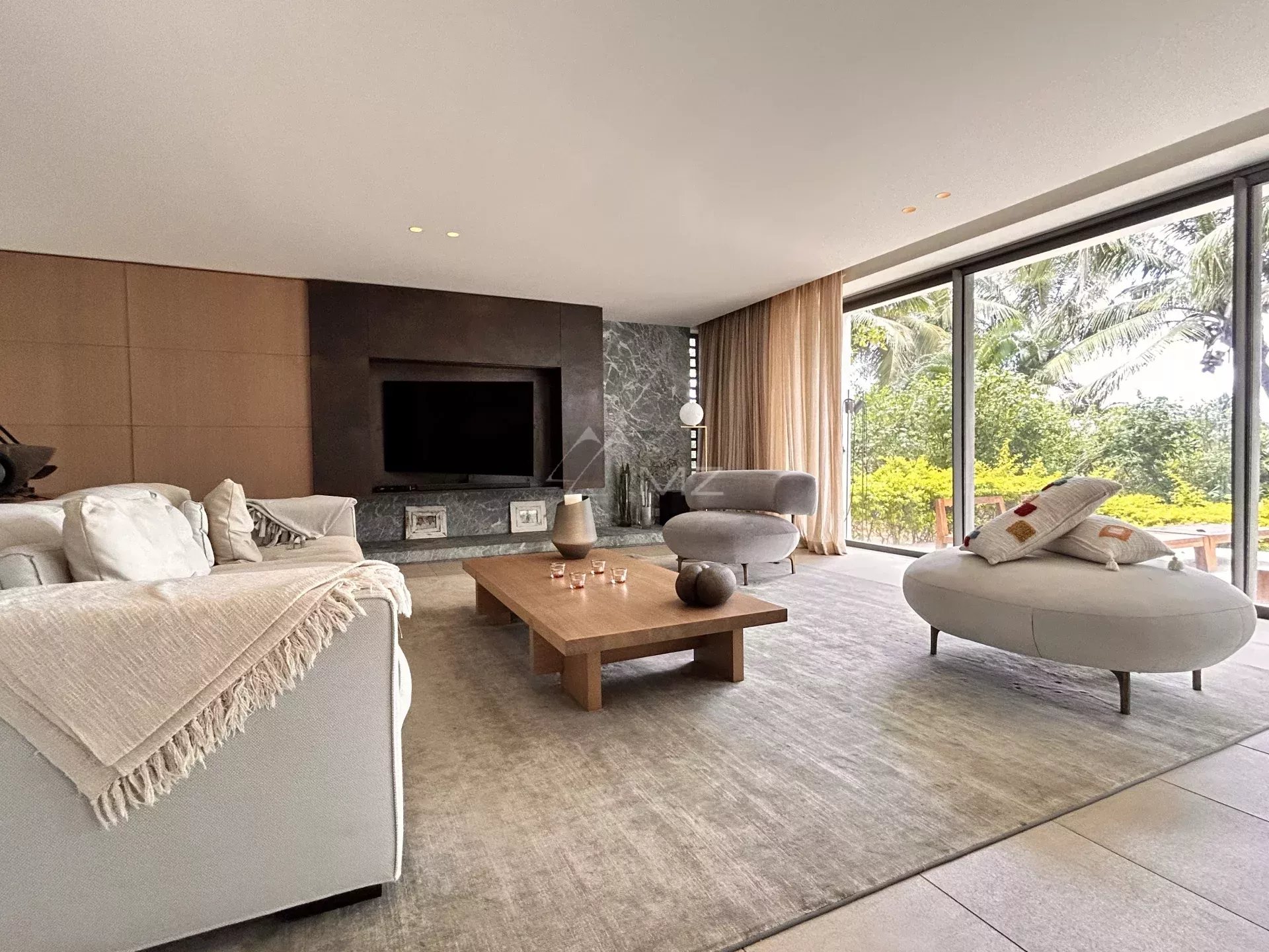 Die Villa besticht durch eine geräumige Küche mit Arbeitsplatten aus Naturstein und großzügige Wohn- und Essbereiche, die sich ideal zum Empfangen von Gästen eignen. Im Außenbereich überblickt ein Gartenpavillon einen schönen Pool, umgeben von einem sorgfältig gestalteten tropischen Garten.