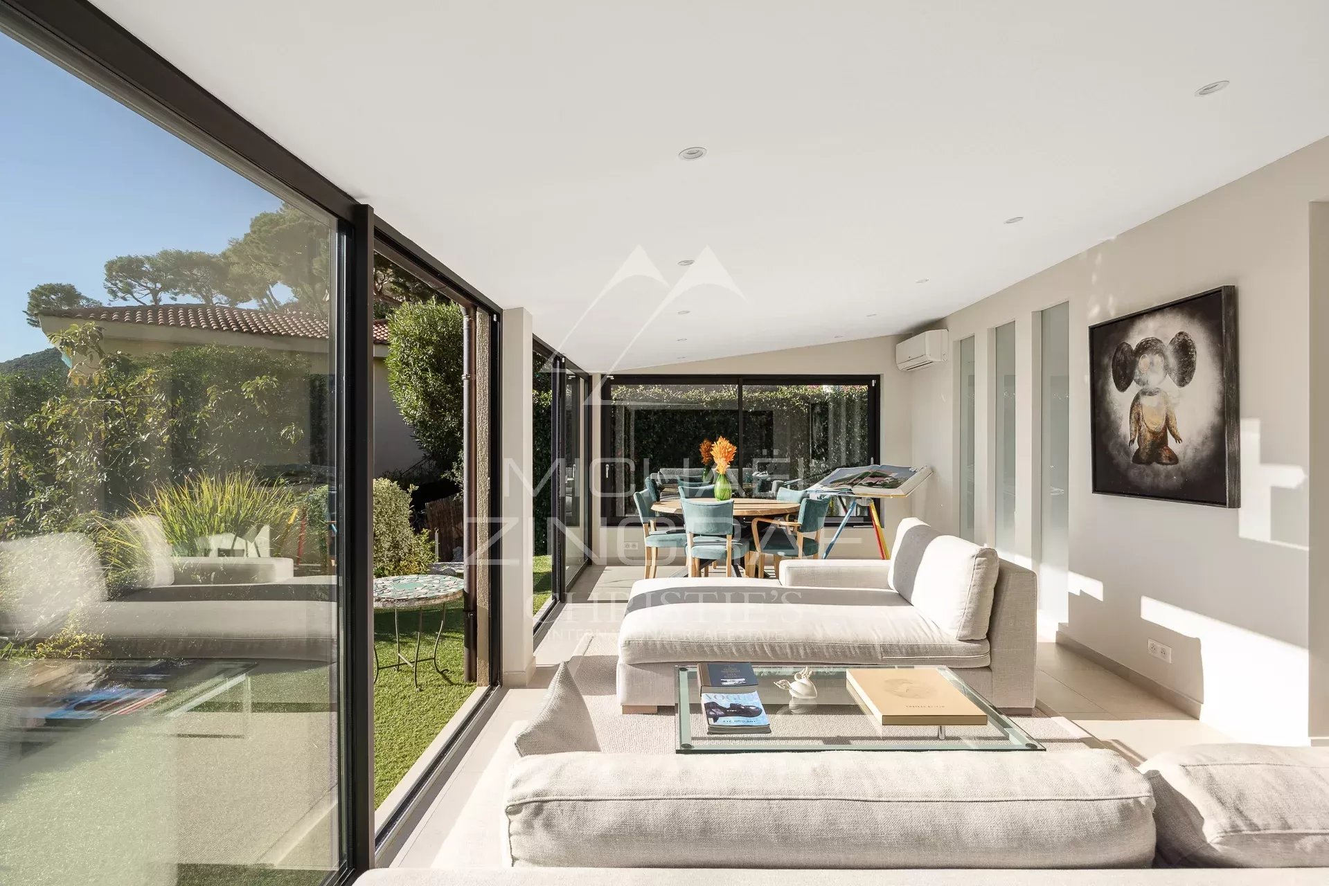 Diese wunderschöne Villa im zeitgenössischen Stil, die von einem berühmten Architekten entworfen wurde, befindet sich in der Nähe des renommierten Grand Hôtel du Cap in einer äußerst ruhigen mediterranen Landschaft...