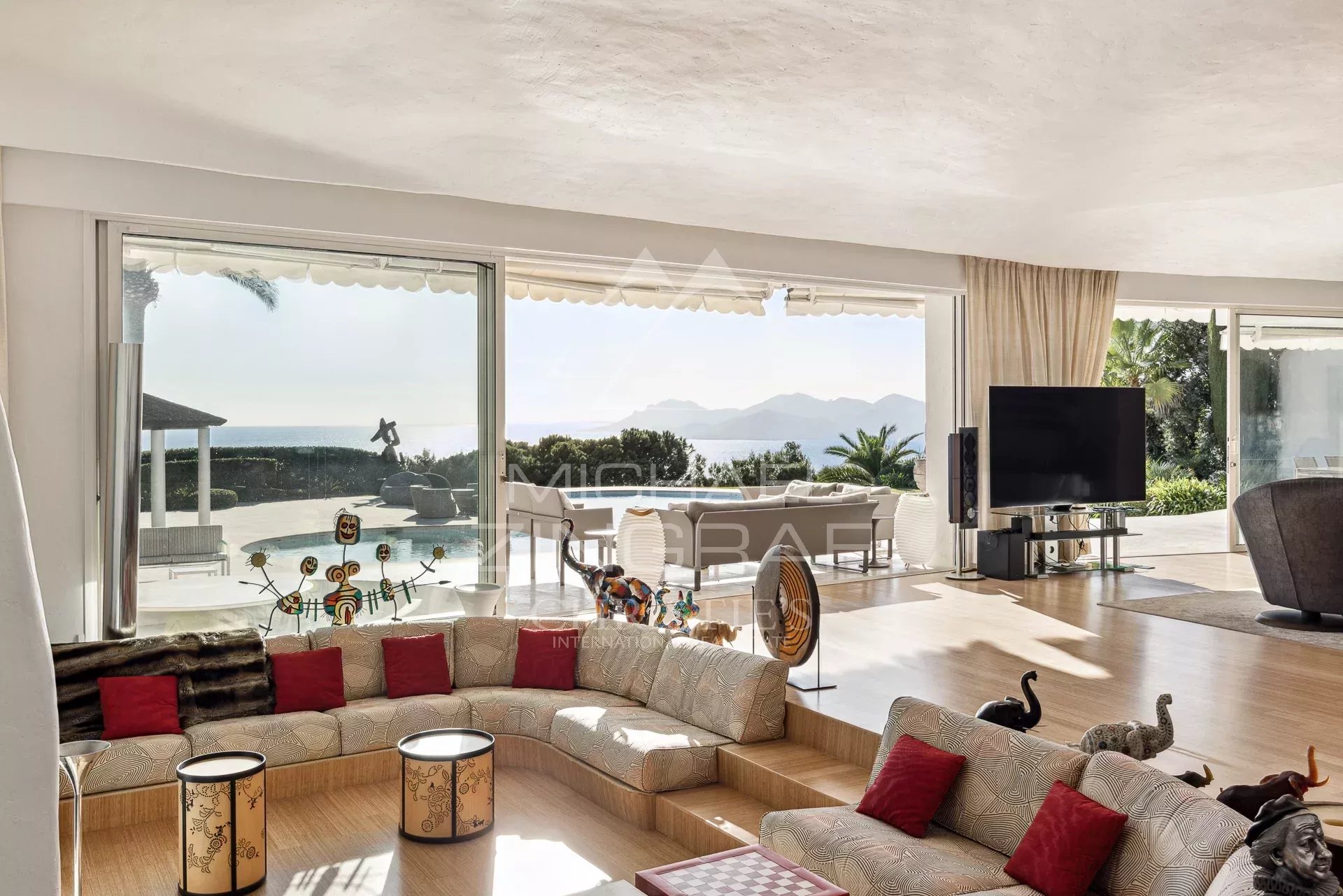 In dominanter Lage zwischen Cannes und Le Cap d'Antibes bietet diese außergewöhnliche, zeitgenössische Villa von ca. 575 m2, die von dem renommierten Architekten Mauclet entworfen wurde, einen atemberaubenden Panoramablick auf...