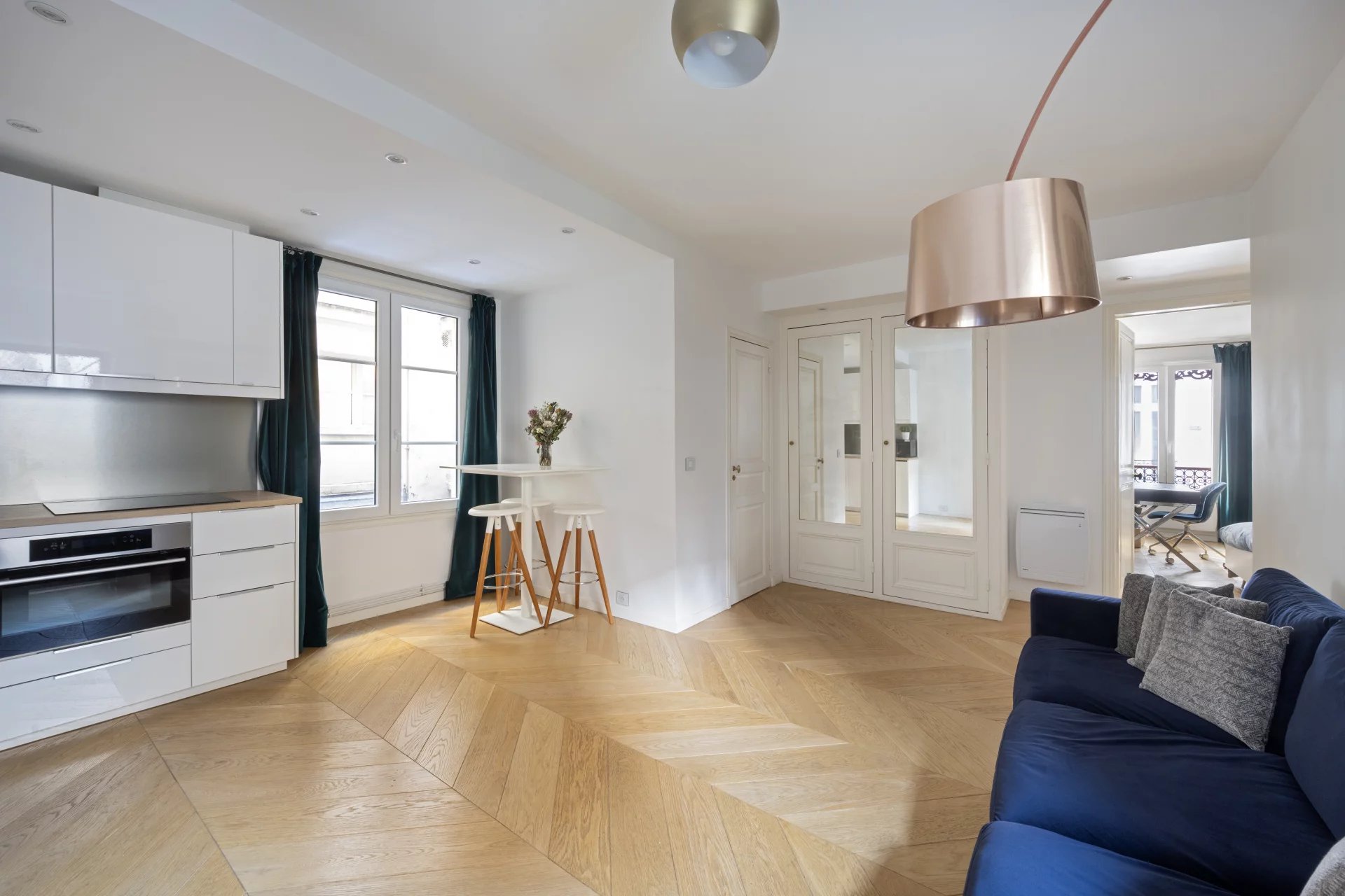 Zu verkaufen von Michaël Zingraf: Paris 8. - George V : In einer wunderschönen Residenz besteht diese komplett renovierte Wohnung von 62m2 aus einem Eingang, einem großen Wohn-Esszimmer, das auf...