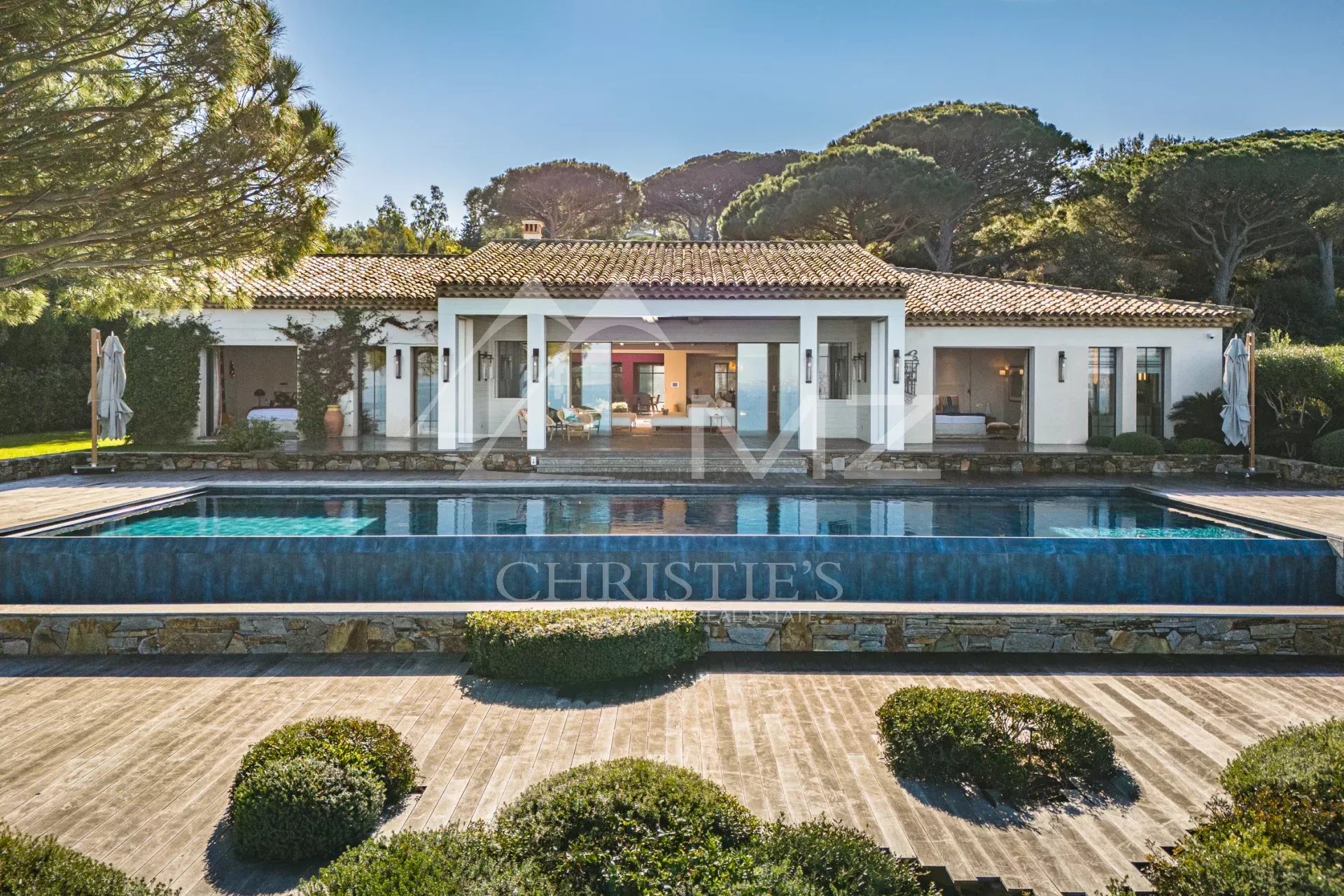 Dieses charmante, zeitgenössische Anwesen befindet sich in den berühmten Parks von Saint-Tropez. Es genießt einen herrlichen freien Blick auf das Meer und bietet mit seinem weitläufigen, flachen Landschaftspark von ca....