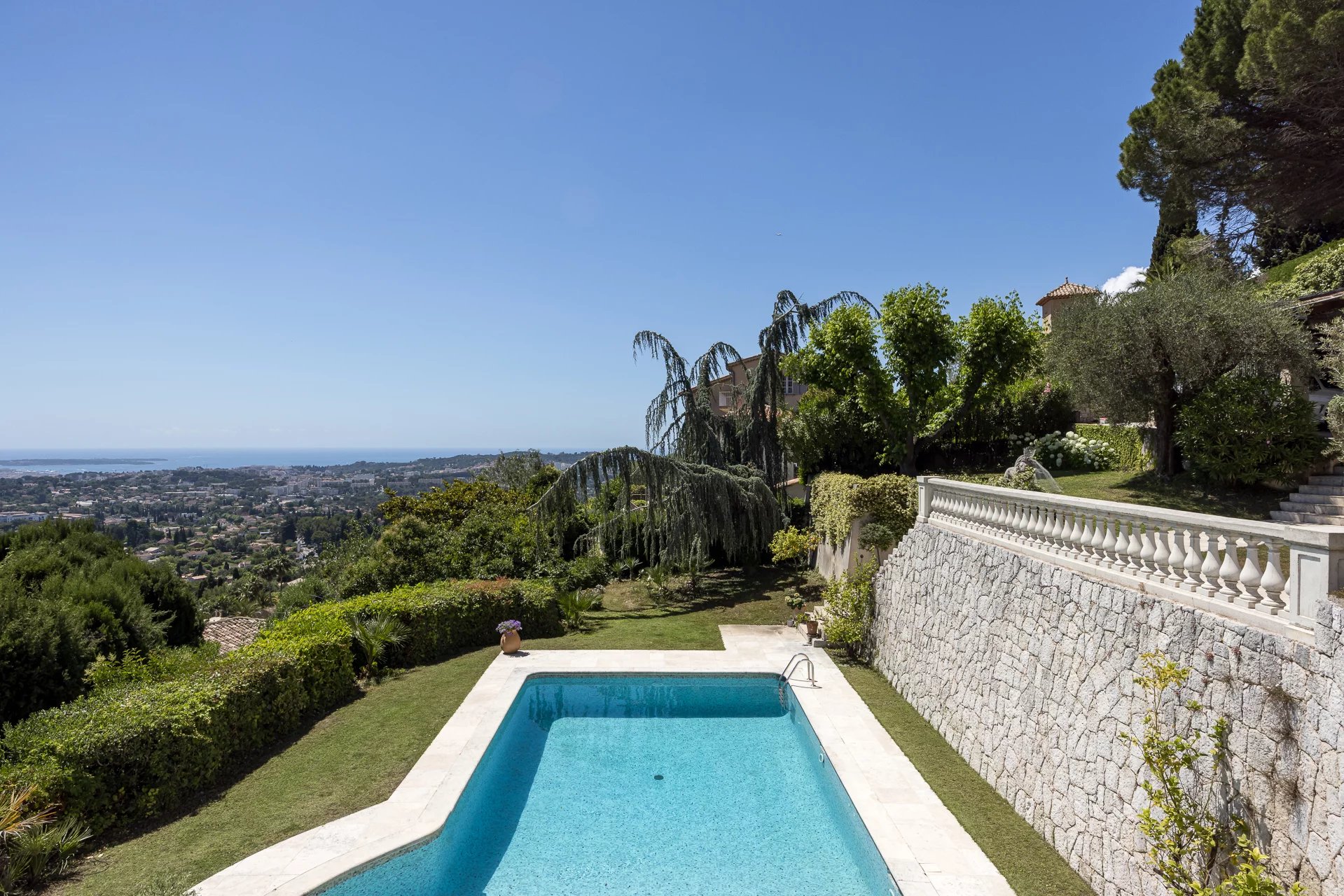 In erhöhter Lage und in einem privaten Anwesen gelegen, genießt diese hübsche Villa einen freien Blick auf das alte Dorf Mougins und die umliegenden Hügel bis hin zum Meer. Vollständig...