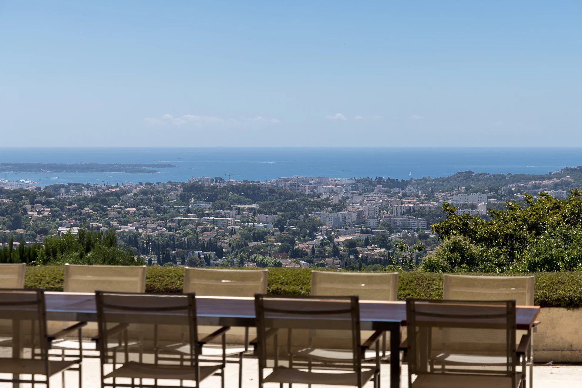 Wunderschöne moderne Villa in der Nähe des alten Dorfes Mougins mit Panoramablick auf das Meer. Auf einer Fläche von ca. 600 m² auf 3 Ebenen bietet die Villa geräumige und...
