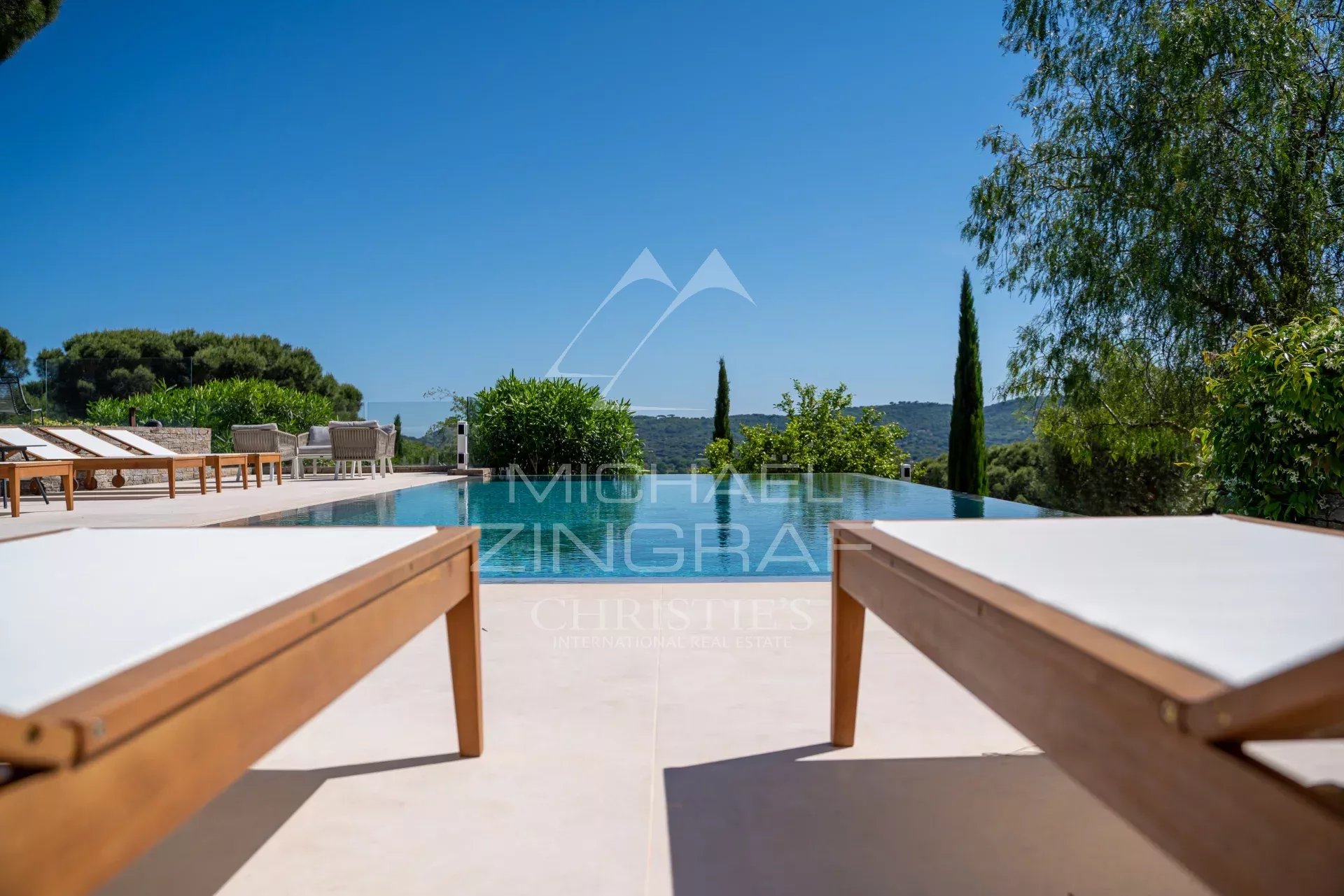 Dieses charmante, zeitgenössische Anwesen befindet sich in den berühmten Parks von Saint-Tropez. Es genießt einen herrlichen freien Blick auf das Meer und bietet mit seinem weitläufigen, flachen Landschaftspark von ca....