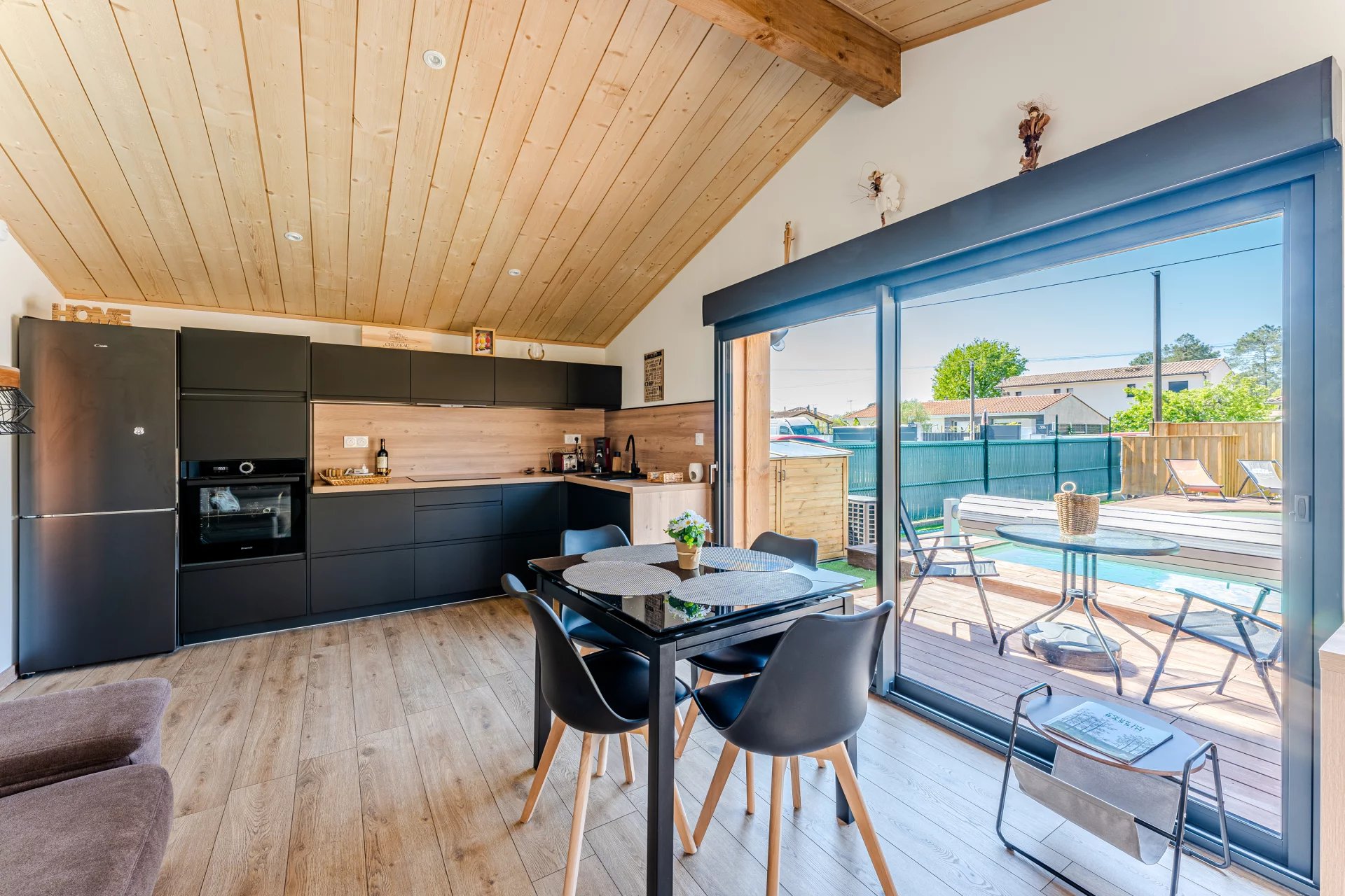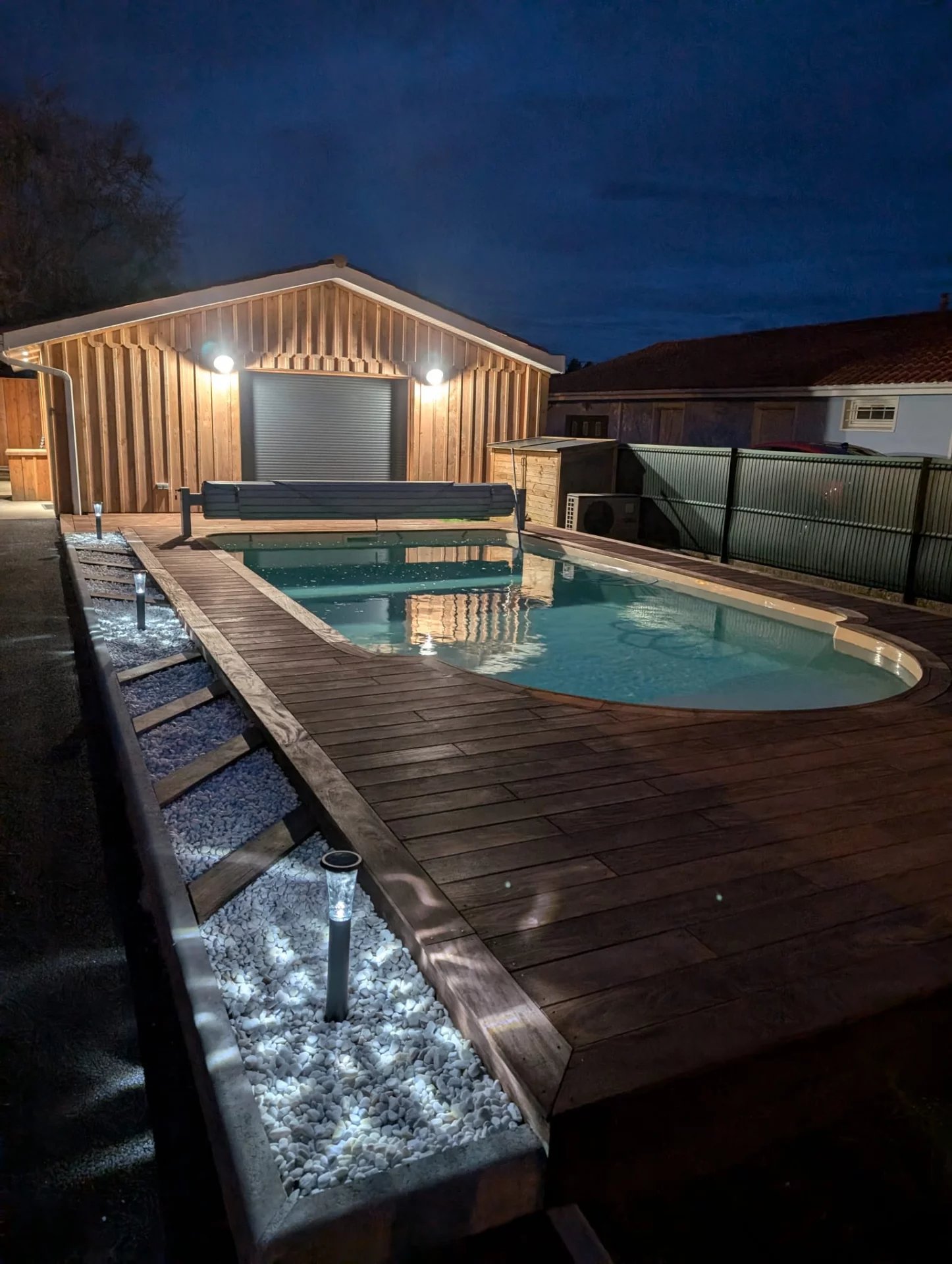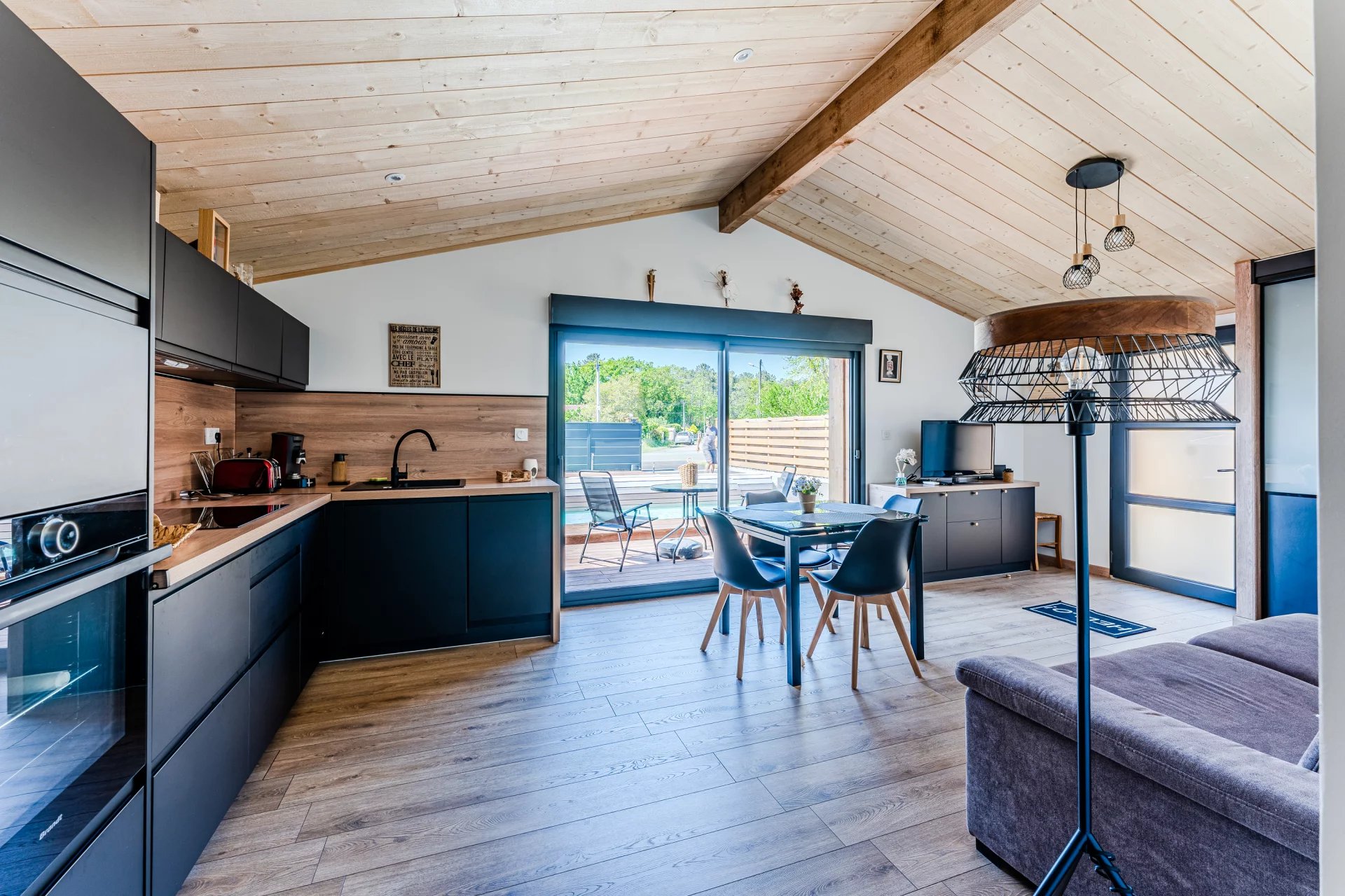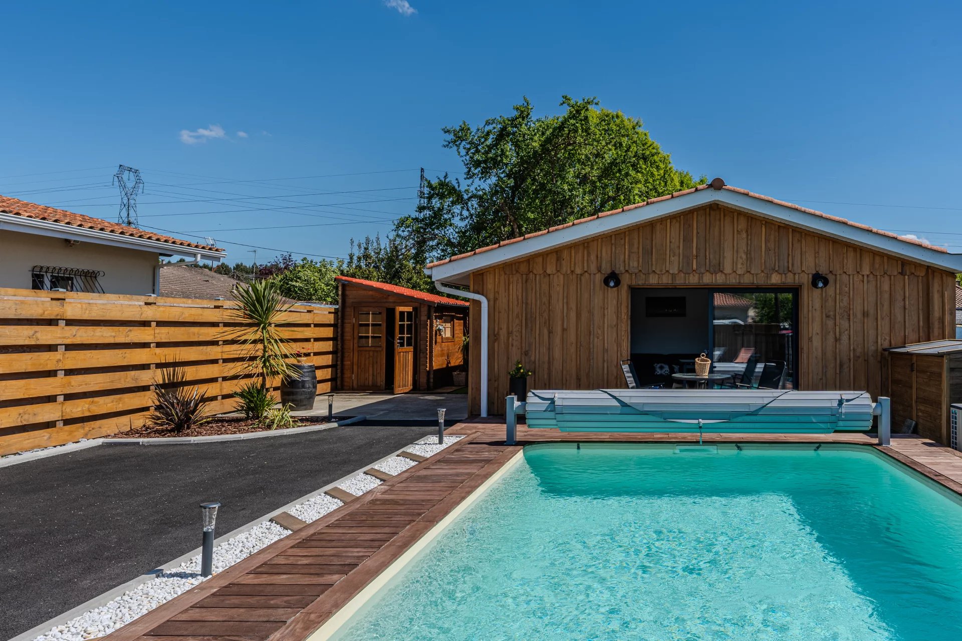 Im Außenbereich profitieren Sie von einem perfekt ausgestatteten Bereich: ein beheizter Pool für Ihre Entspannungsmomente, ein praktischer Schuppen für die Aufbewahrung von Fahrrädern oder Ausrüstung sowie ein elektrisches Tor, das den Zugang zum Grundstück sichert.