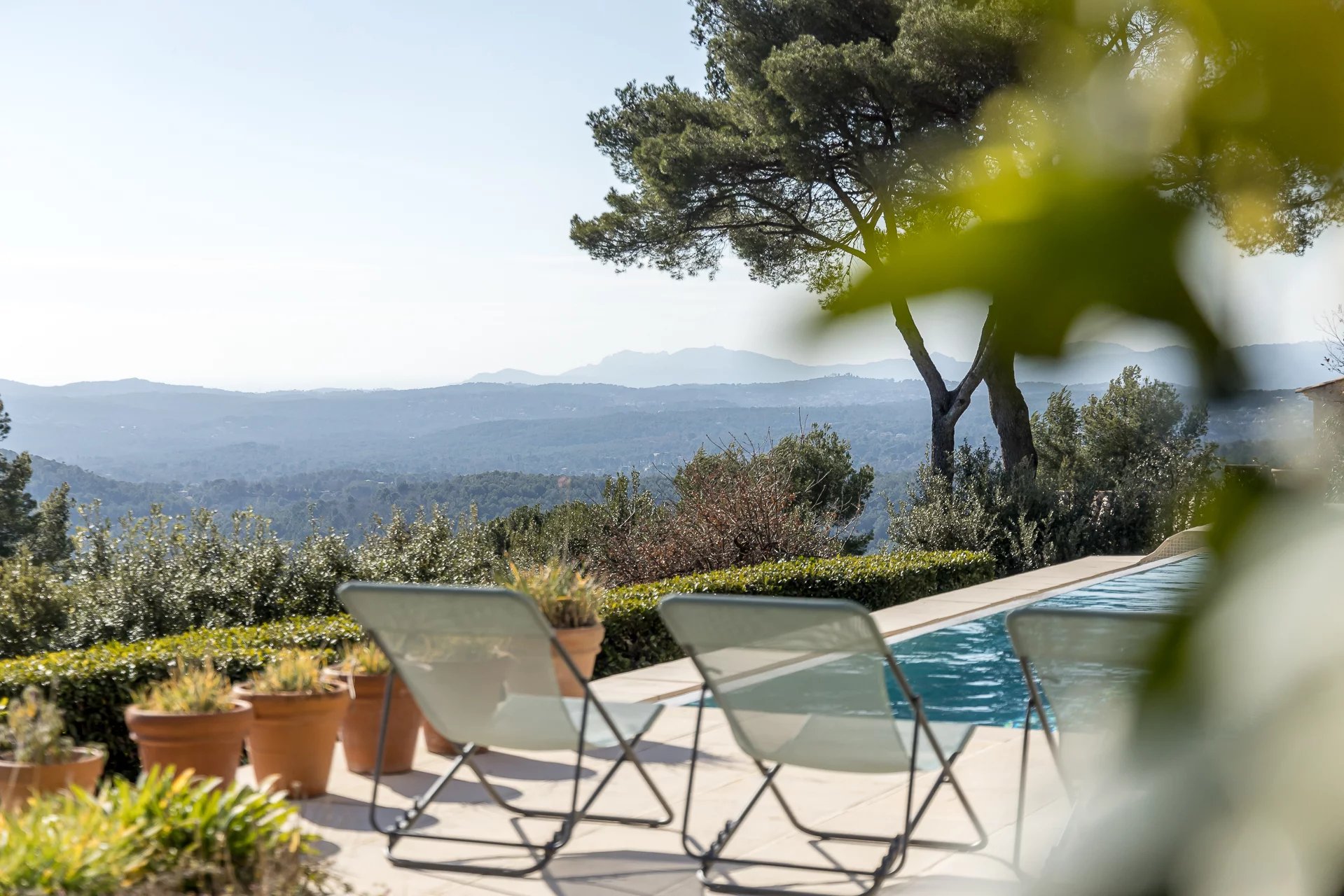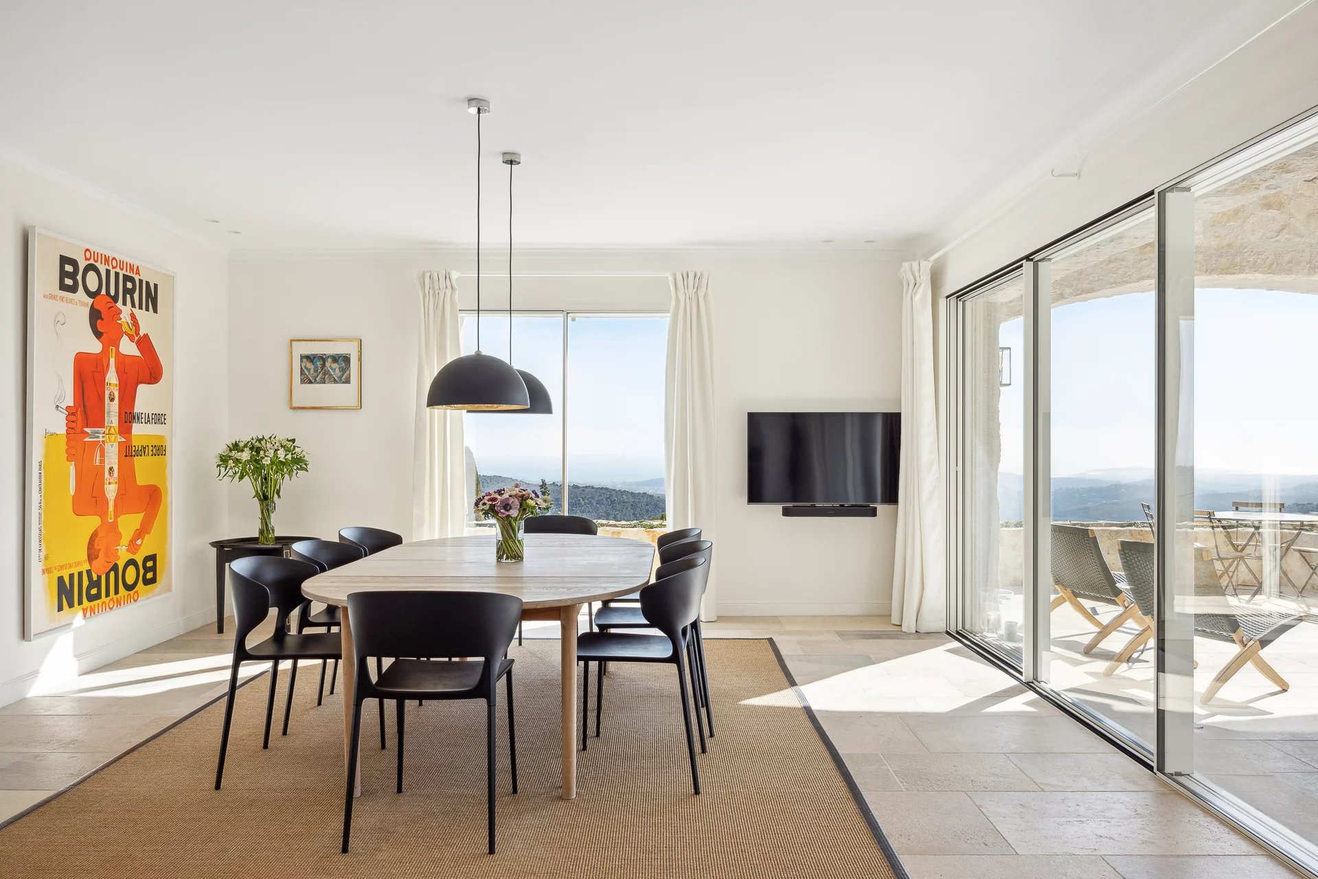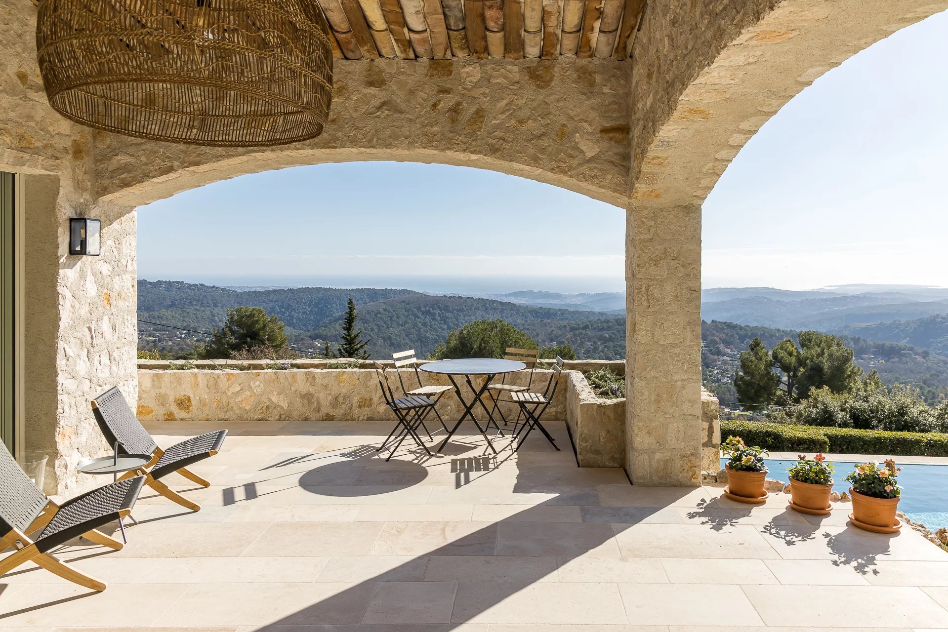 Sehr schönes provenzalisches Landhaus von ca. 300 m², das komplett renoviert wurde und einen herrlichen Panoramablick auf das Meer bietet. Diese Immobilie befindet sich in einer ruhigen Wohngegend, nur wenige Gehminuten vom Dorf Tourrettes entfernt.