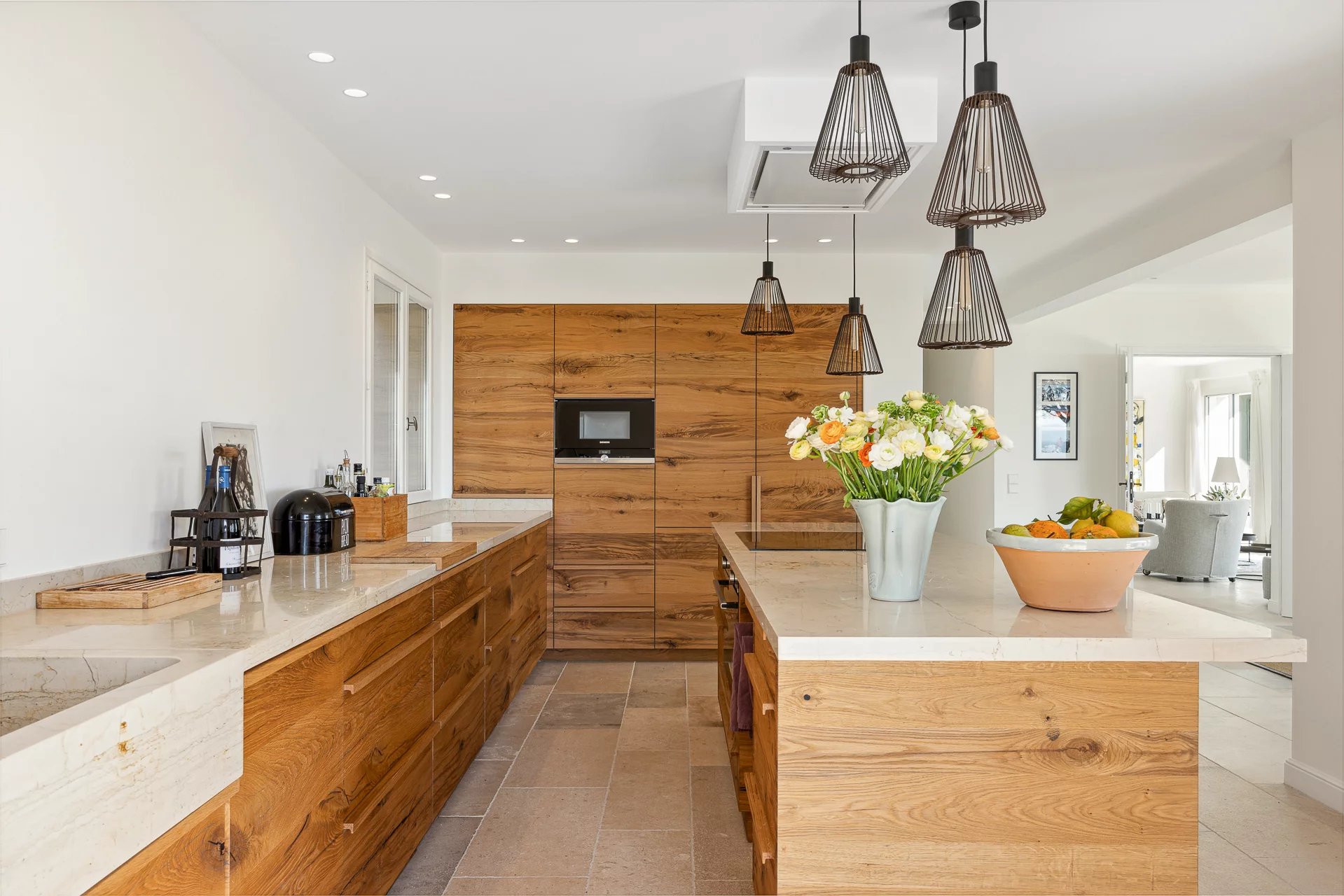 Im ca. 4000 m² großen Garten befindet sich ein wunderschöner beheizter Infinity-Pool, der einen unglaublichen Blick auf das Meer bietet. Auf einer sehr schönen Terrasse mit Grill und Sommersalon können Sie die sonnigen Tage genießen.