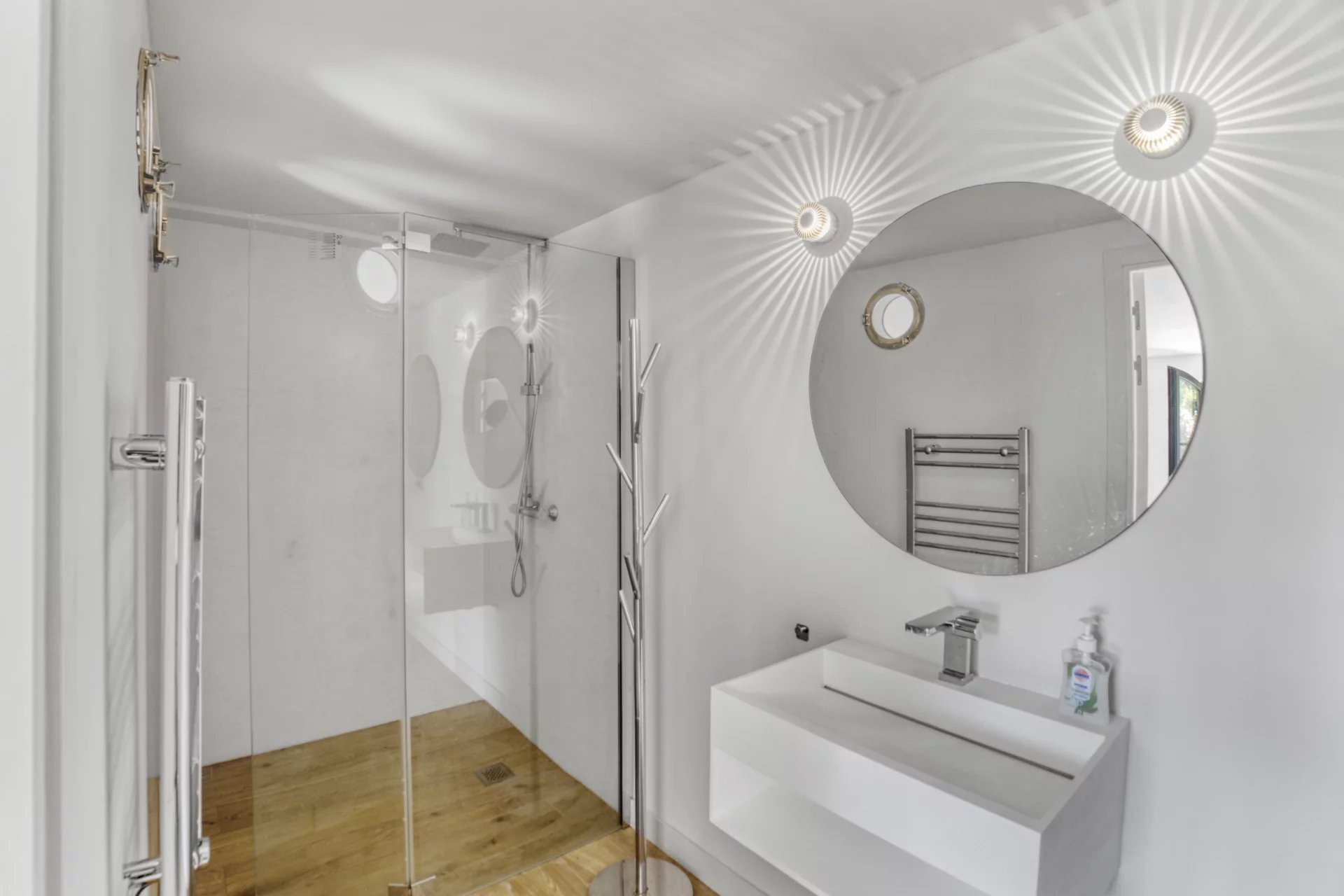 Die Villa steht auf einem flachen Grundstück von ca. 1700 m² mit einem großen Pool, einem Poolhaus und einer Sommerküche. Das Erdgeschoss umfasst helle Wohnräume, die sich zu einer Terrasse mit Sommersalon hin öffnen, sowie 3 Schlafzimmer (zwei en suite und eines mit separatem Duschbad). Im Gartengeschoss finden Sie ein 4. großes Schlafzimmer mit Duschbad und separatem Eingang und das 5. Schlafzimmer/Büro mit separatem Zugang, Duschbad und Hauswirtschaftsraum.