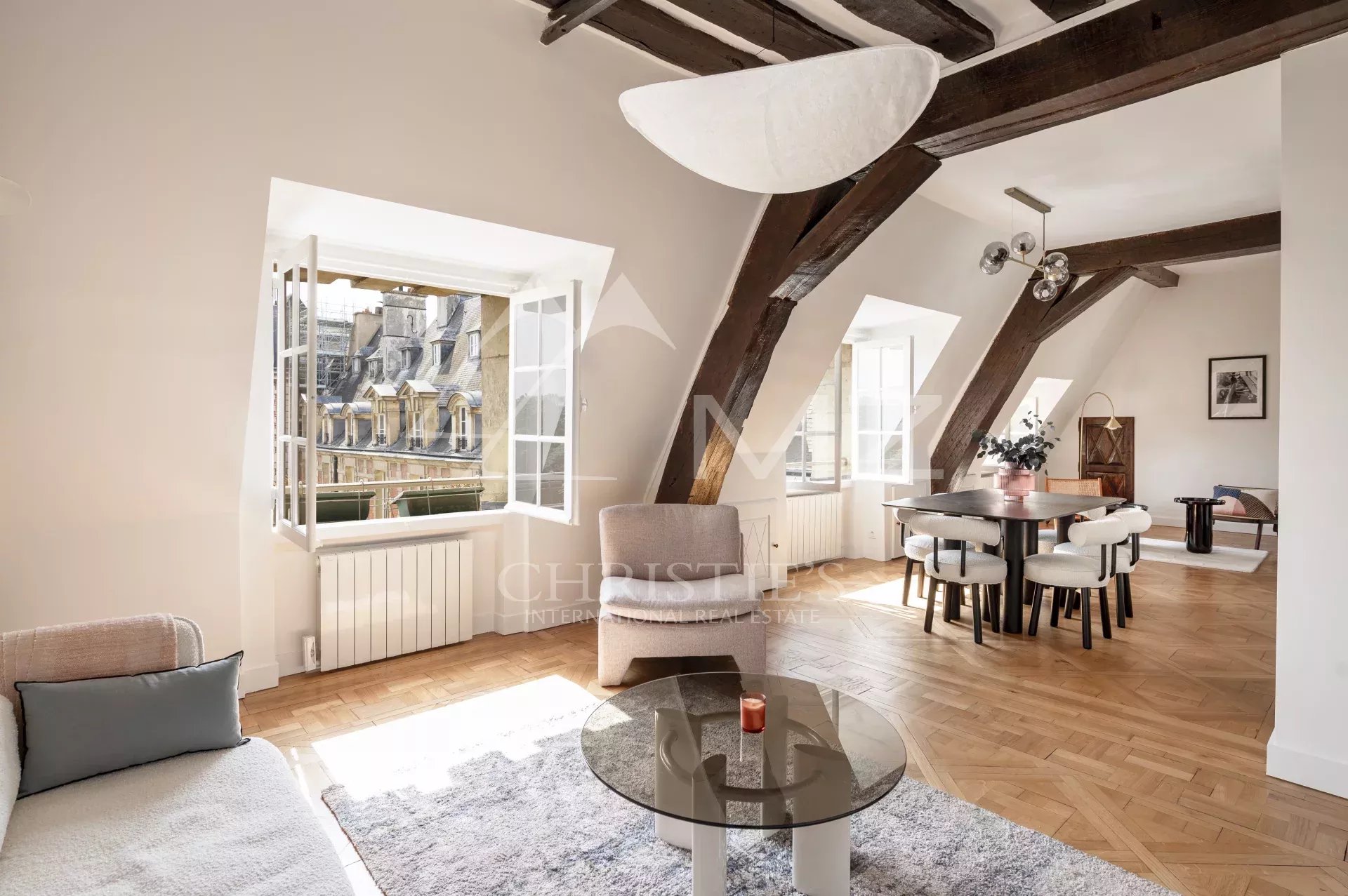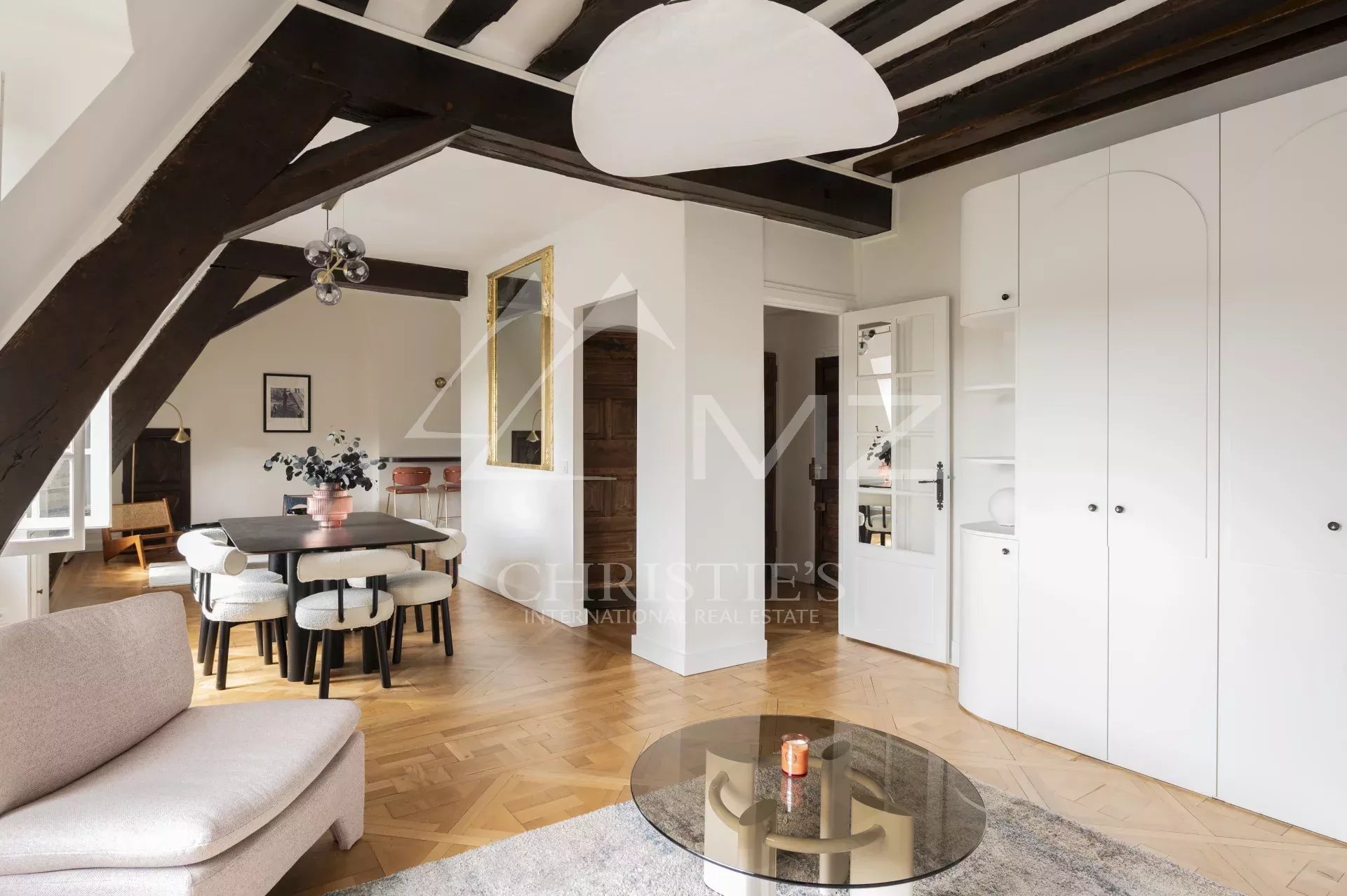 Am Place des Vosges gelegen, bieten wir Ihnen diese außergewöhnliche Wohnung mit 60,71m2 Carrez und 87,88m2 Grundfläche im denkmalgeschützten Hôtel de Chaulnes an, die Sie mit ihrem Charme und ihrer unbestrittenen Aussicht begeistern wird.
