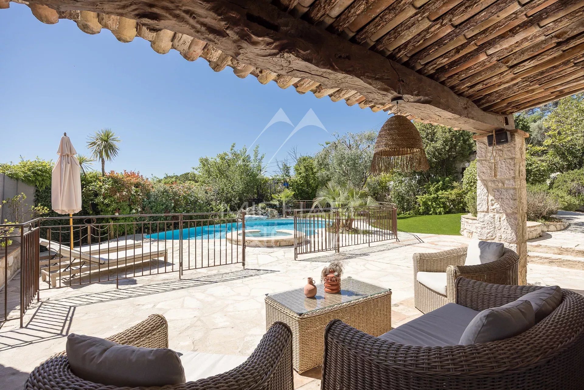 In idealer Lage in einer ruhigen und begehrten Wohngegend, in unmittelbarer Nähe von Cannes und Antibes, bietet diese elegante Villa im provenzalischen Stil einen außergewöhnlichen Panoramablick auf das Meer, der...