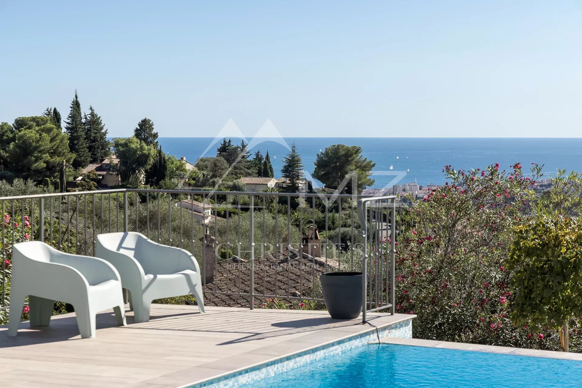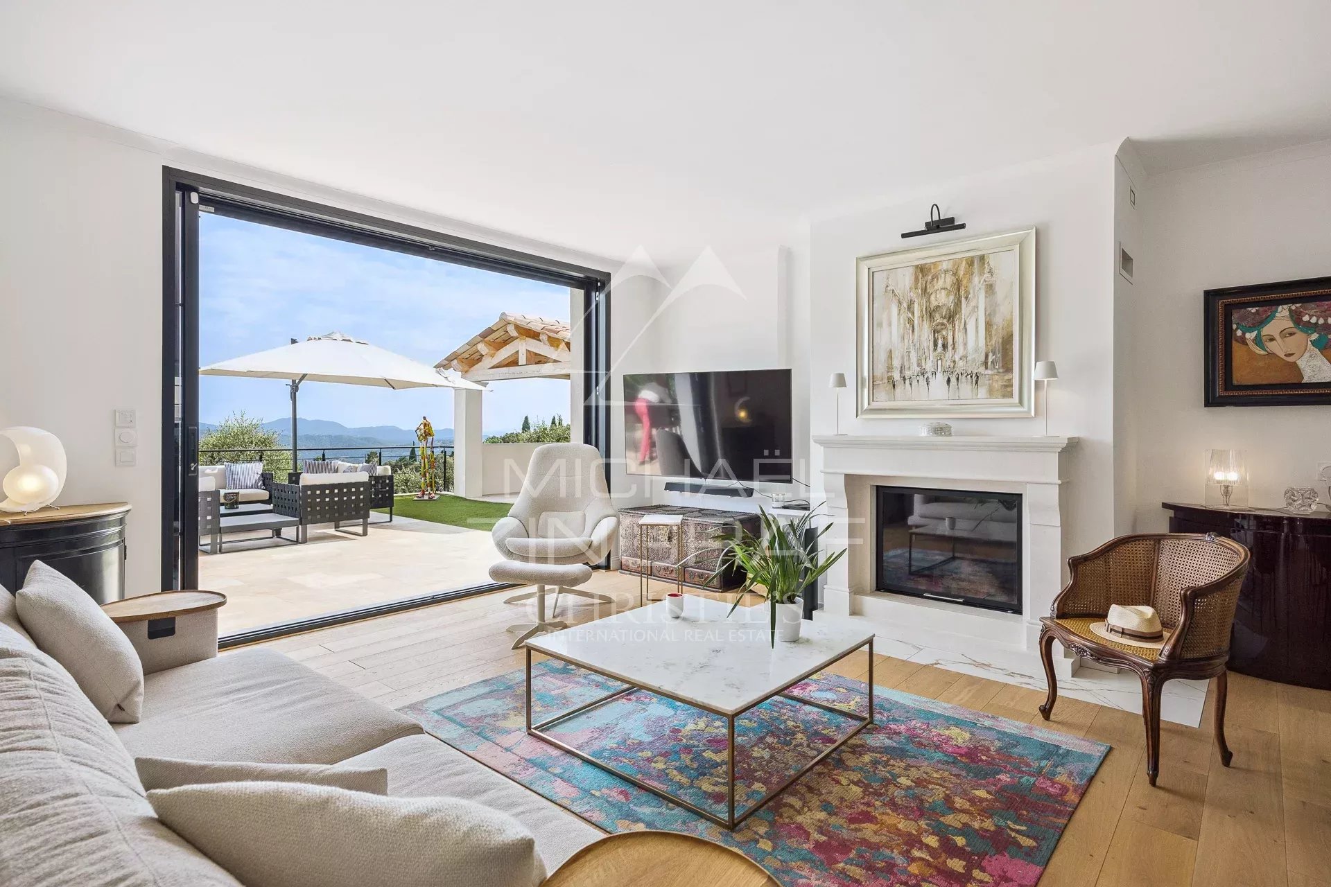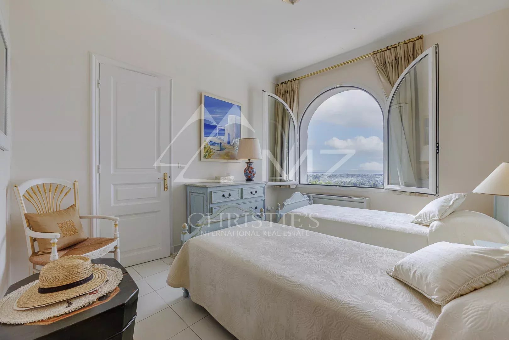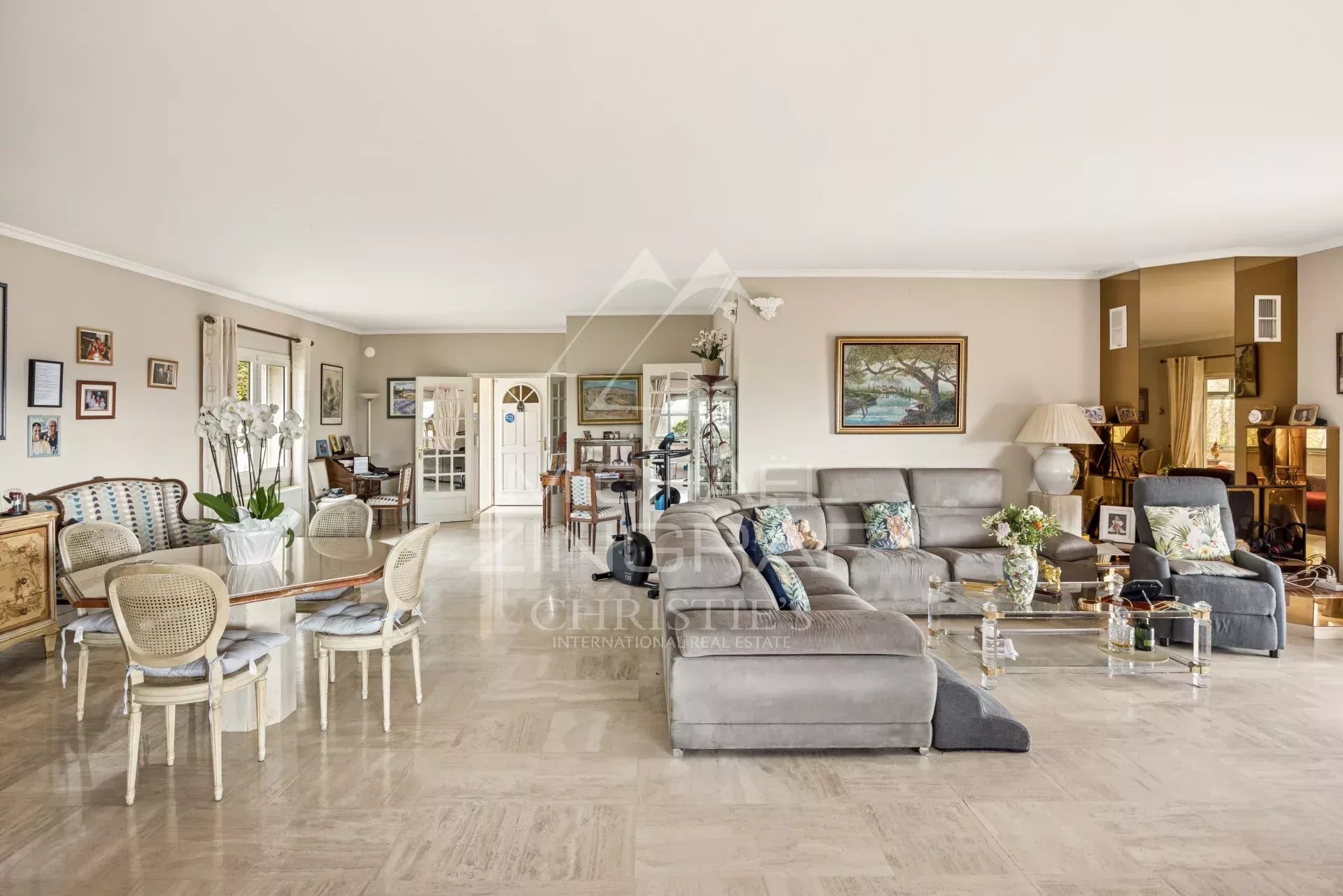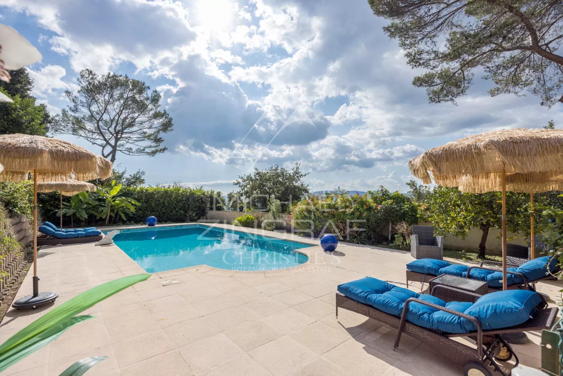 Entdecken Sie diese außergewöhnliche Villa, die ideal in einer beherrschenden Position gelegen ist und einen atemberaubenden Panoramablick auf das Meer und die Lérins-Inseln bietet. Dieses kürzlich geschmackvoll renovierte Anwesen mit...