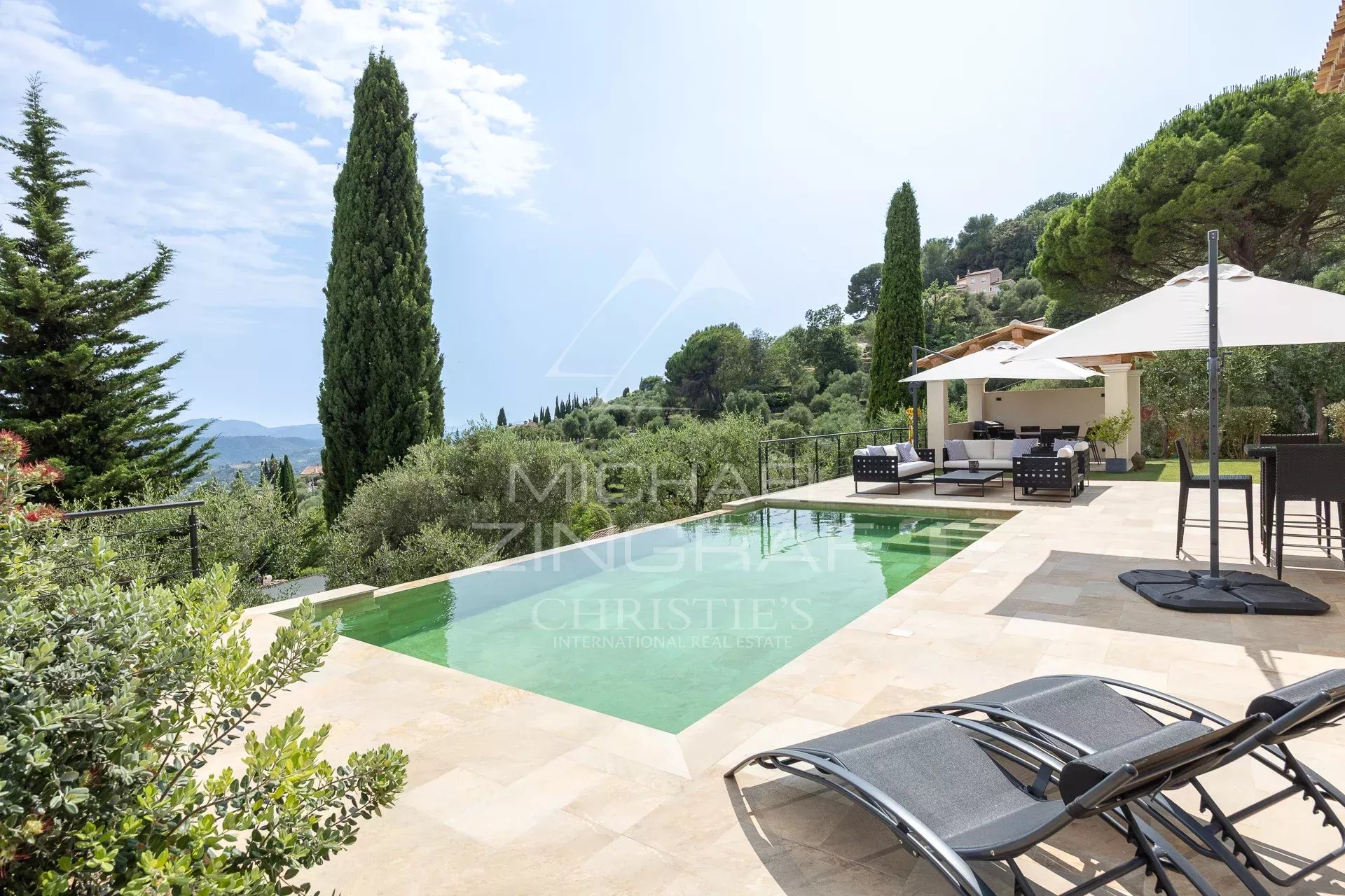 Wir laden Sie ein, in dieser zeitgenössischen Villa mit fast 300m² Wohnfläche hoch hinaus zu gehen. Sie bietet einen unwahrscheinlichen Panoramablick auf die Bucht von Cannes, das hochgelegene Dorf Cabris,...
