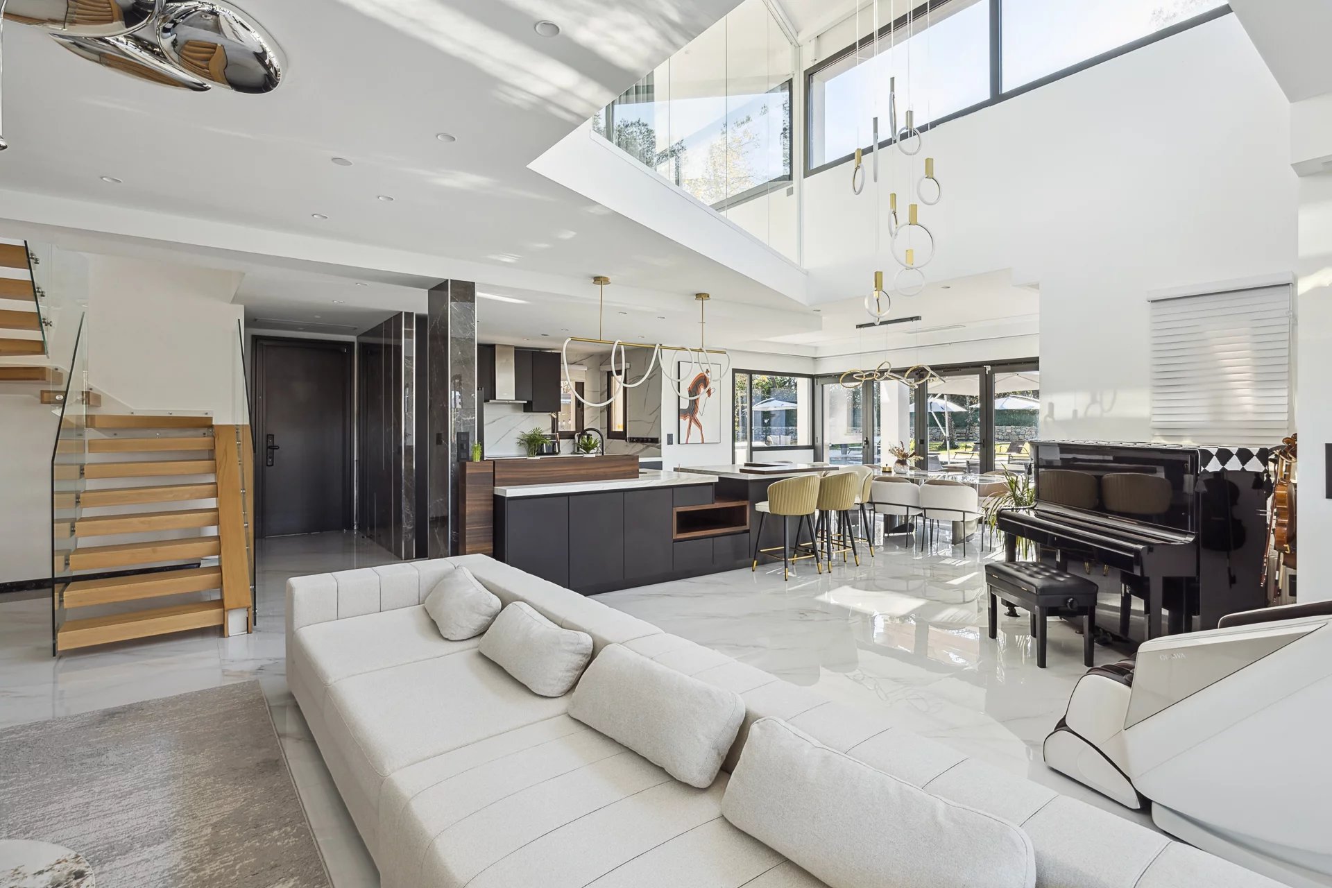 Zeitgenössische, ebenerdige Architektenvilla von ca. 228 m² mit atemberaubendem Panoramablick. Sie verfügt über ein großzügiges, helles Wohnzimmer von etwa 60 m², ausgestattet mit einem Kamineinsatz und einer großen Panoramafensterfront, die...