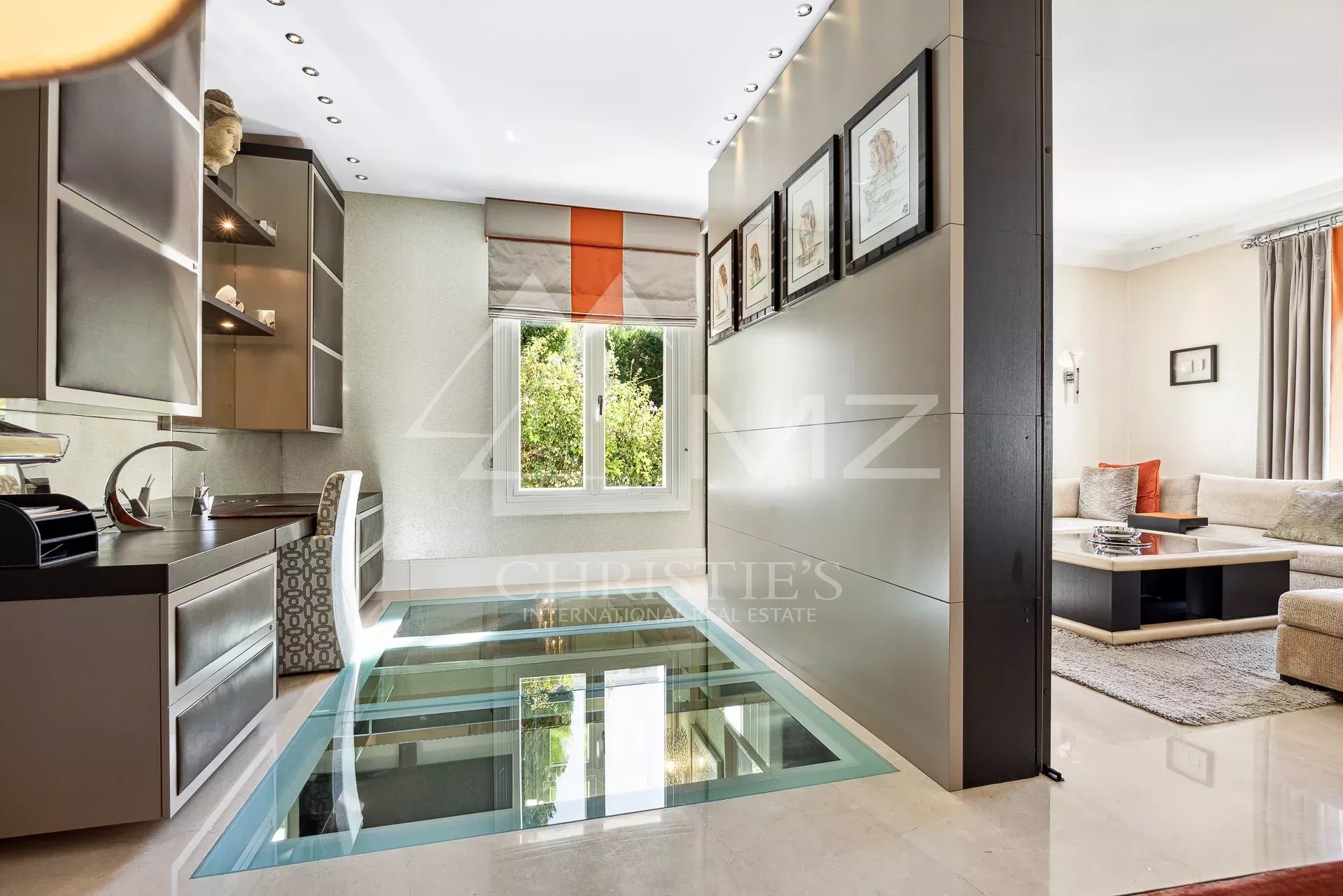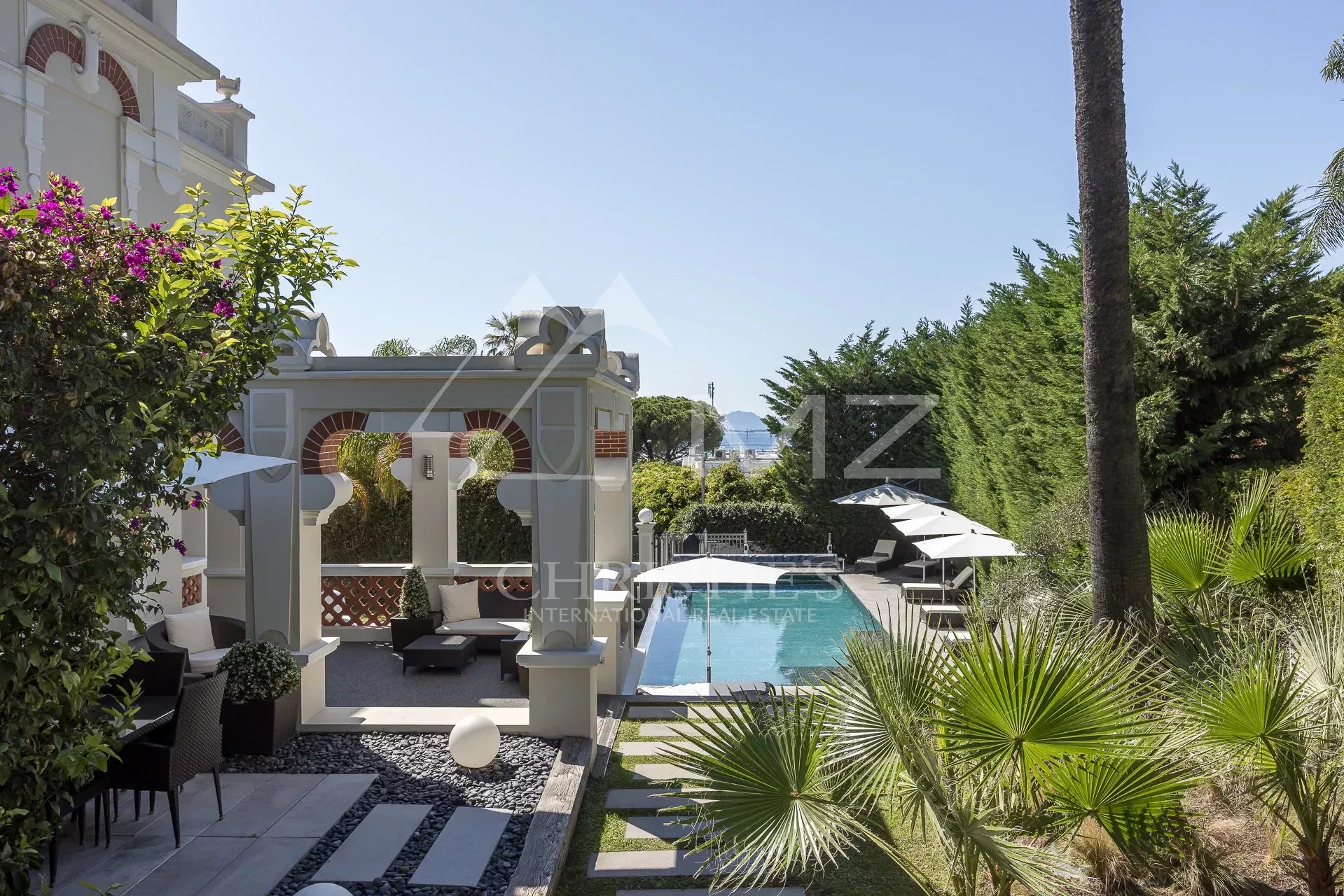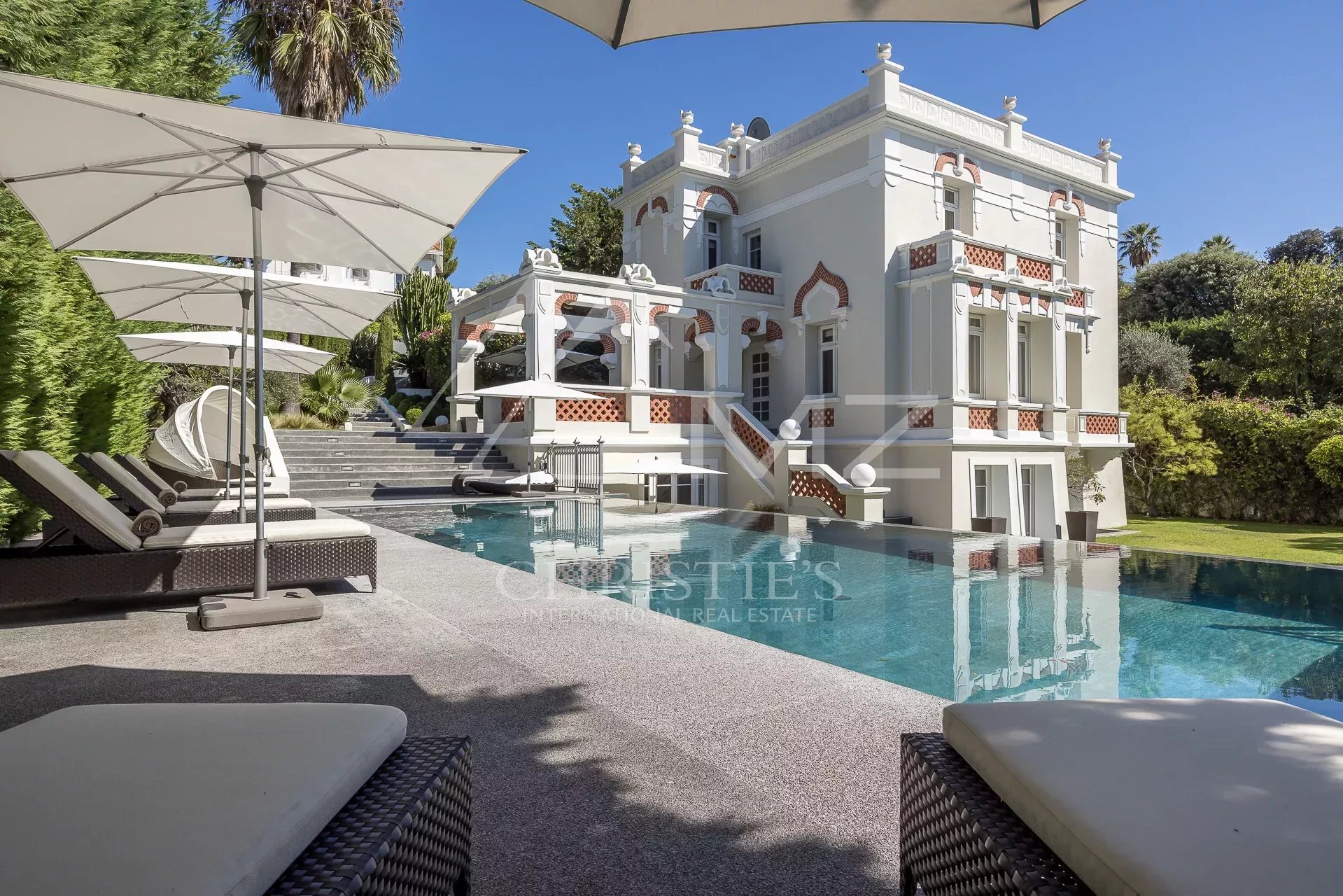Die Villa verfügt auch über eine große Dachterrasse mit Panoramablick auf das Meer und die Berge sowie einen angelegten Garten mit einem großen Pool und einem ausgestatteten Poolhaus. Diese einzigartige Immobilie vereint den Charme der Alten Welt mit modernem Komfort und bietet eine außergewöhnliche Lebensumgebung an der Côte d'Azur, in einer der begehrtesten Gegenden von Cap d'Antibes.