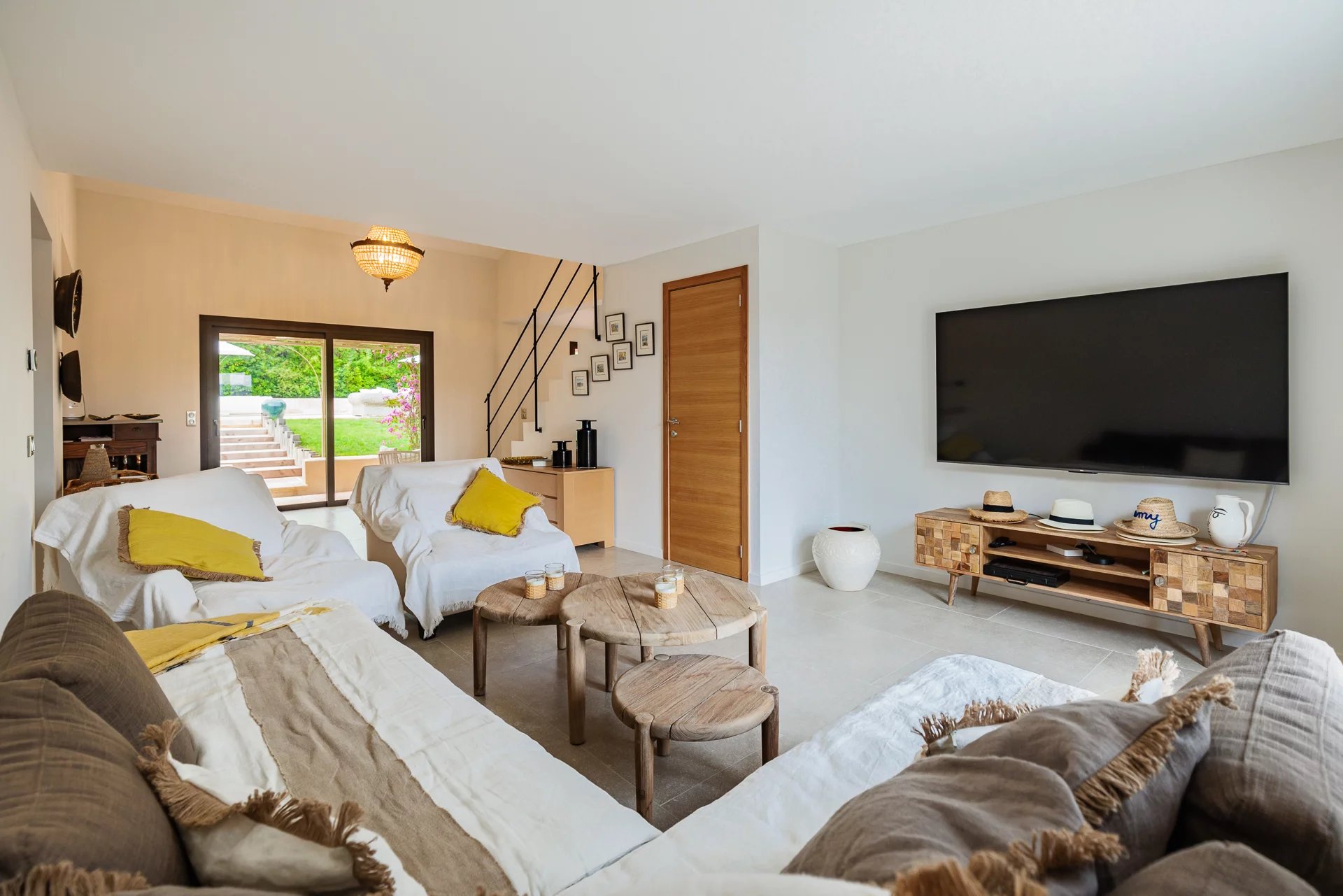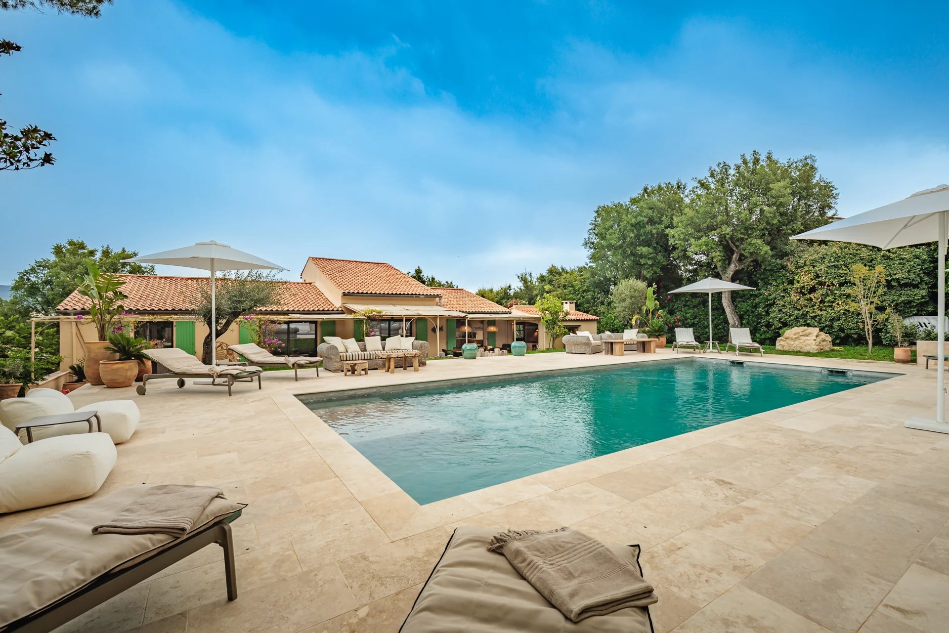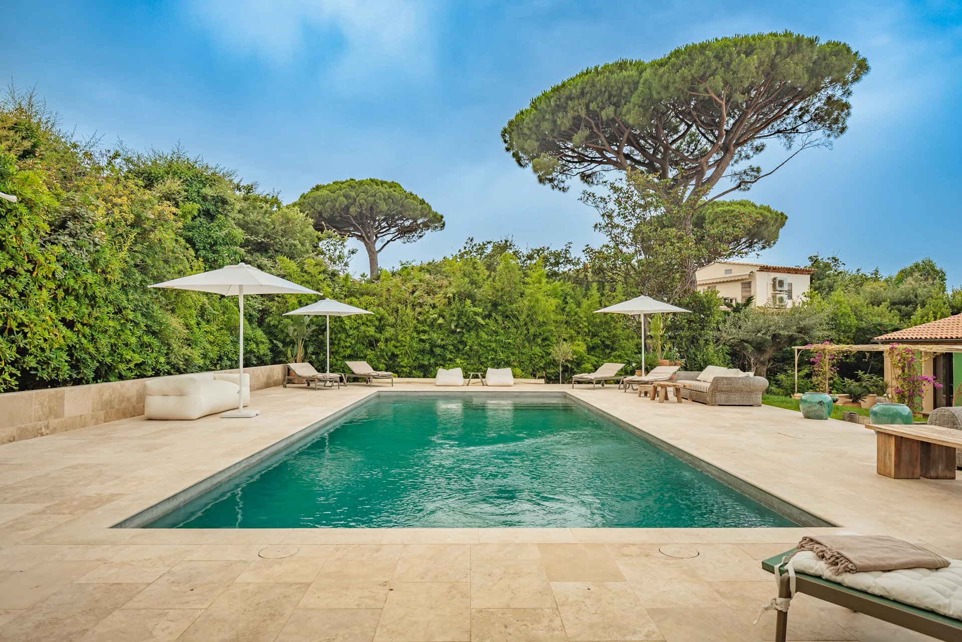 Diese wunderschöne, komplett renovierte Villa liegt in ruhiger Lage, nur wenige Gehminuten vom Strand und 4 km von Saint-Tropez entfernt. Sie bietet Platz für die ganze Familie oder Ihre Freunde mit 8 Schlafzimmern en suite, einem hellen Wohnzimmer und einer voll ausgestatteten Küche, die sich zu einer schönen Terrasse und einer Sommerküche öffnet.