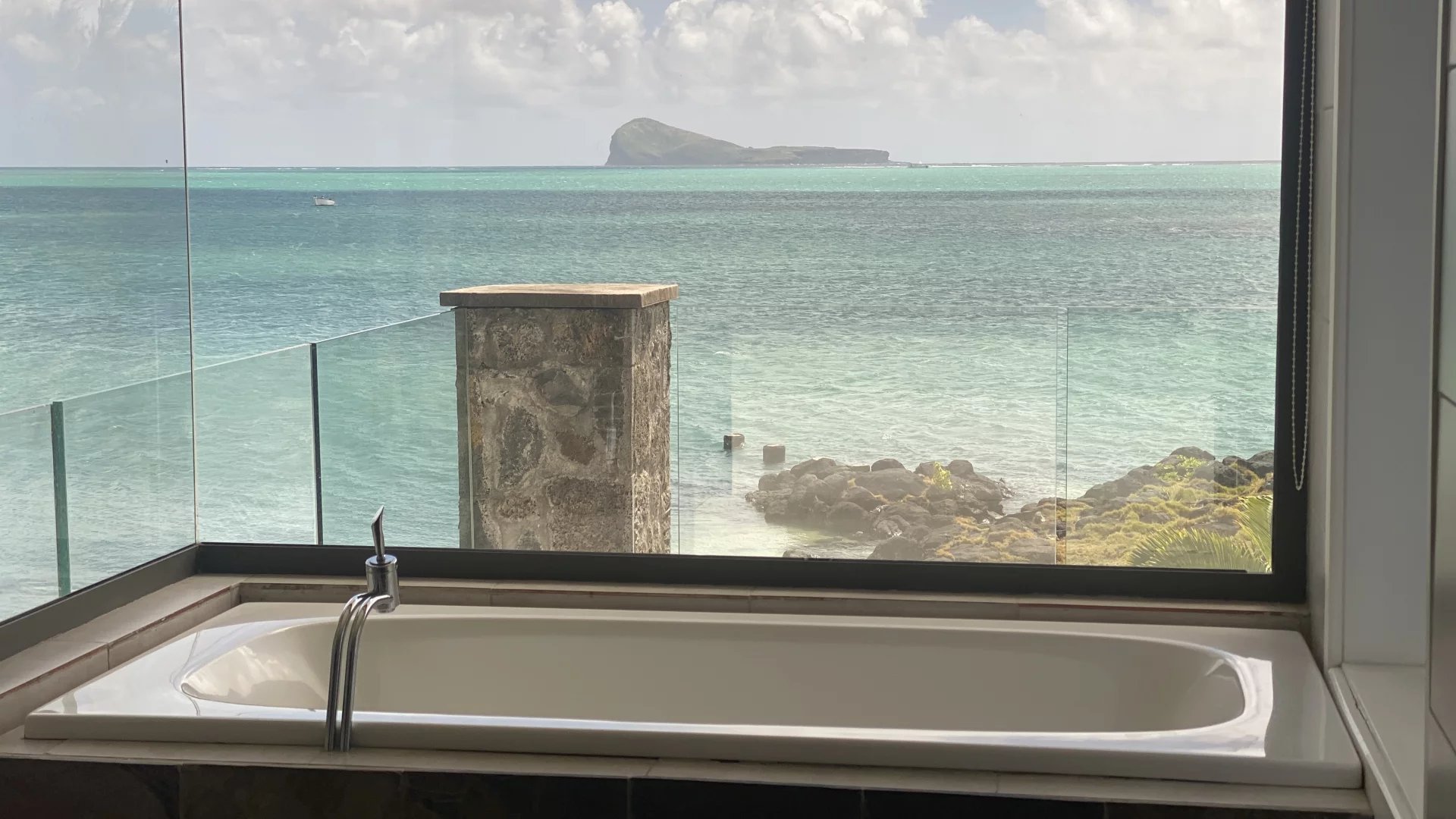 Die Master Suite bietet einen atemberaubenden Blick auf Coin de Mire und öffnet sich zu einer großen Terrasse.