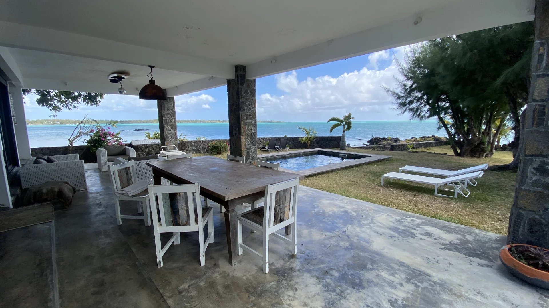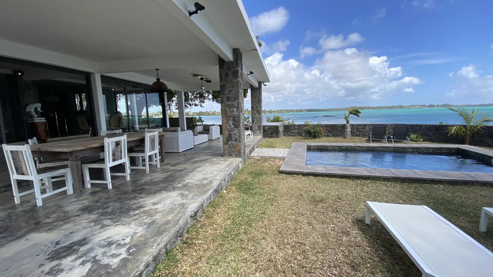 Geräumige Terrasse mit Blick auf den privaten Pool und den Ozean und bietet eine spektakuläre Aussicht auf Coin de Mire.