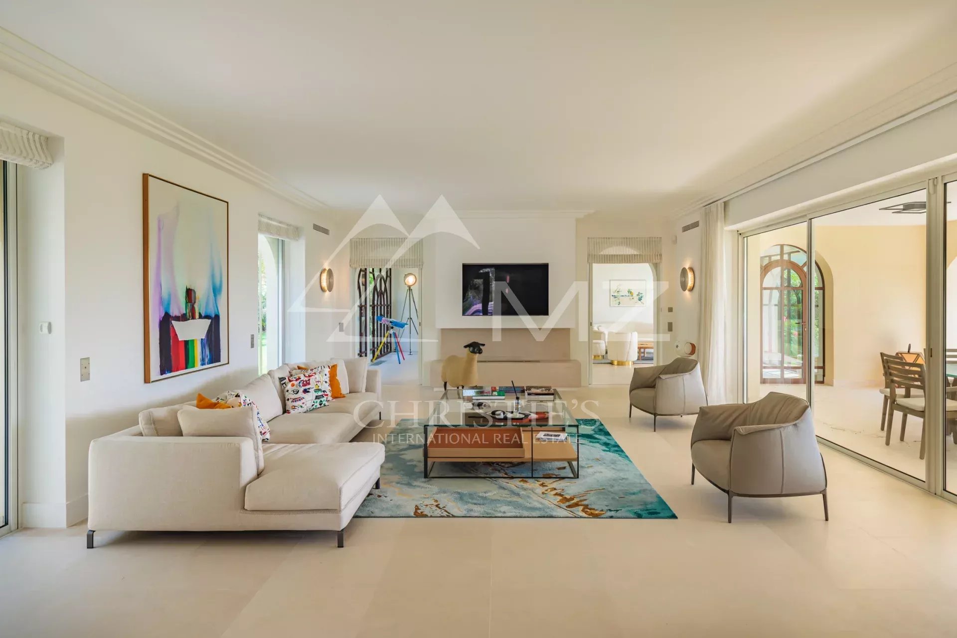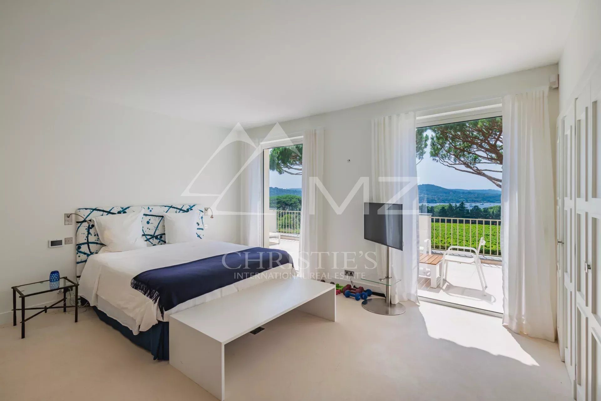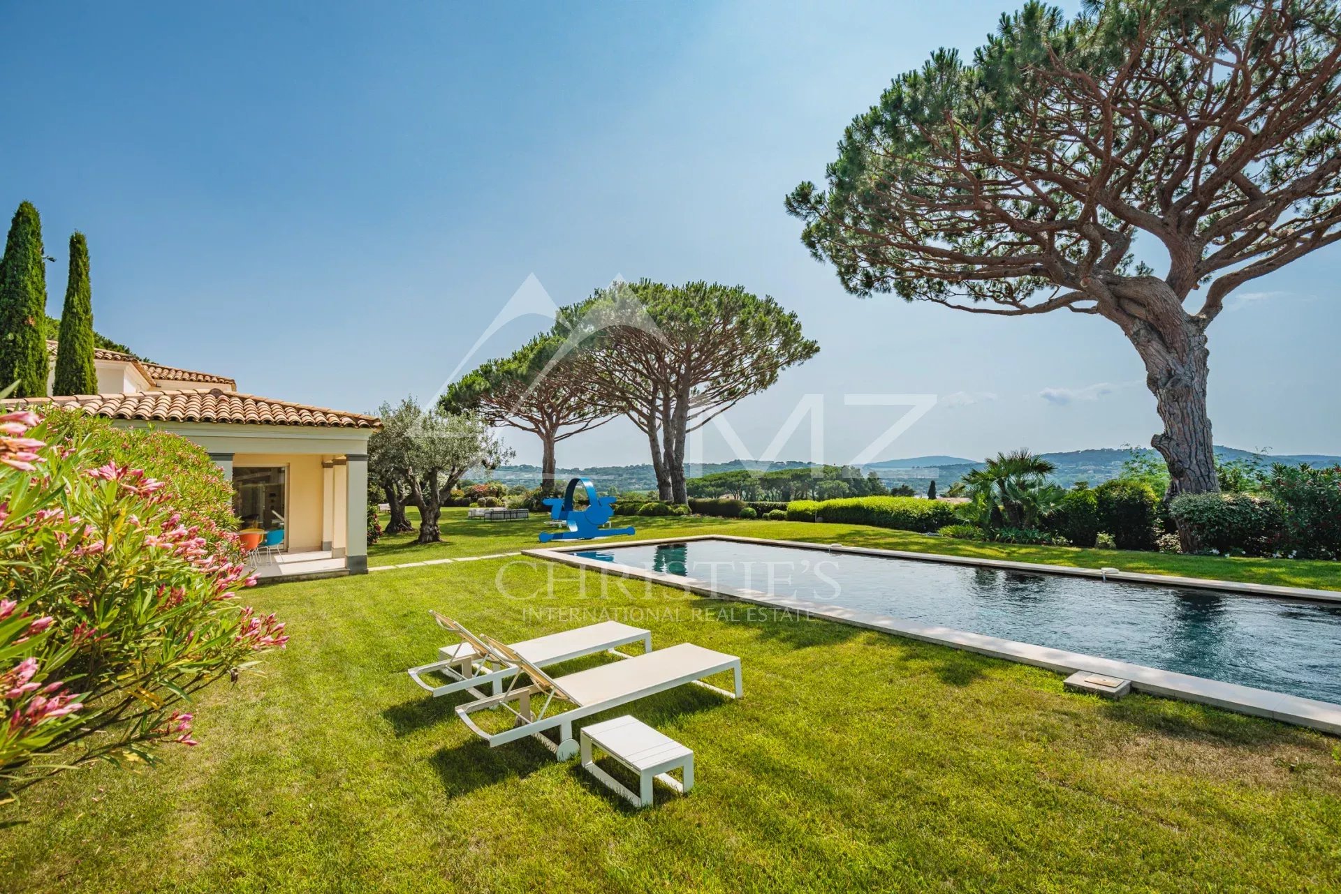 Dieses charmante, zeitgenössische Anwesen befindet sich in den berühmten Parks von Saint-Tropez. Es genießt einen herrlichen freien Blick auf das Meer und bietet mit seinem weitläufigen, flachen Landschaftspark von ca. 5.000 m² eine außergewöhnliche Umgebung.