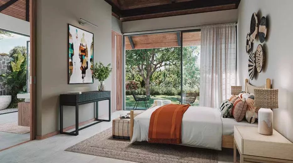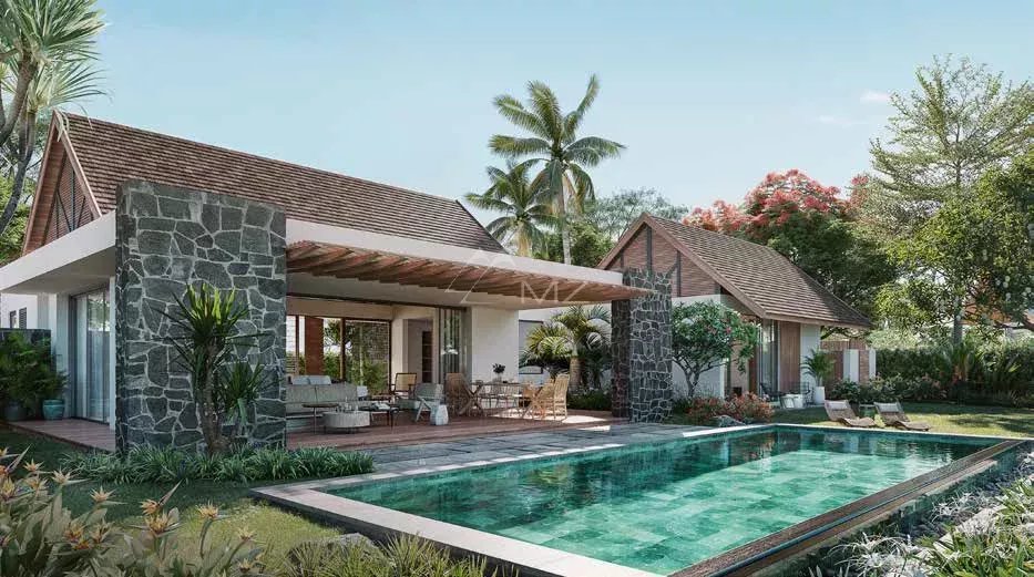 Die Villa Demera - Modell 4 bietet einen atemberaubenden Blick auf die Palmenallee (Palm Alley) und besticht durch ihre großzügigen Räume und ihre offene Architektur, die für natürliche Belüftung und lichtdurchflutete Wohnbereiche sorgt. Sie werden von dieser Villa begeistert sein, die dank einer harmonischen Raumaufteilung leicht zugänglich ist – von der Eingangspforte über das Wohnzimmer und die große Varangue bis hin zum Hauptgarten mit Pool. Zudem können Sie einen wunderschönen tropischen Garten mit einheimischen Pflanzen in vollen Zügen genießen.