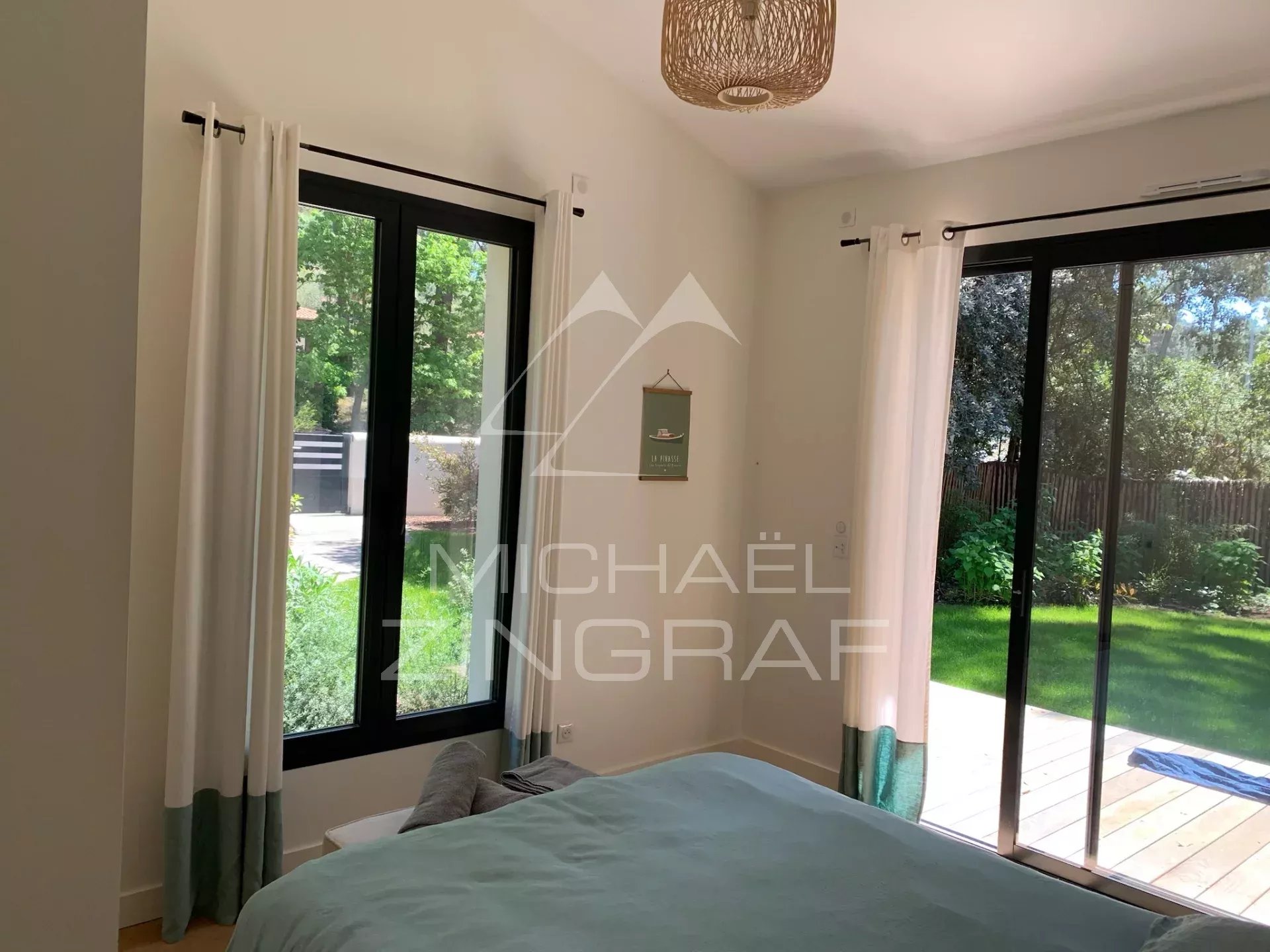 - Die Schlafzimmer im Erdgeschoss haben jeweils Zugang zur Terrasse