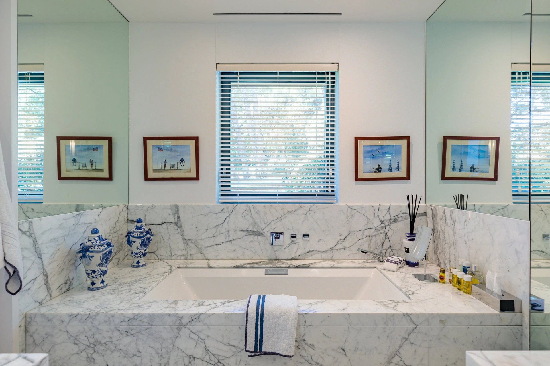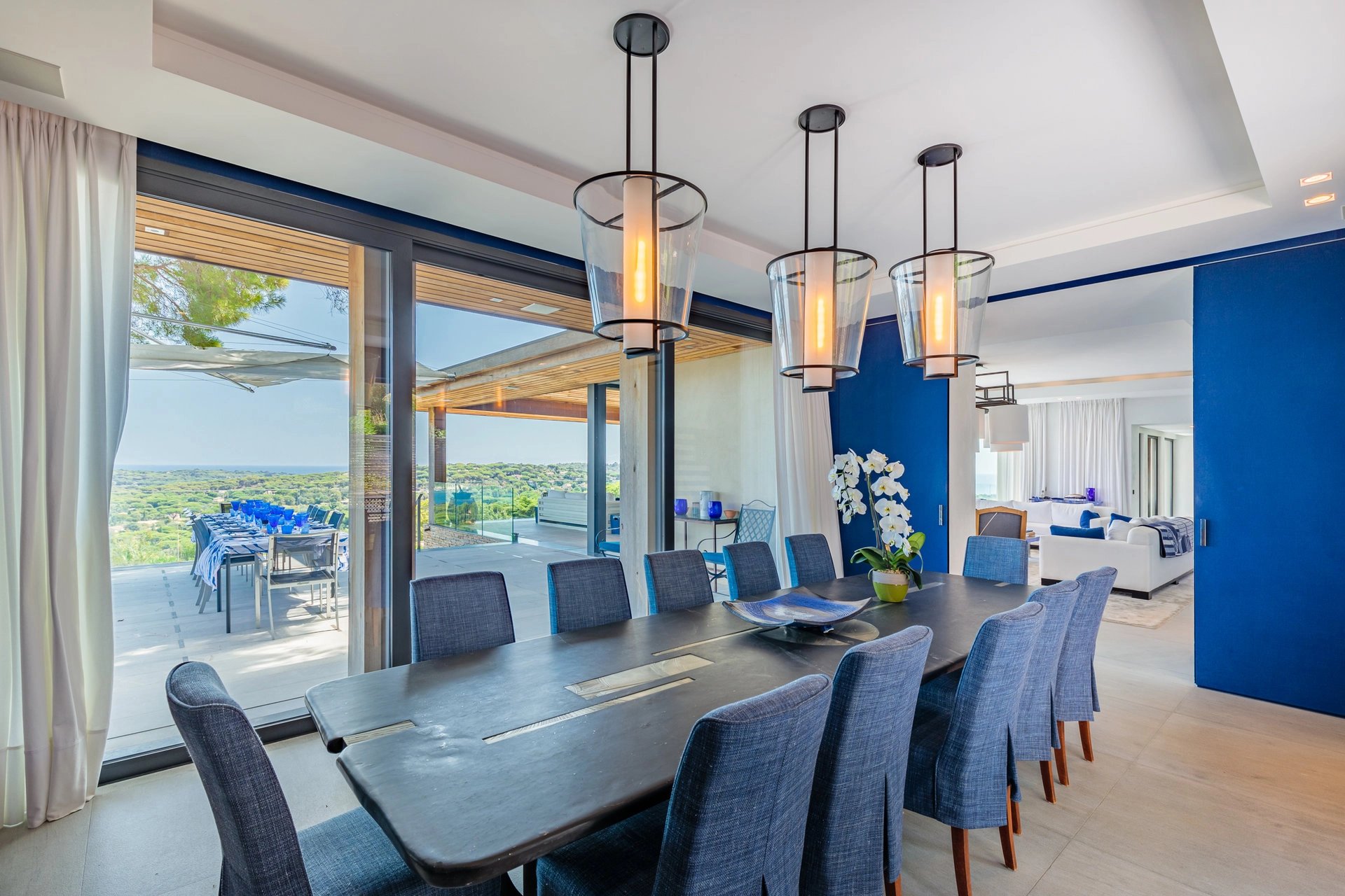 Es bietet zahlreiche Terrassen, schöne Wohnräume, ein Hauptschlafzimmer mit eigenem Bad, 7 Gästezimmer mit Bad oder Dusche, 2 Dienstzimmer, einen Fitnessraum, ein Dampfbad und verfügt über die Leistungen und den Service eines Fünf-Sterne-Hotels.