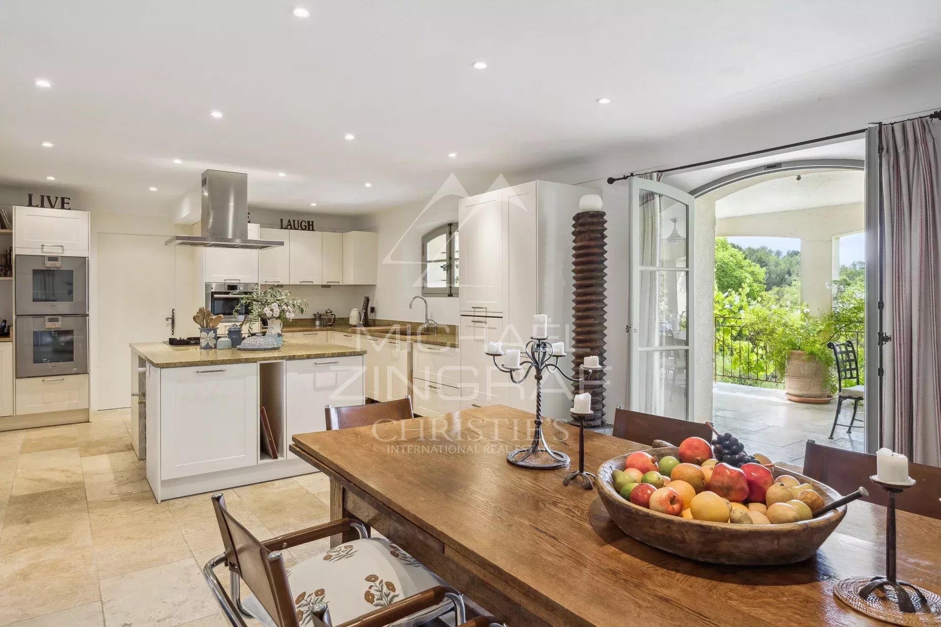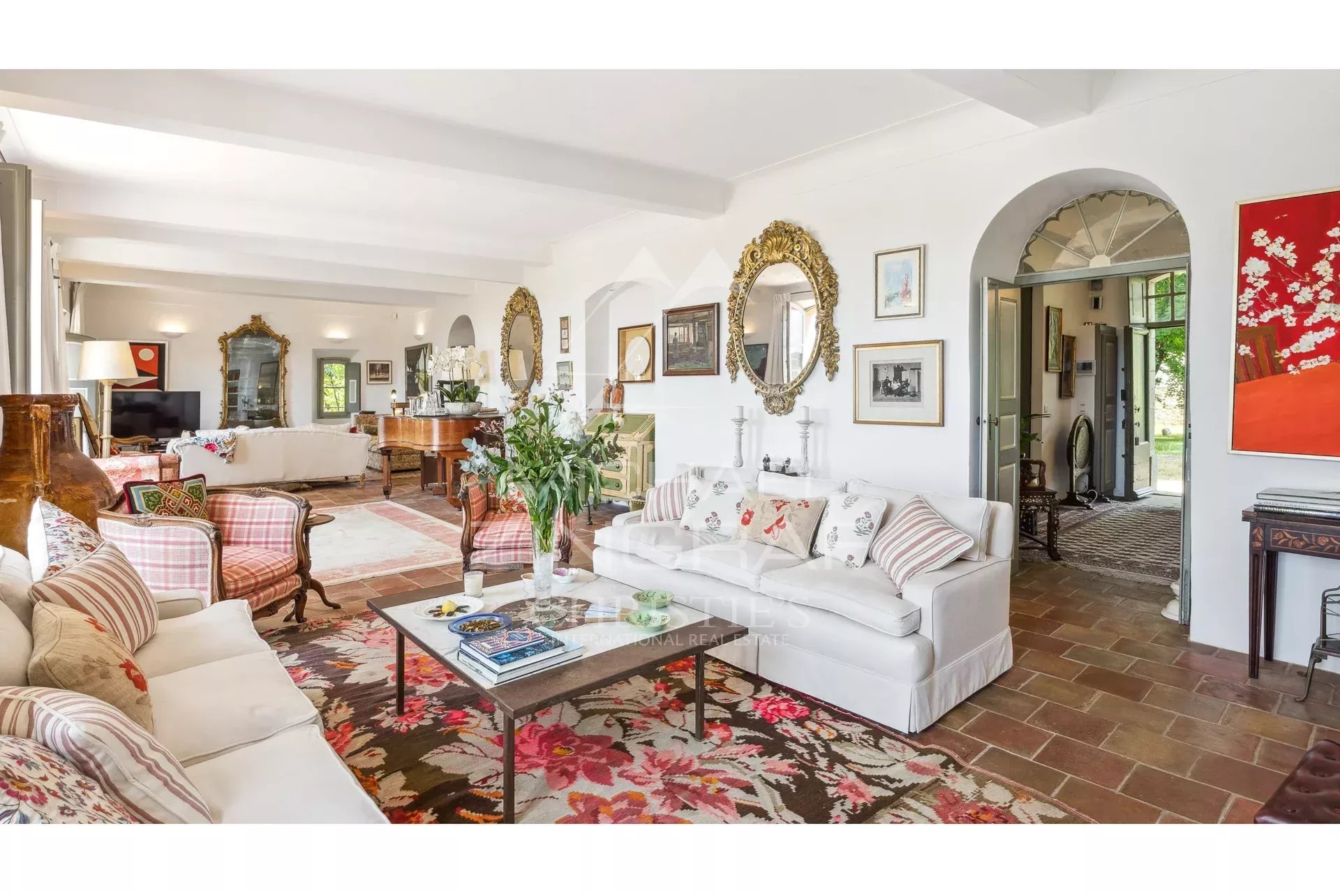 Das Haupthaus wurde unter Berücksichtigung seiner Geschichte elegant renoviert und bietet große, helle Räume, darunter ein doppeltes Wohnzimmer, das auf eine 40 m² große überdachte Terrasse führt, eine zeitgenössische Küche und ein Esszimmer, die ebenfalls auf eine große Terrasse führen, fünf klimatisierte Schlafzimmer en suite, ein Büro, eine Bibliothek, ein Spielzimmer, zwei Gäste-WCs, einen Weinkeller sowie mehrere Nebengebäude.