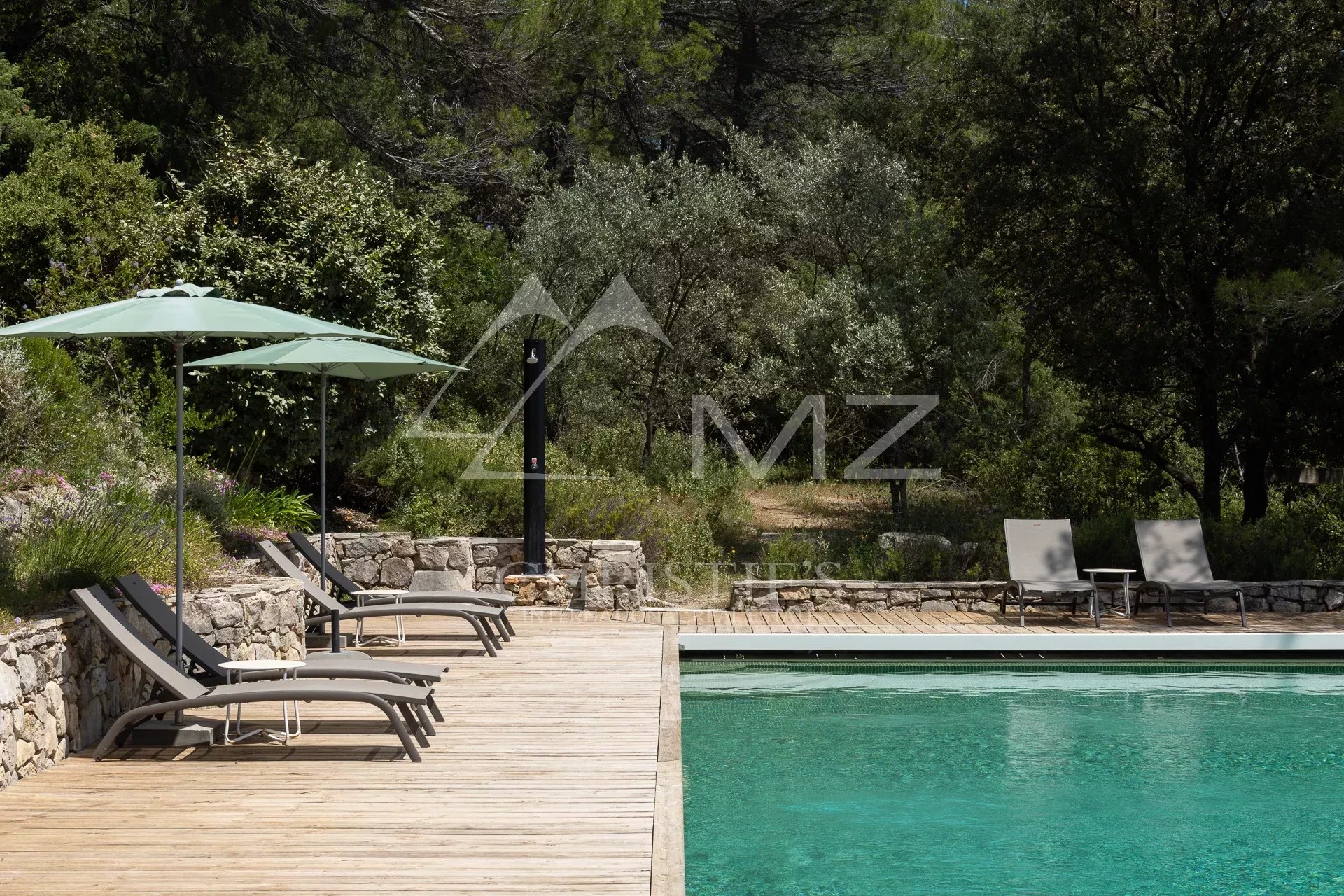 Dieses prächtige Mas aus dem 19. Jahrhundert, eingebettet inmitten eines außergewöhnlichen Anwesens von fast 11 Hektar, bietet atemberaubende Panoramablicke.