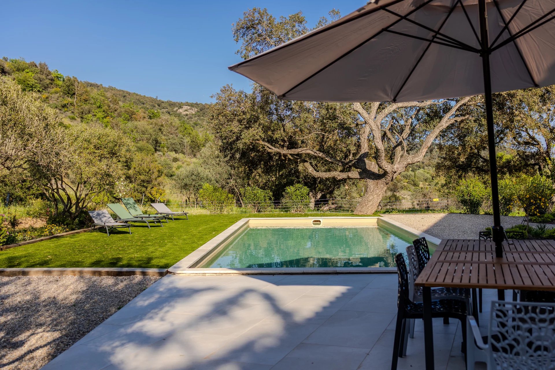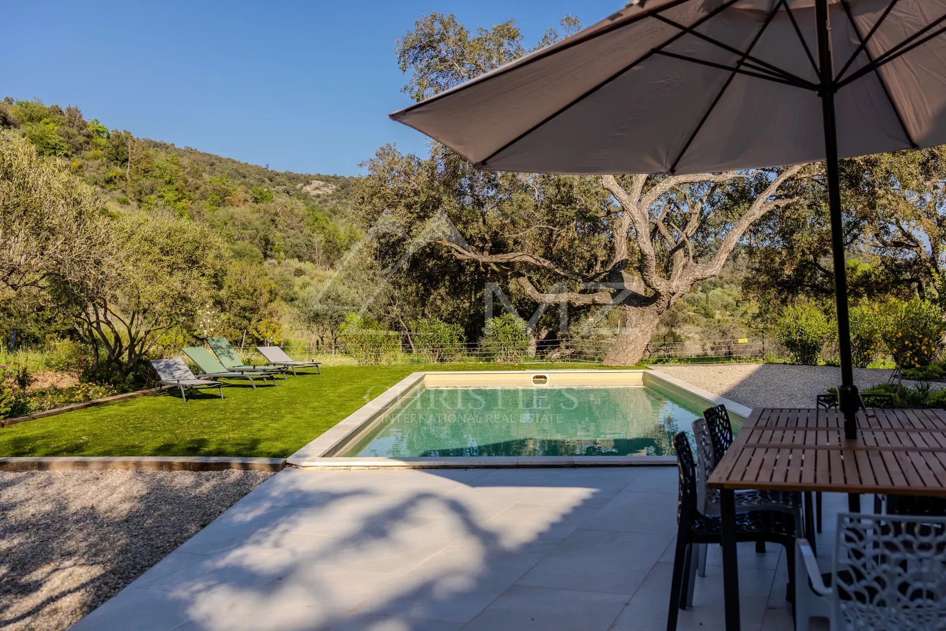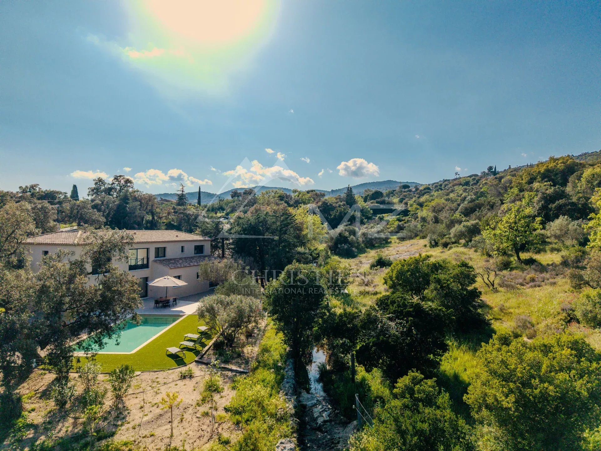 Diese wunderschöne neue Villa befindet sich im Herzen des Massif des Maures und bietet somit die Ruhe der provenzalischen Landschaft und ist dennoch weniger als 15 Minuten von den Stränden entfernt.