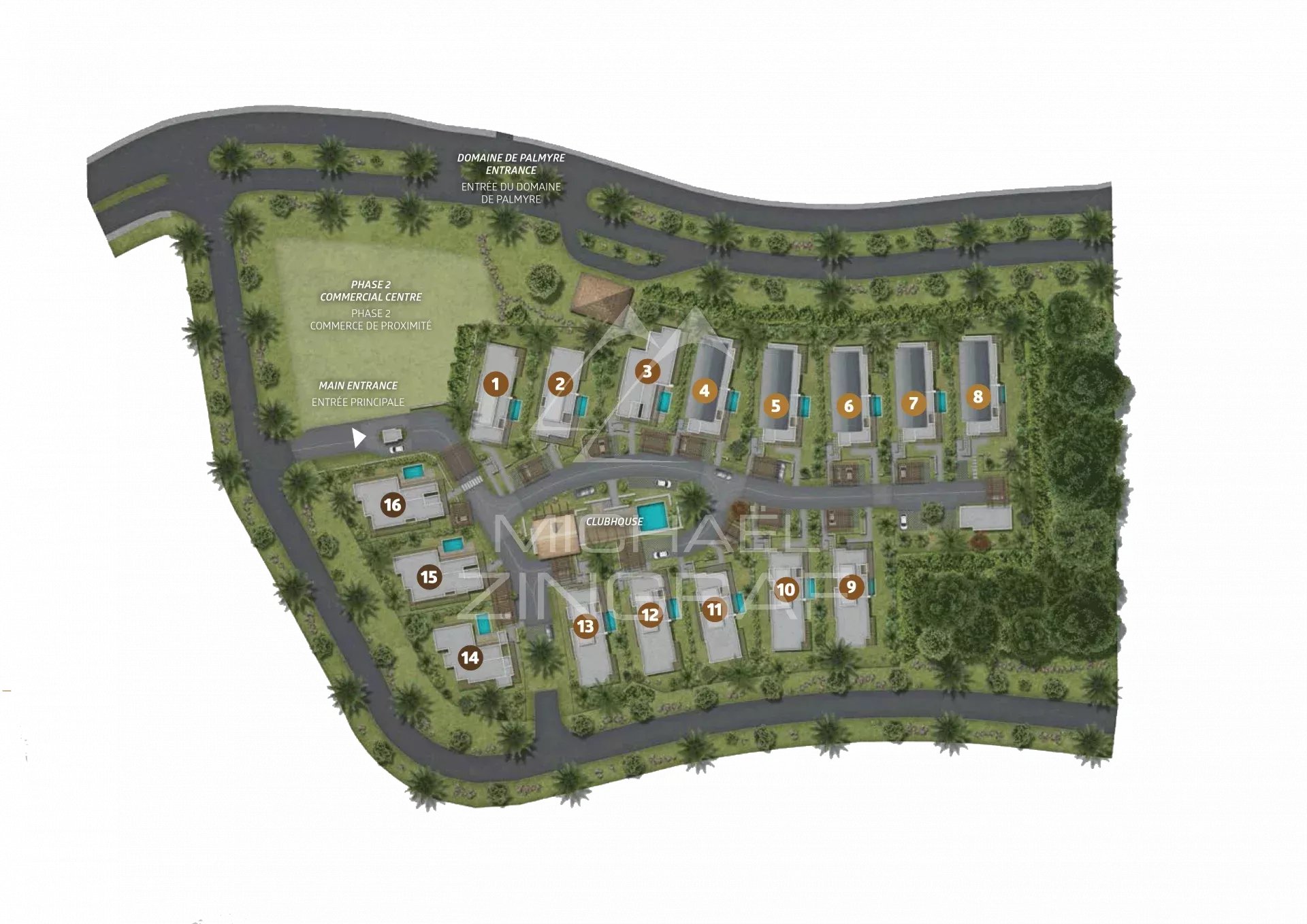 PALMARIS wurde auf einem großzügigen Grundstück von 1,66 Hektar konzipiert und bietet weitläufige Grünflächen, die Privatsphäre respektieren und die Atmosphäre eines privilegierten, gesicherten Dorfes schaffen.