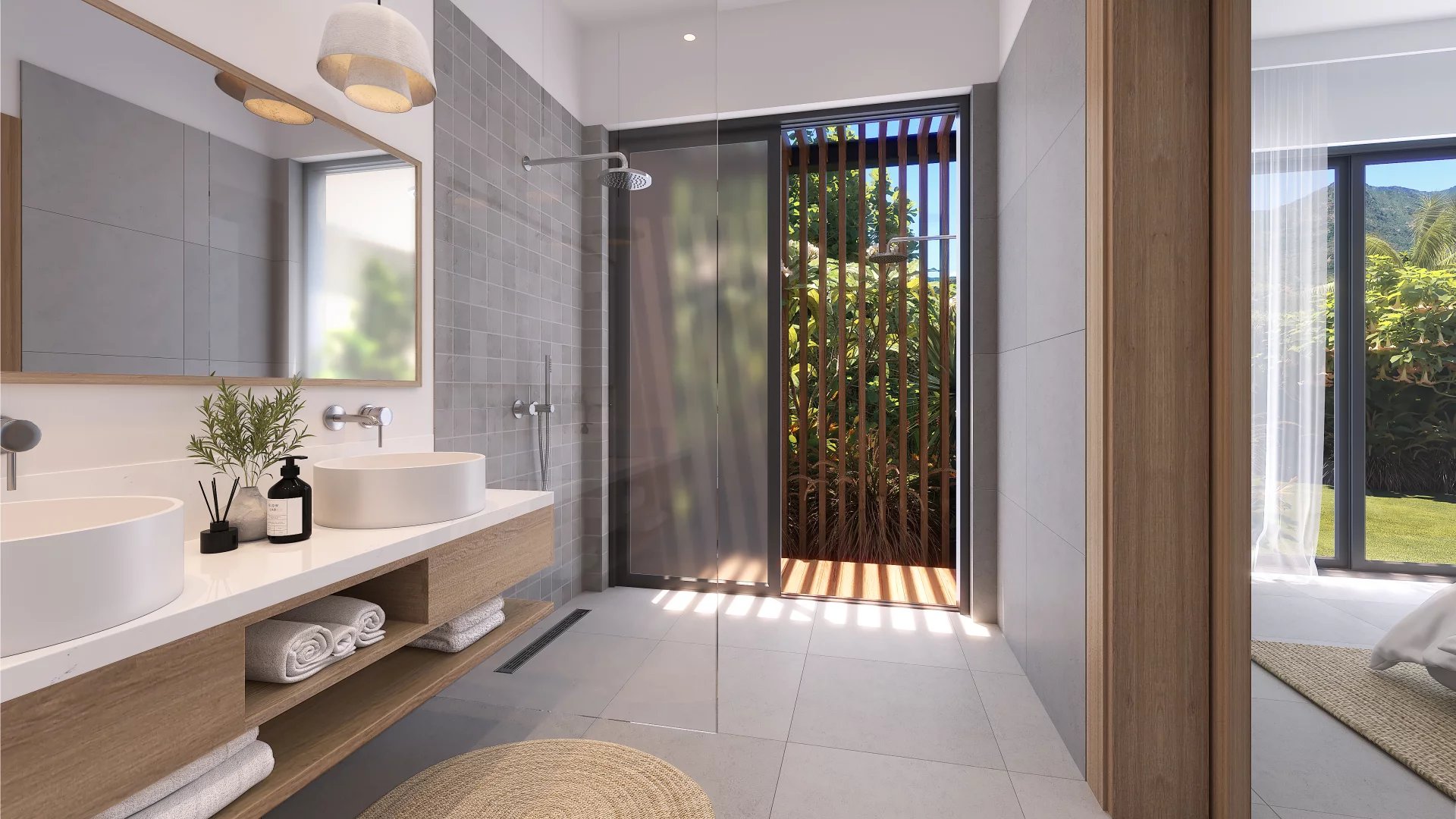 Dank des offenen Wohnbereichs und der großen Terrasse, die maximal von natürlichem Licht durchflutet werden, verkörpern die Bois Noir Villas Wärme und Komfort – der perfekte Ort für unvergessliche Ferien oder ein Leben voller Glück.