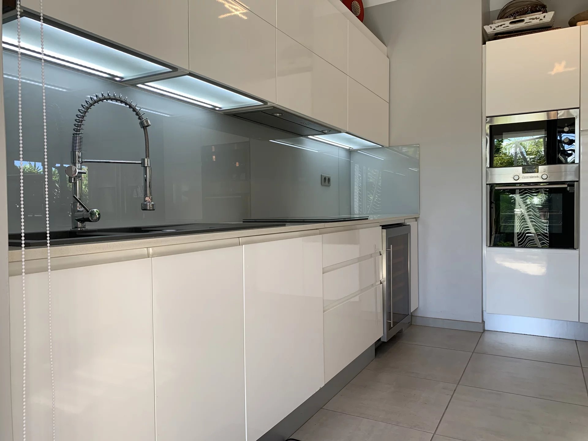 This contemporary villa offers a spacious and modern layout, with an open-plan kitchen leading to the living and dining areas, creating a fluid and welcoming space for everyday living and entertainment.