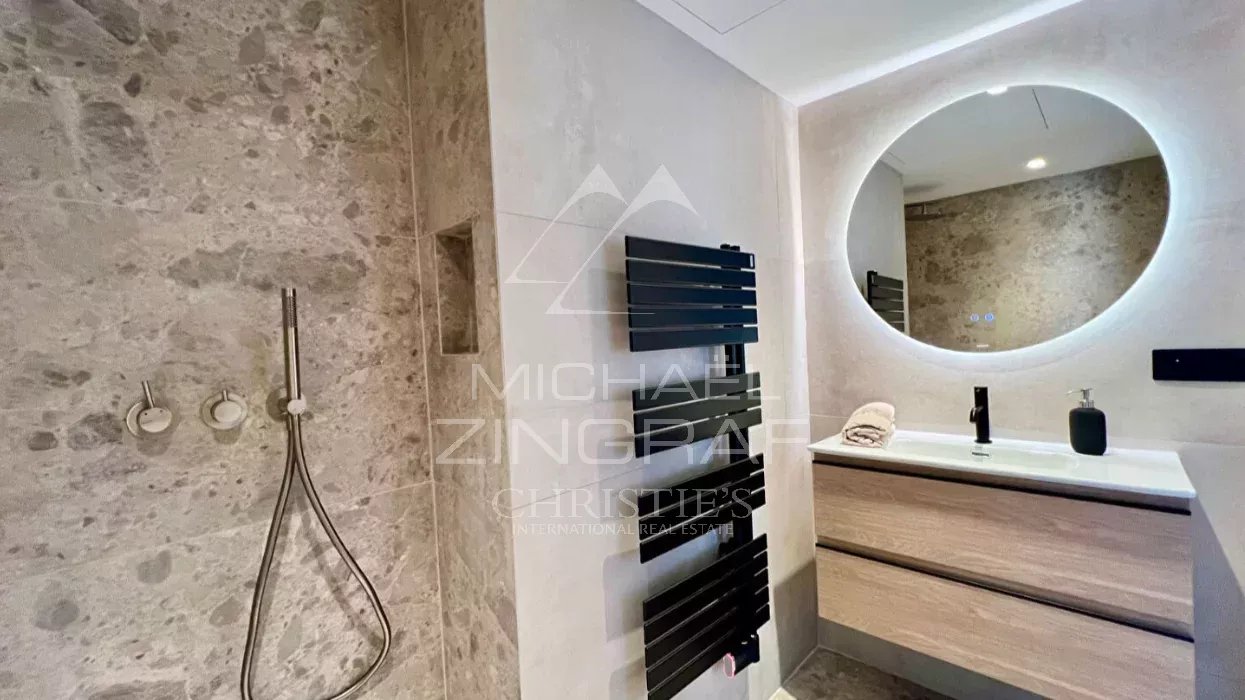 The apartment comprises a spacious 47 m² living room facing south-east, with a top-of-the-range, fully-equipped kitchen opening onto a large, unoverlooked 40 m² terrace. Two comfortable bedrooms, including a master suite, plenty of built-in storage space, a shower room with walk-in shower and toilet, and a second independent shower room.