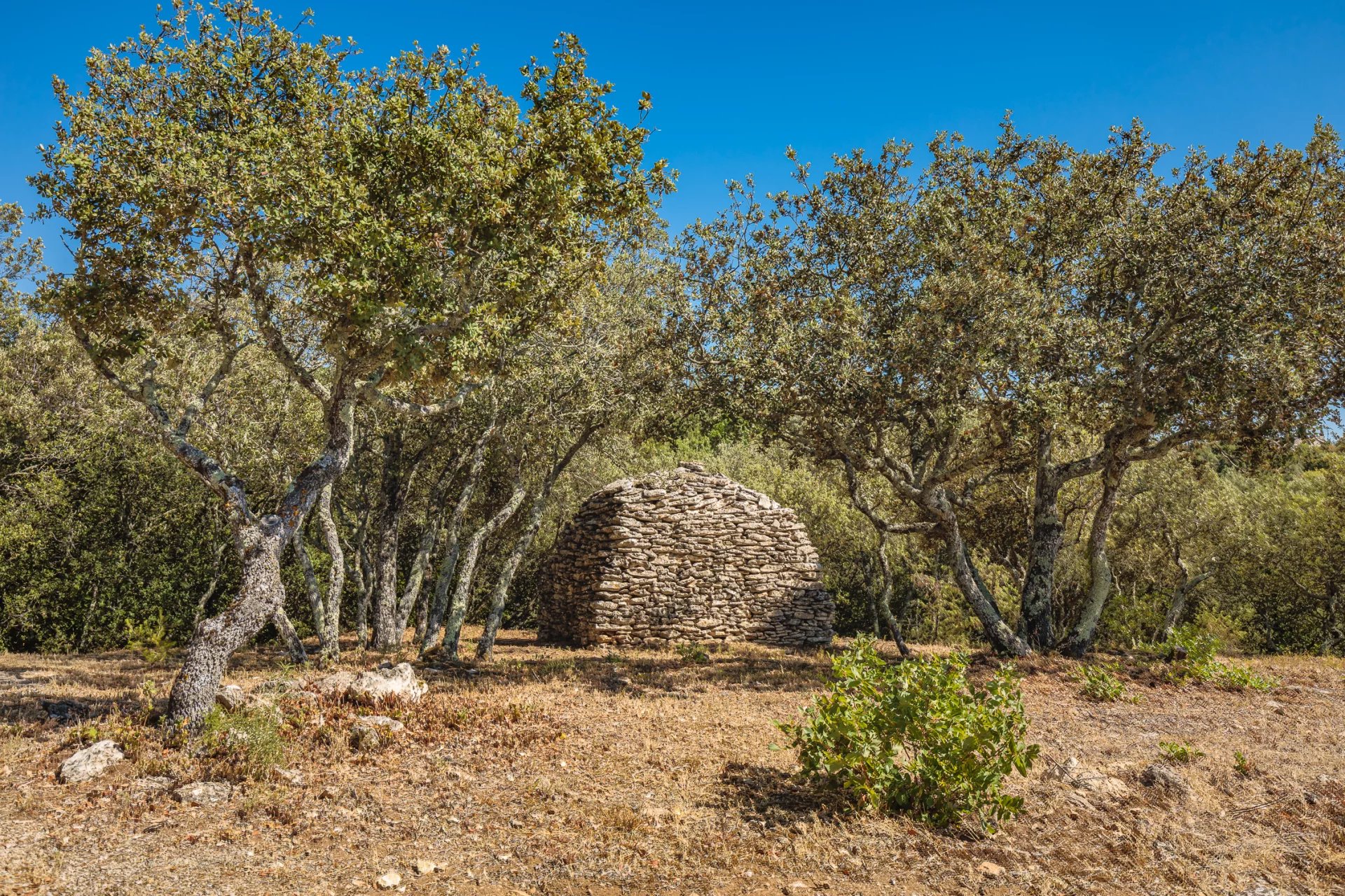 A few kilometres from the village of Gordes, in a quiet area without nuisance, very beautiful restored house in the heart of a wooded area of oaks and olive trees.