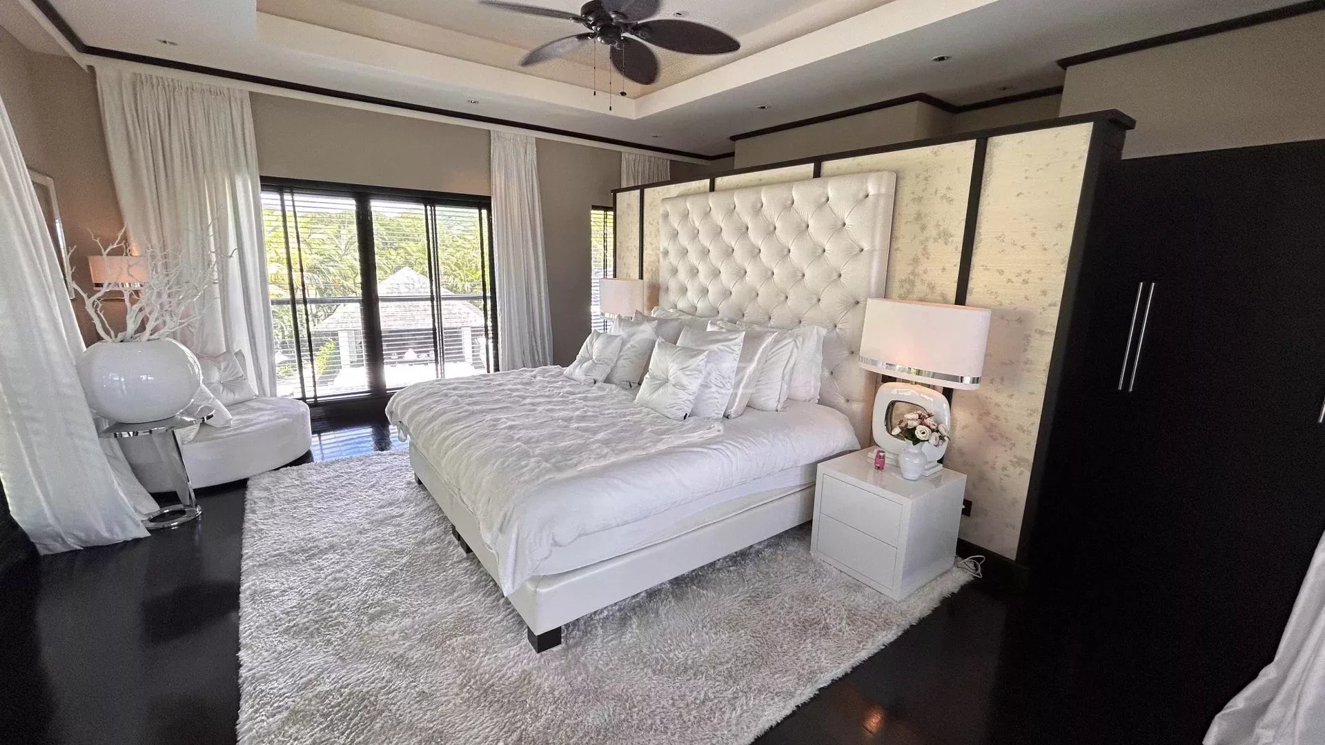 Situated along the signature hole 4, this spacious villa offers breathtaking views of the golf and of the lagoon from the furnished kiosk and the terrace surrounding the long swimming pool. The interior decoration is inspired from world-famous cinema stars, boasting a “glamour-chic” style unique to this villa at Anahita.