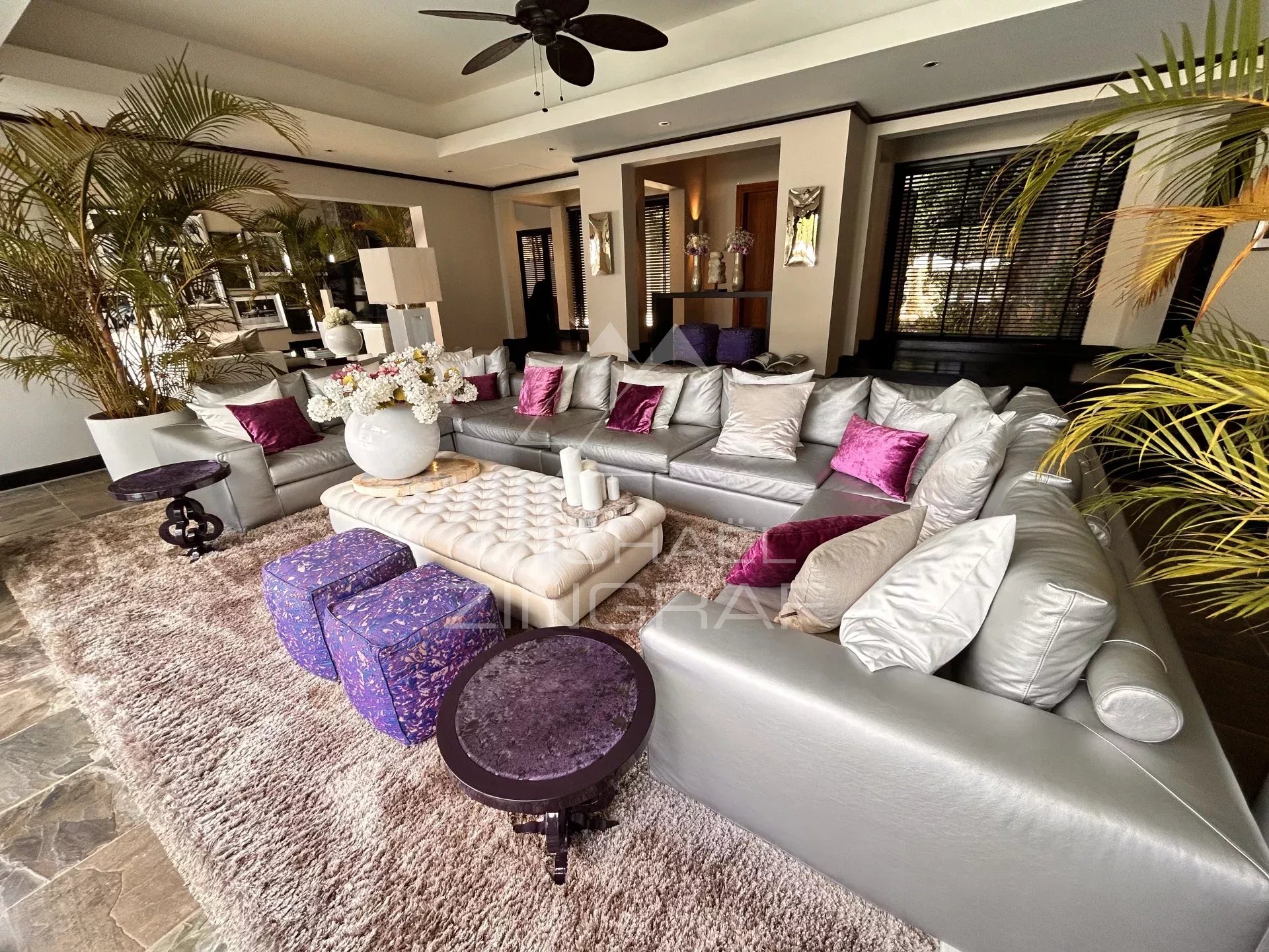 Featuring 5 en-suite bedrooms with dressing, several lounge areas and a boudoir, this villa is ideal to host family and friends. The living room and adjoining kitchen both open onto the swimming pool and benefit