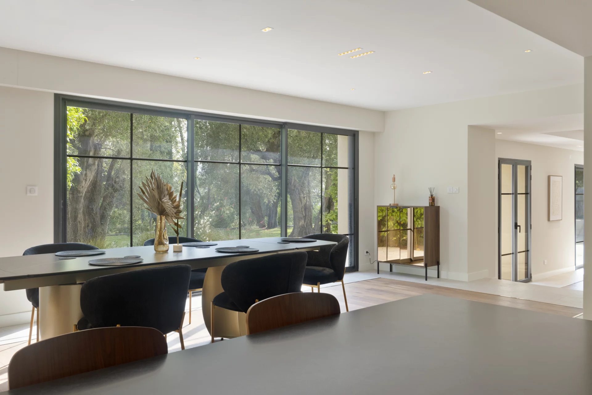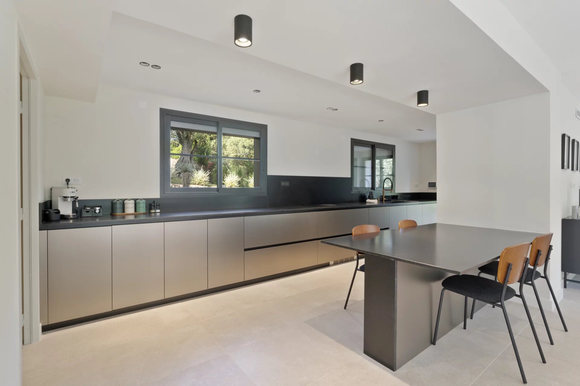 On the ground floor, an independent studio to be finished to your taste, a welcoming entrance, a modern kitchen, a convivial dining room, a practical pantry, a living room with a bar area for entertaining guests, a room that could become a cinema lounge, a laundry room, and a toilet.